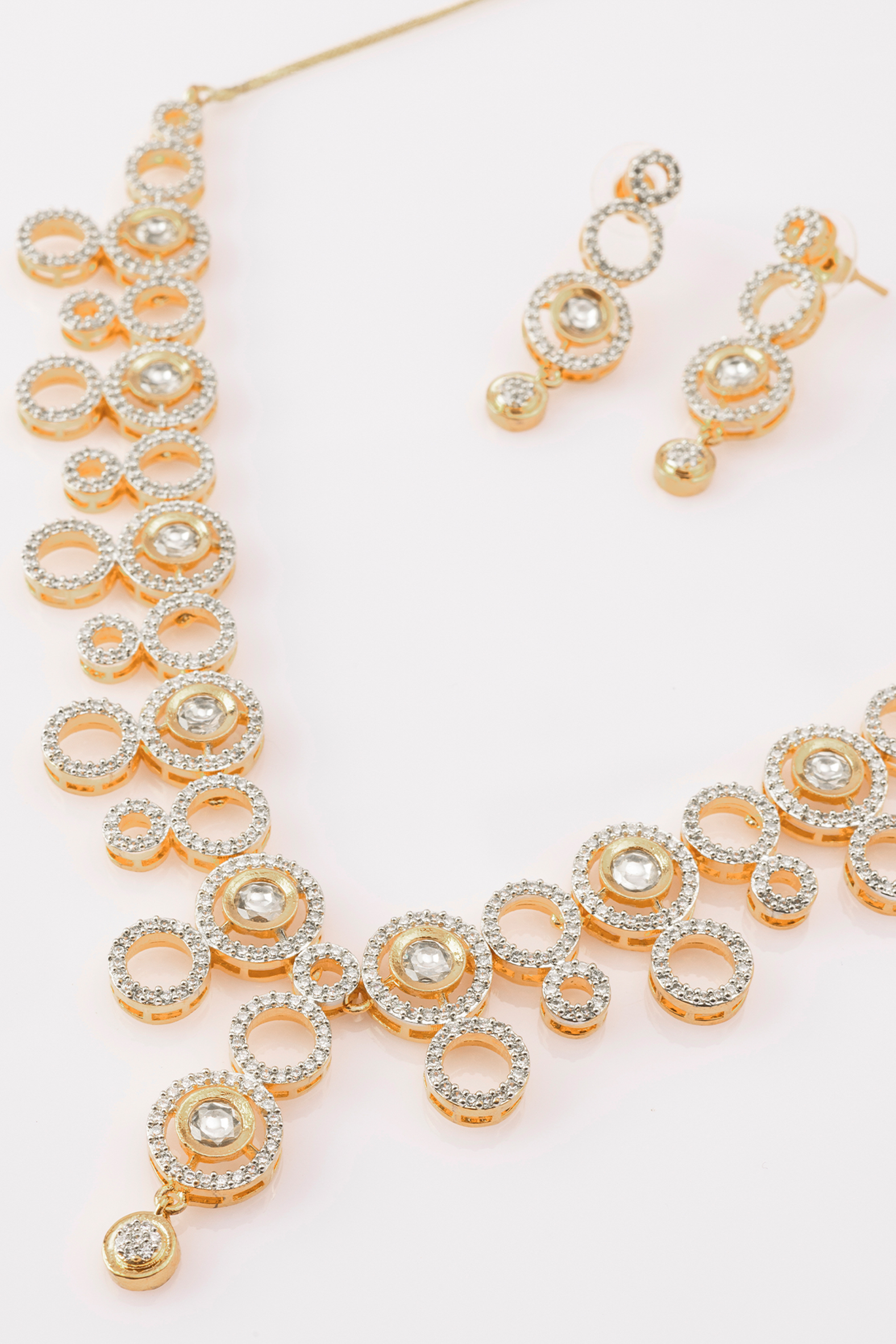 Fancy Gold Toned Kundan American Diamond Necklace Set