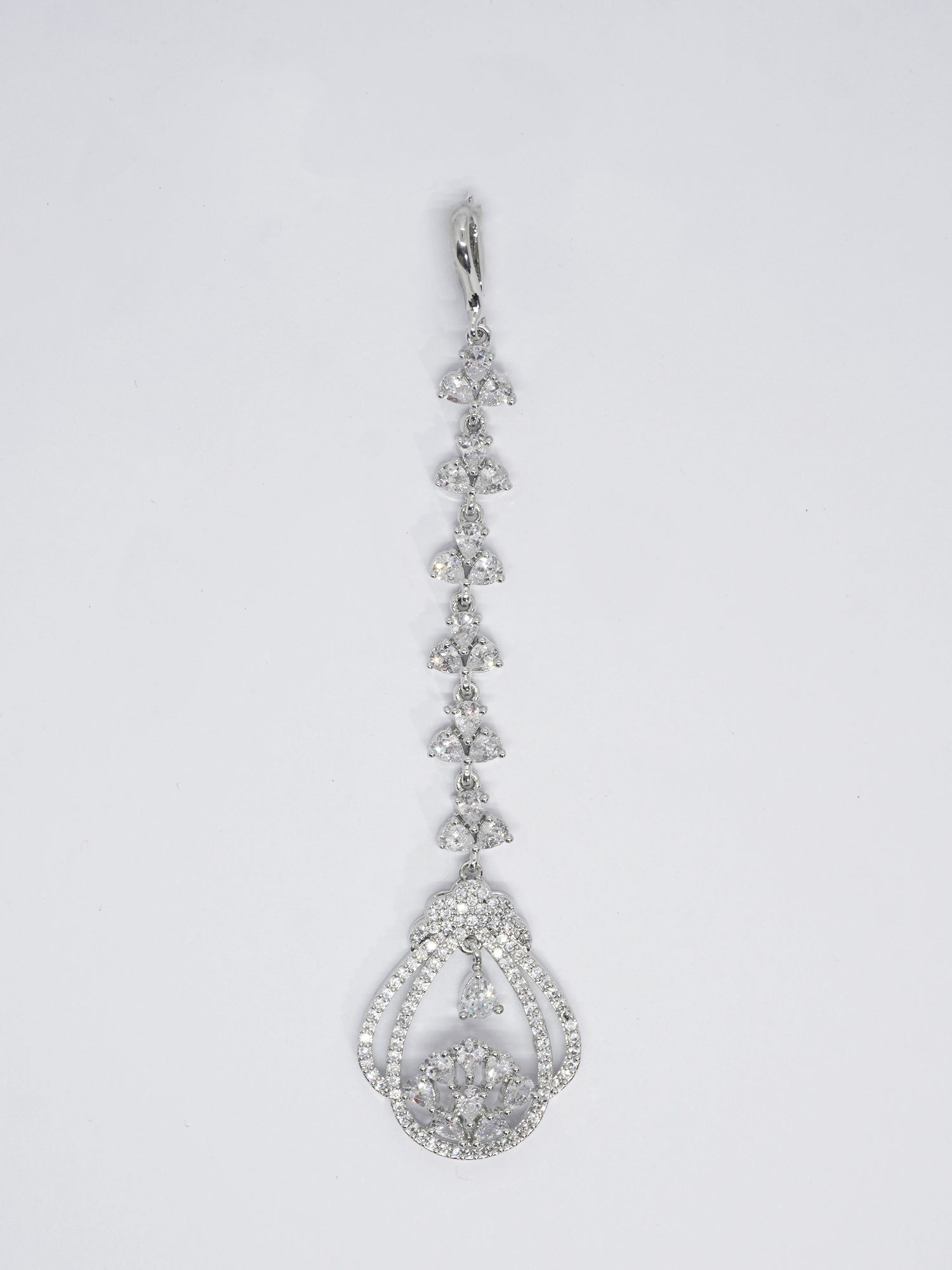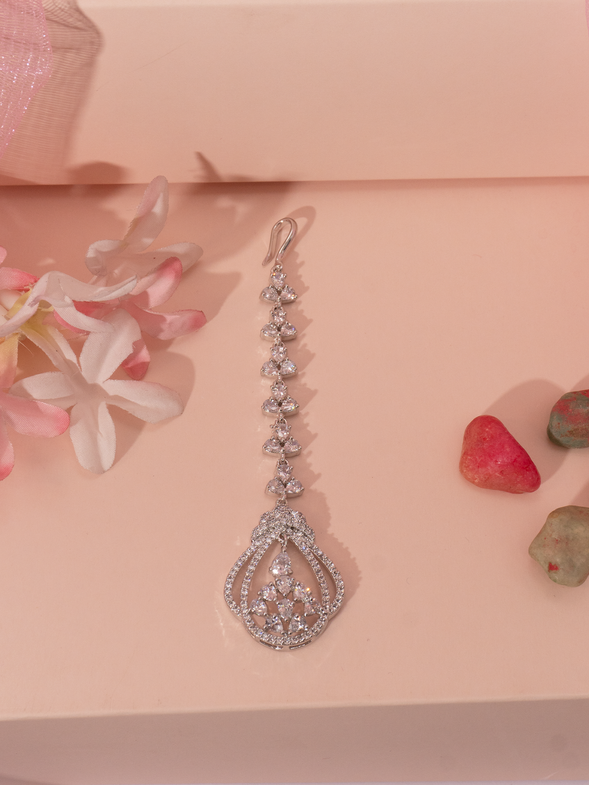 "Introducing Niscka's Floral Radiance Mangtikka with American Diamonds and Zircon, an elegant and captivating accessory that enhances your traditional look with a touch of modern glamour. This stunning mangtikka features intricate flower design detailing, adorned with sparkling American diamonds and radiant zircon stones. The floral motif is delicately crafted to add a graceful and sophisticated touch to your attire, making it perfect for special occasions and celebrations. Each stone is meticulously set to ensure a dazzling shine, while the overall design provides a timeless elegance."