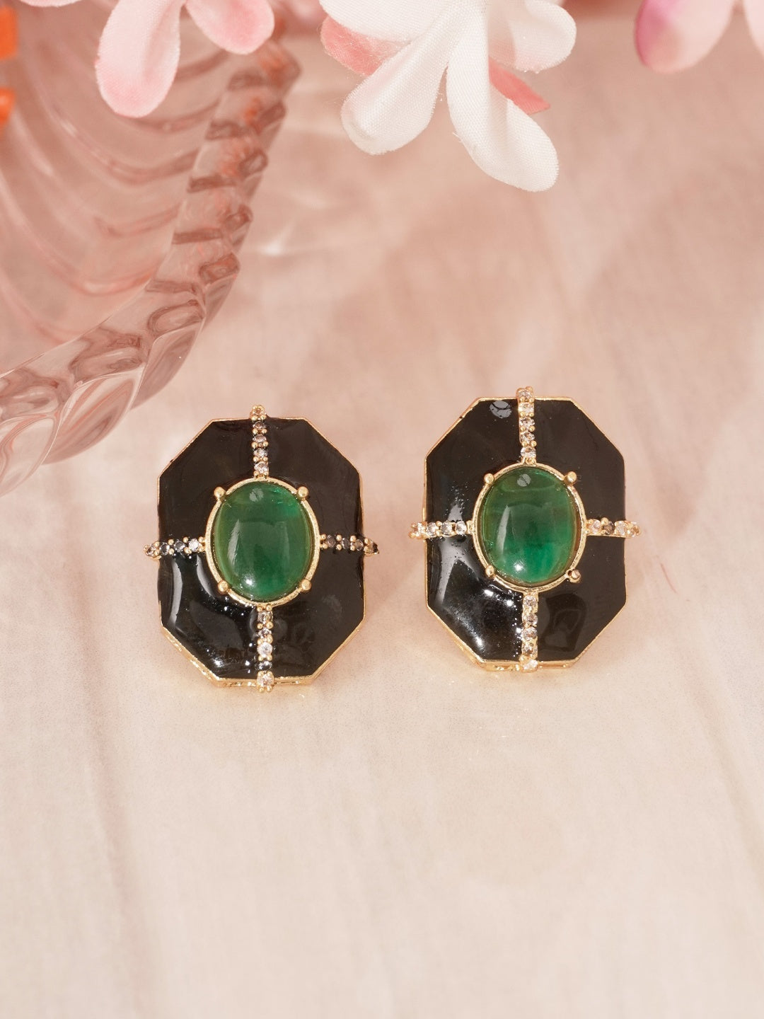 Add a touch of sophistication to your look with these stunning gold-plated fashion earrings. Featuring a striking combination of black and green emerald stones, these stud earrings are perfect for making a bold yet refined statement.