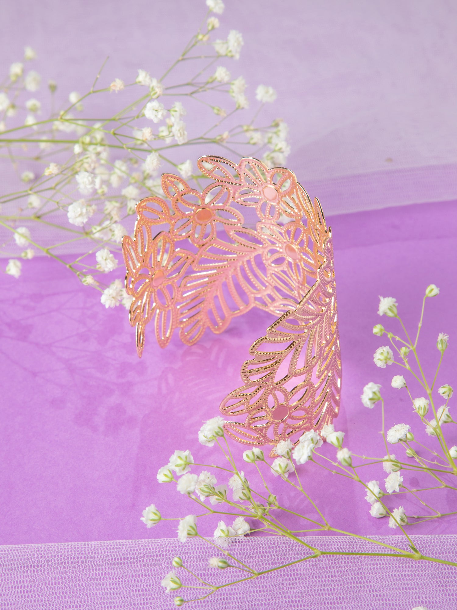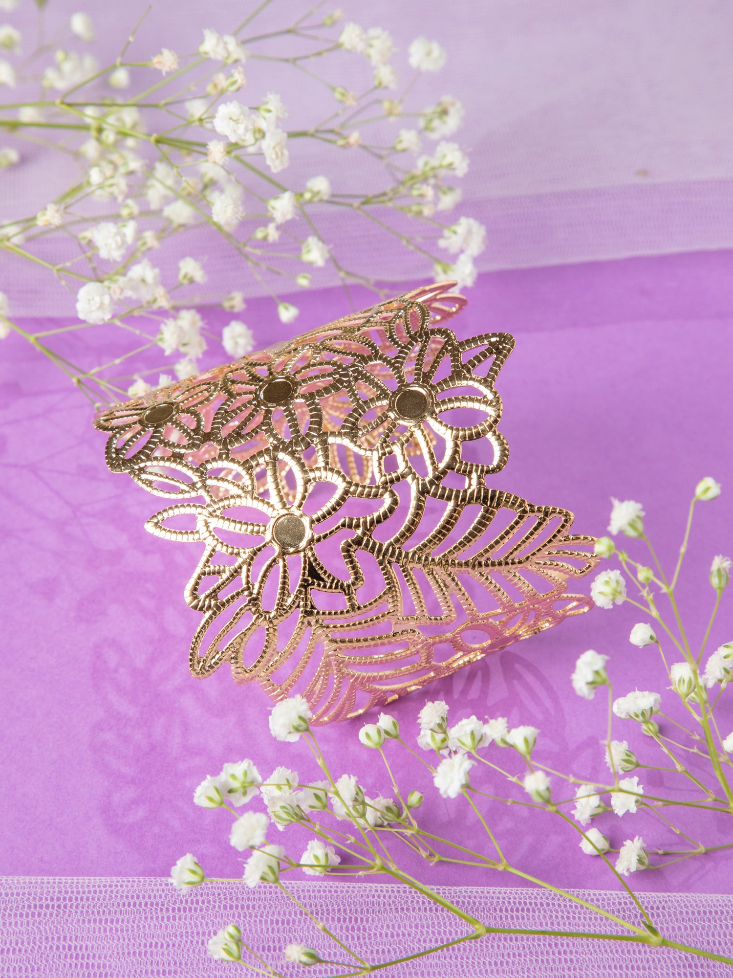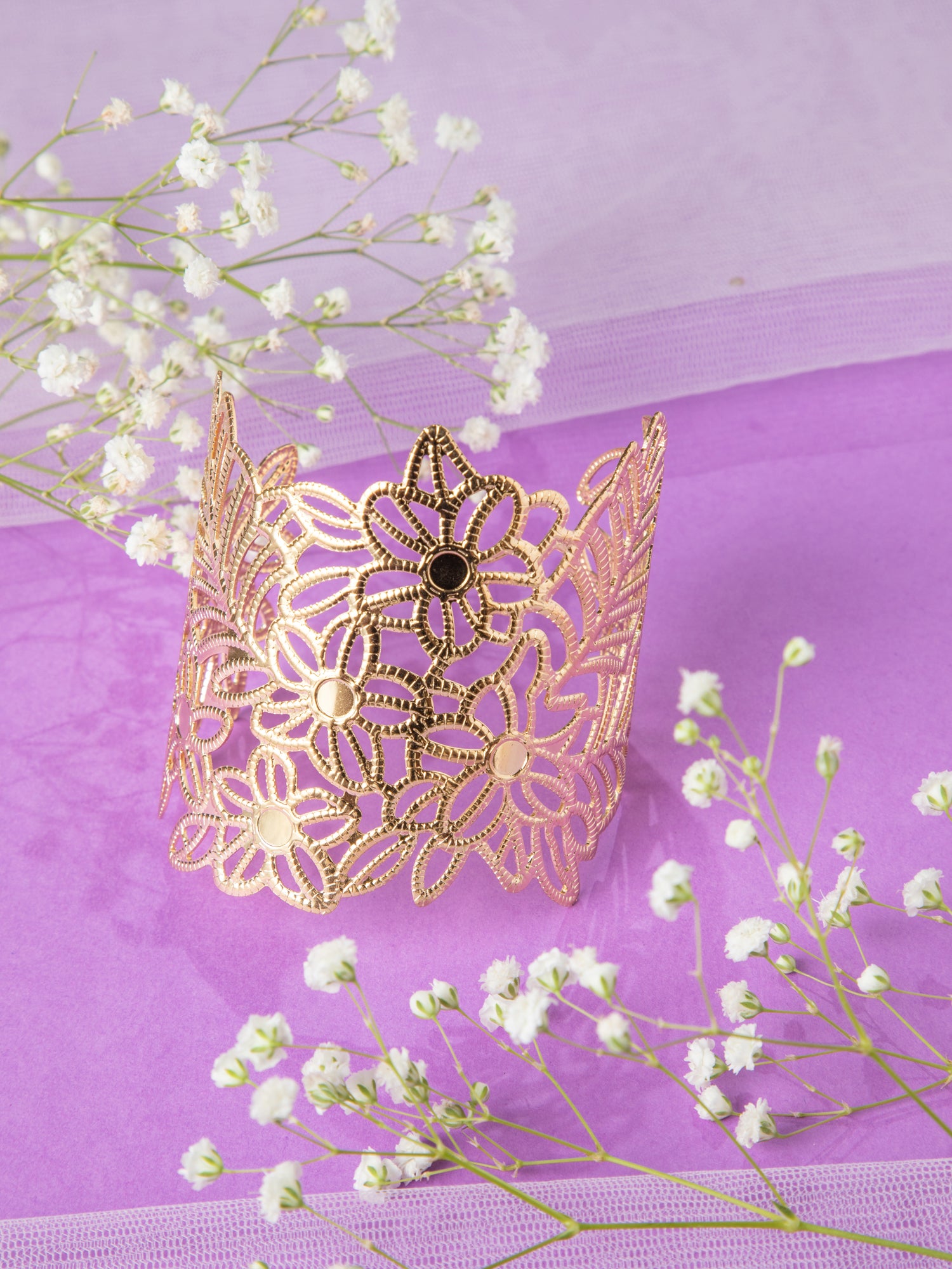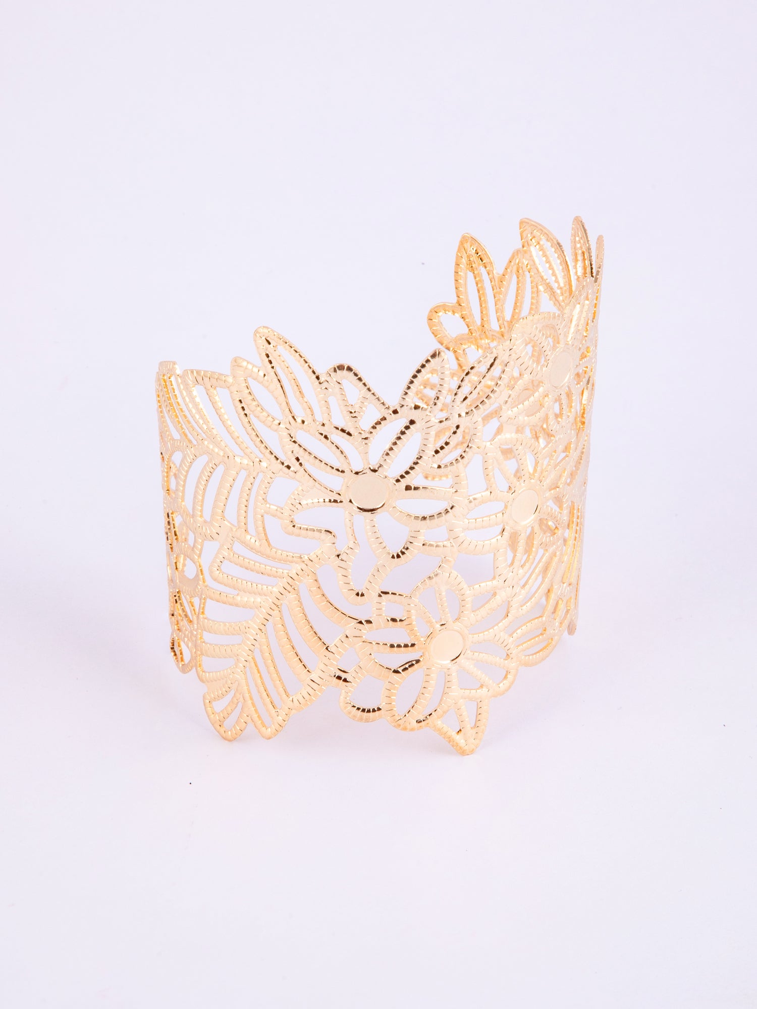 Gold Plated Floral Wide Kada Bracelet