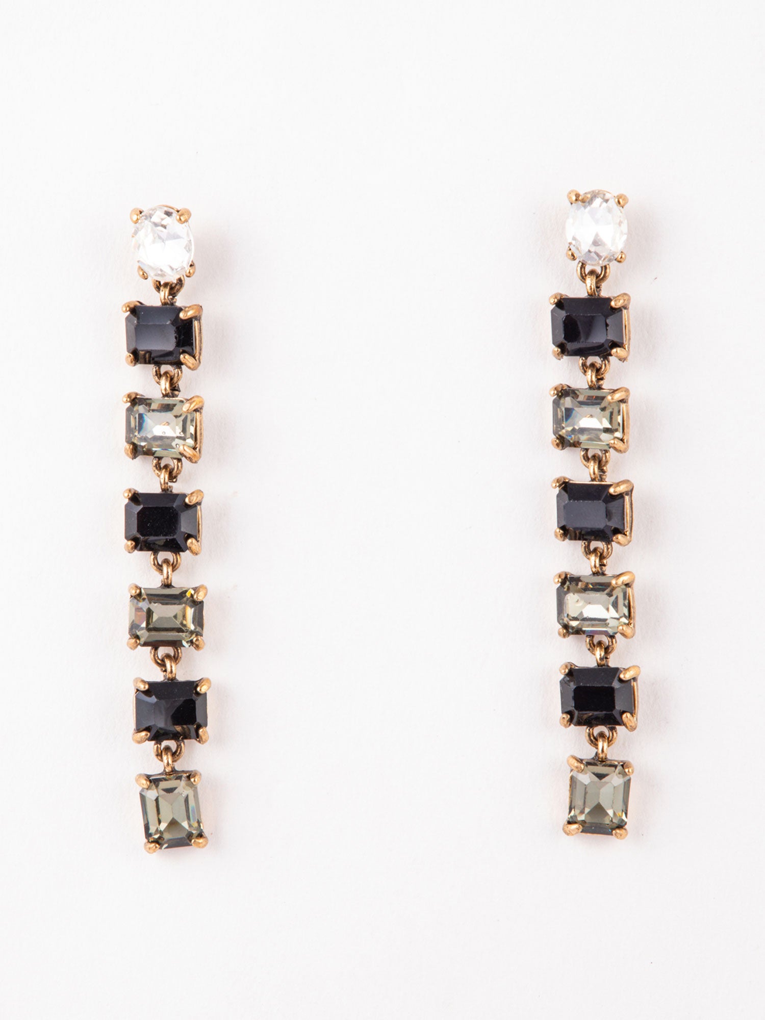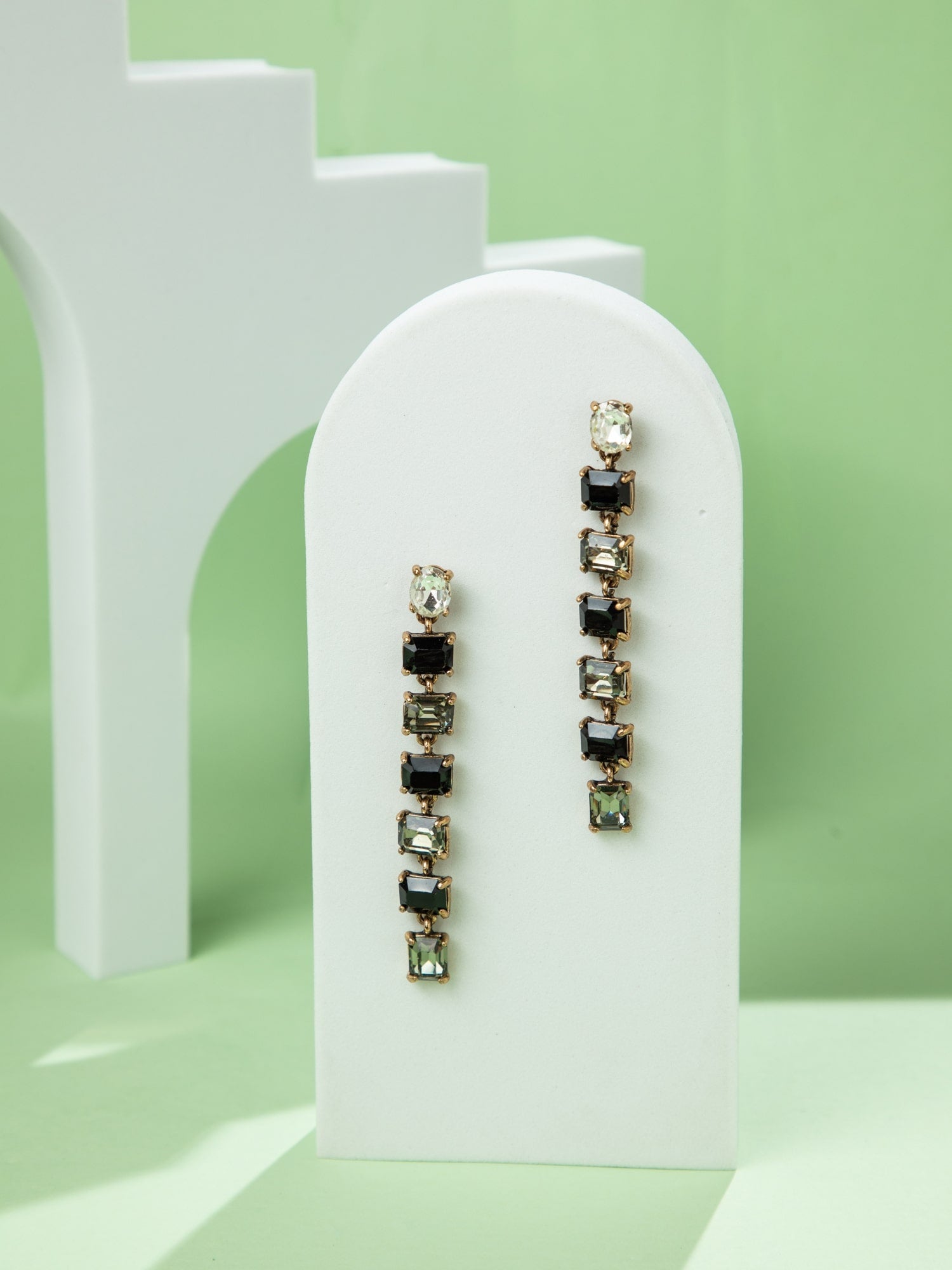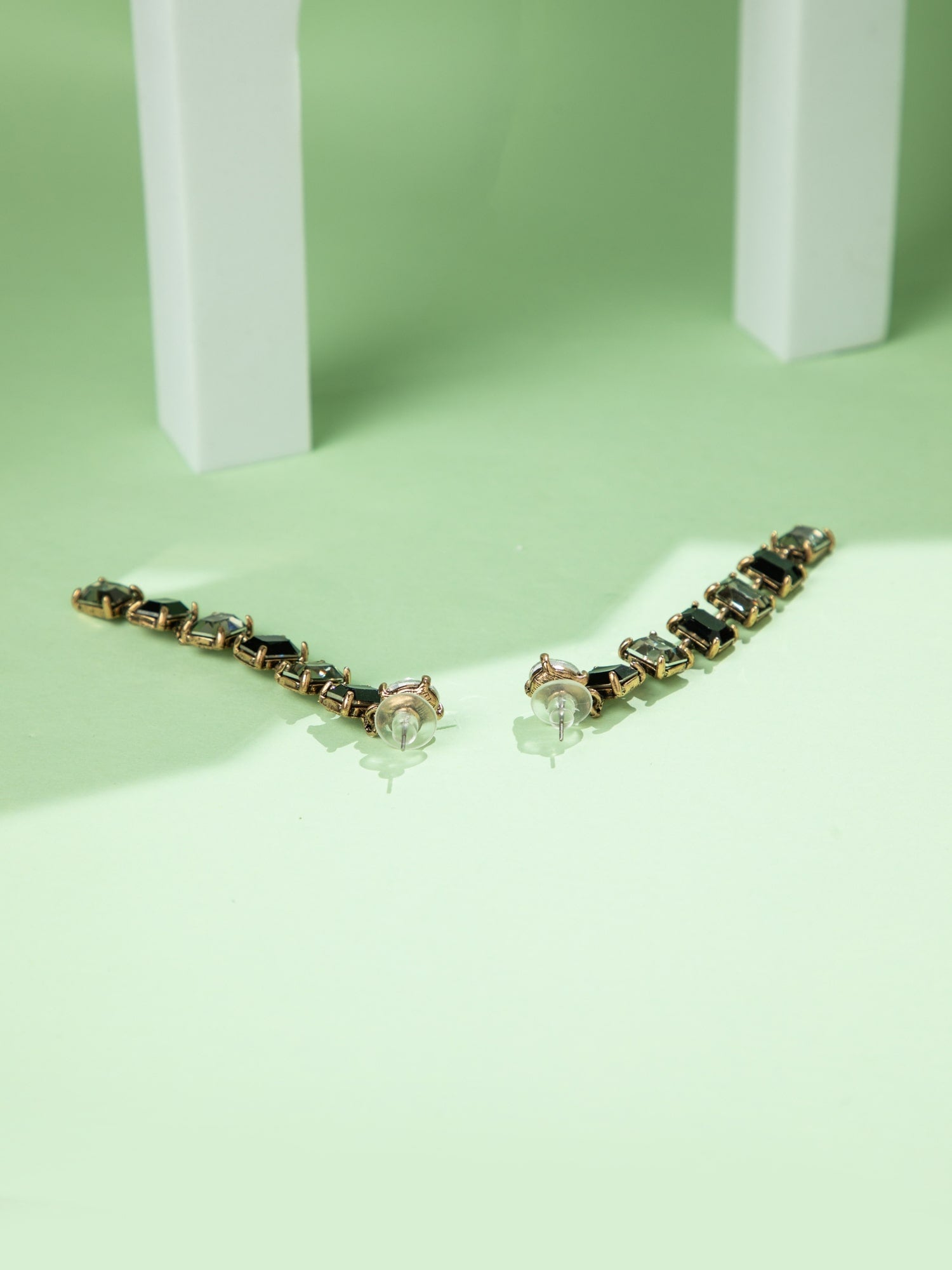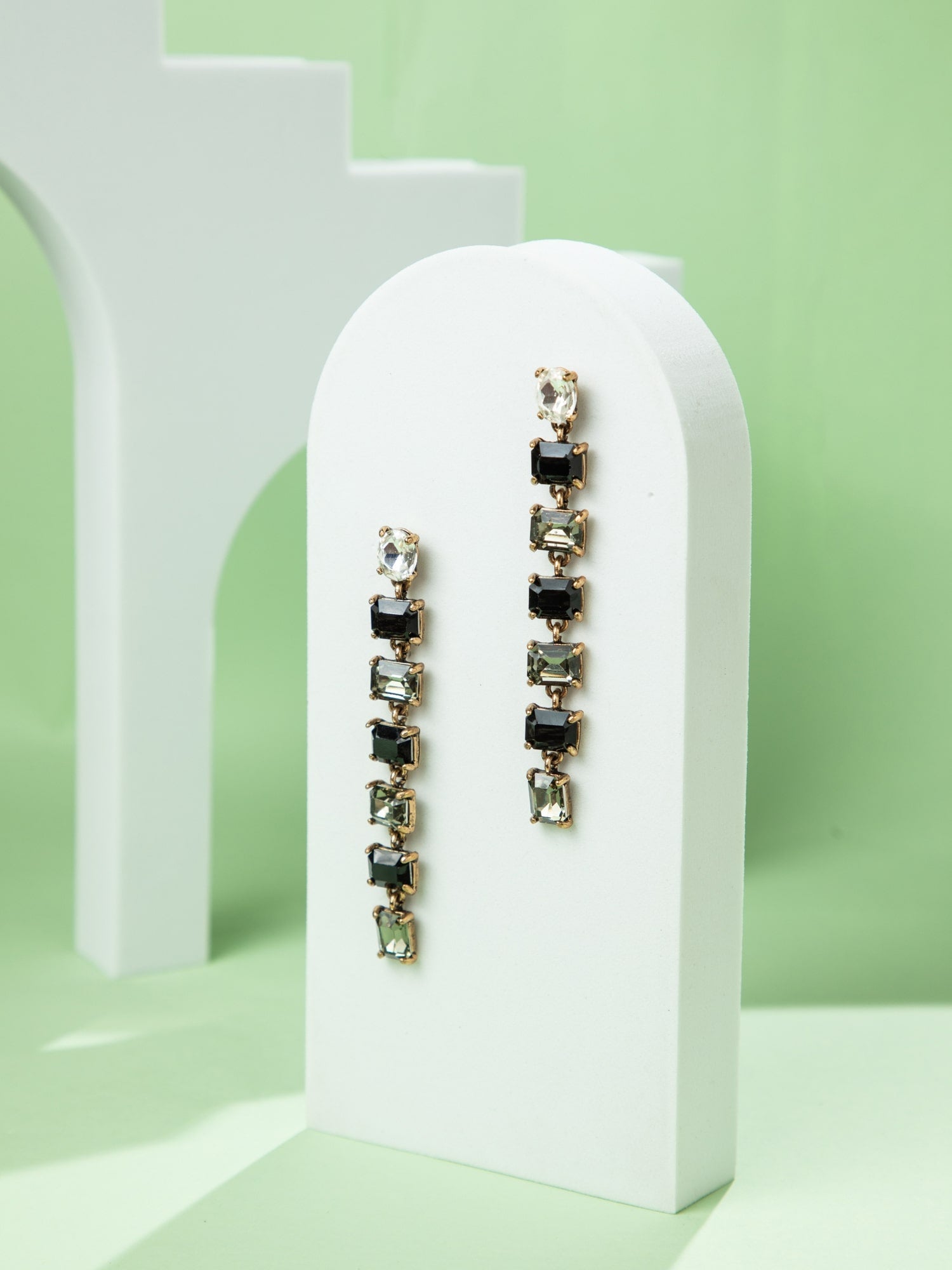 Gold Plated Long Dangler Earrings with White and Black Stones