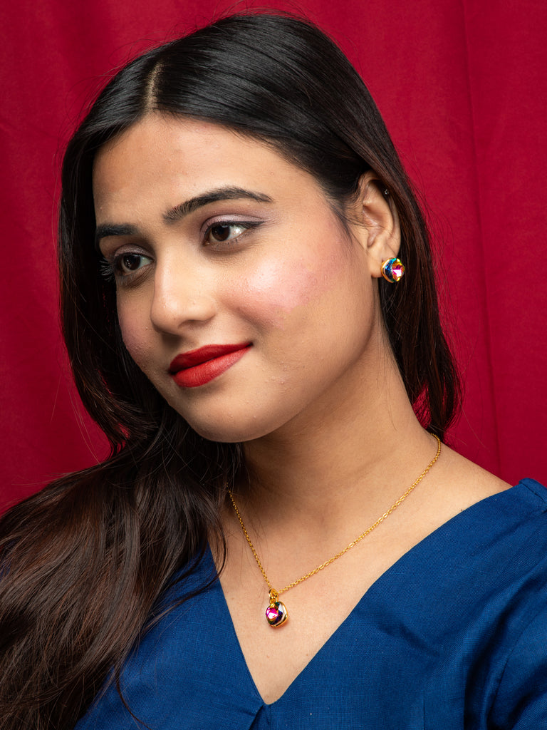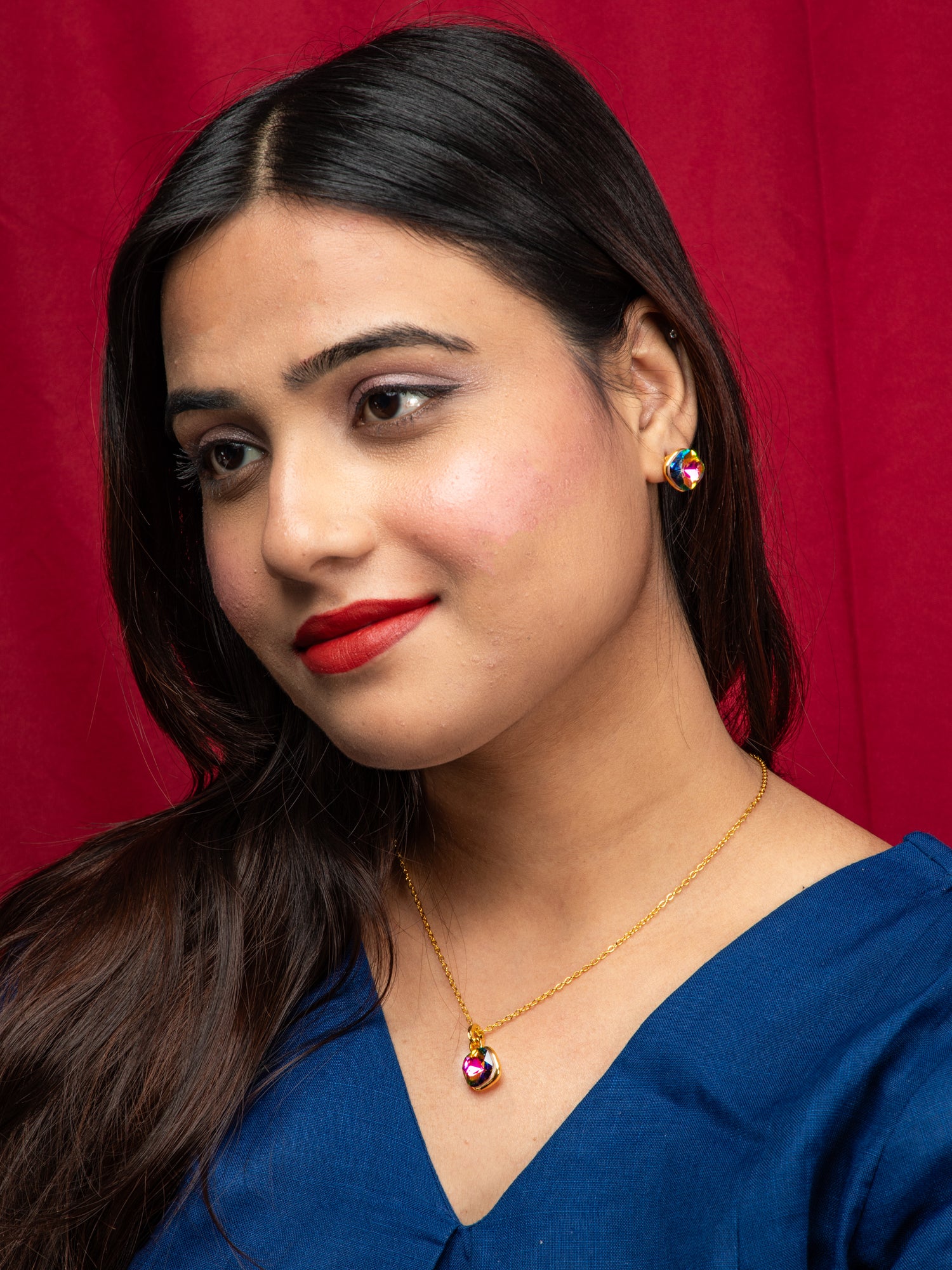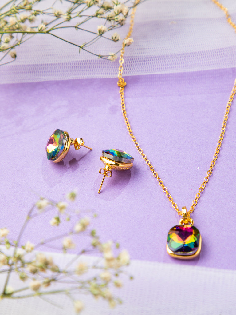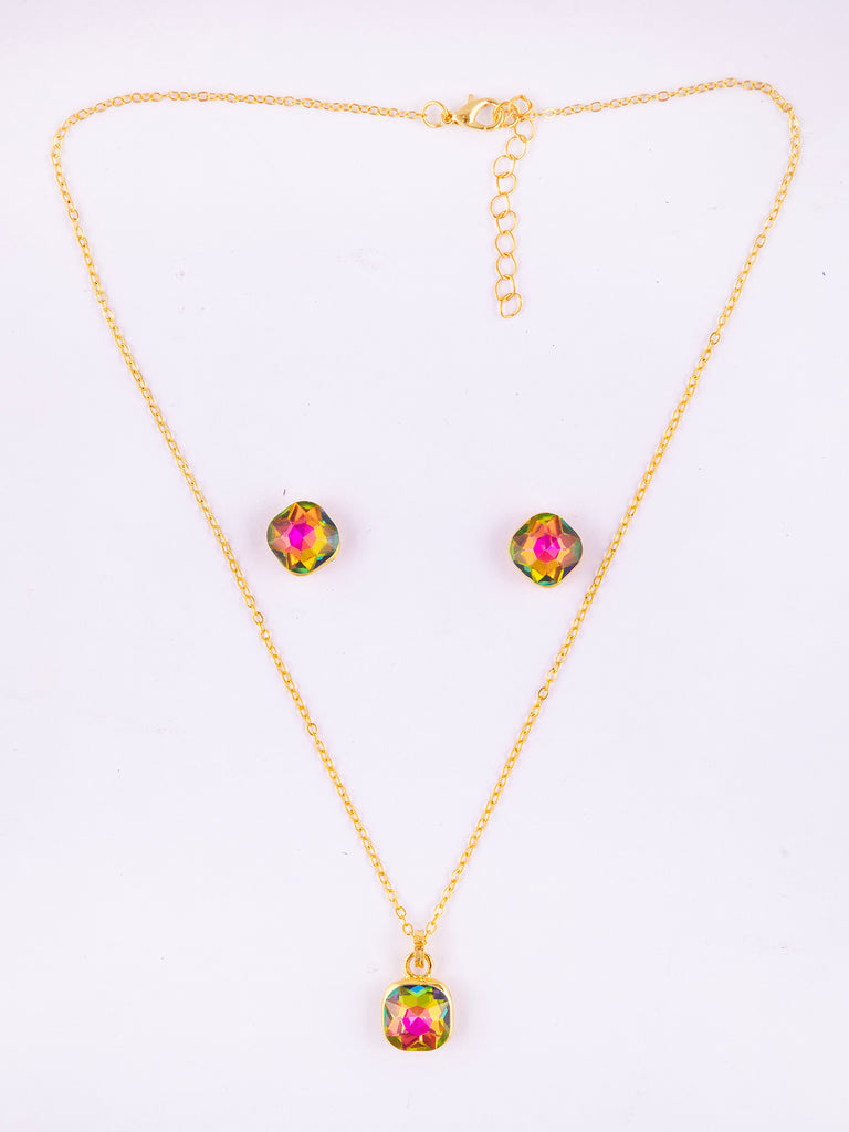Gold Plated Multicolor Radiating Stone Necklace and Earrings set