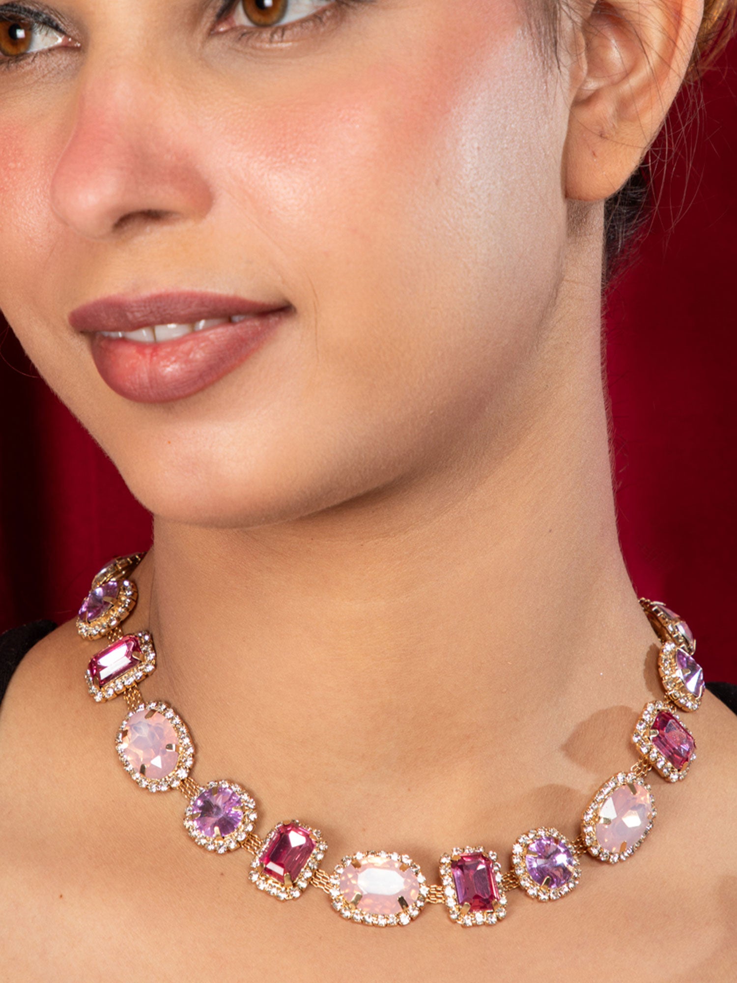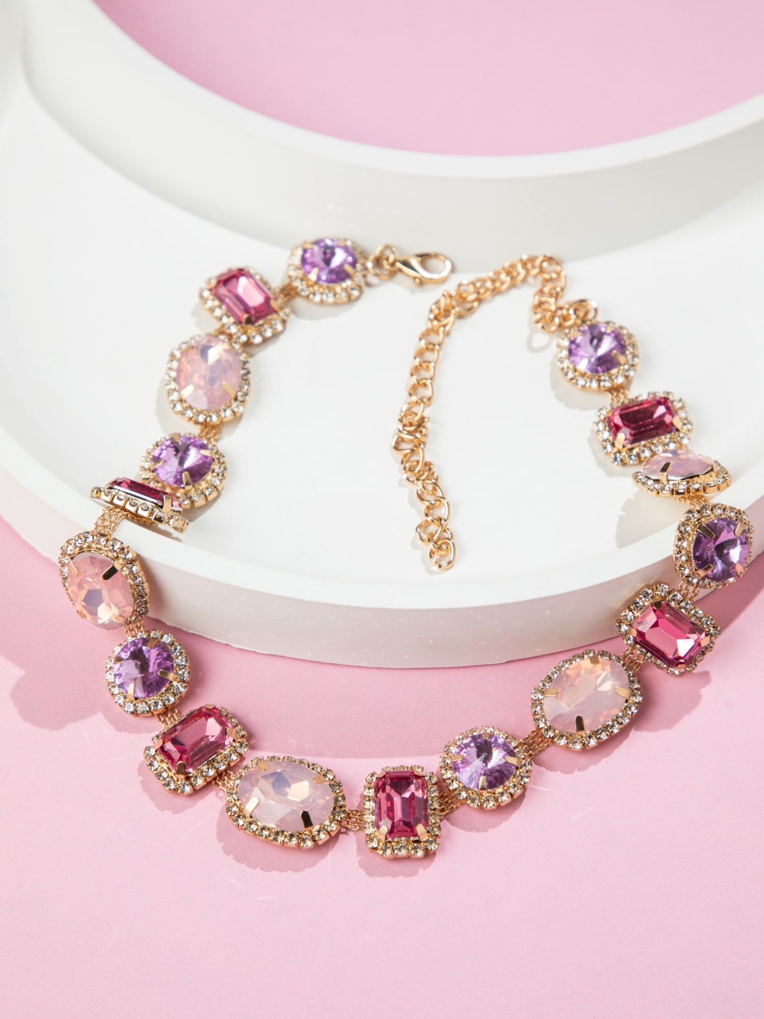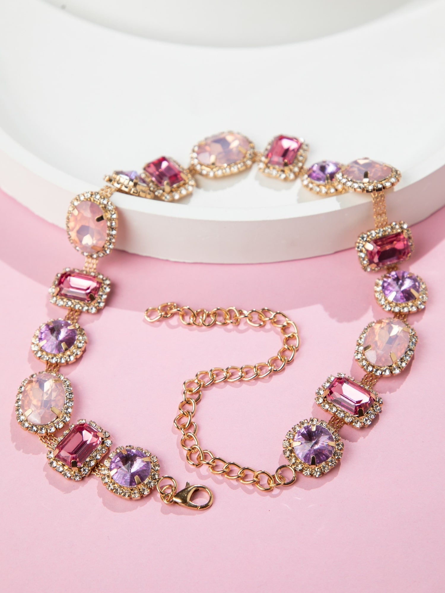 Gold Plated Pink Stone and white CZ Necklace