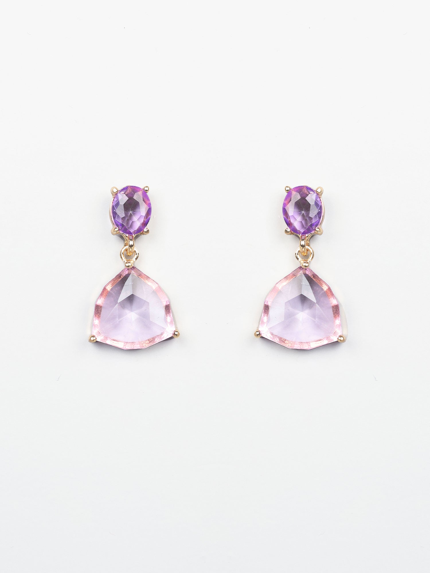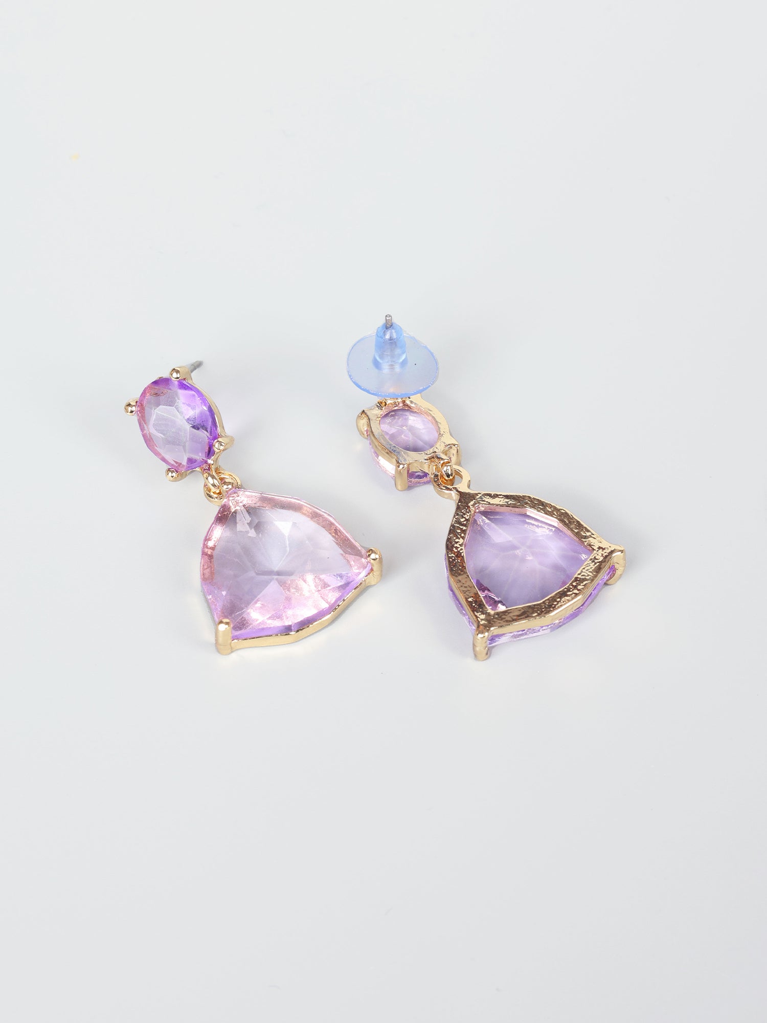 Pair these elegant purple stone earrings with a sleek updo and a flowing gown for a glamorous evening look. Let their captivating hue be the highlight of your ensemble for a touch of sophistication.
