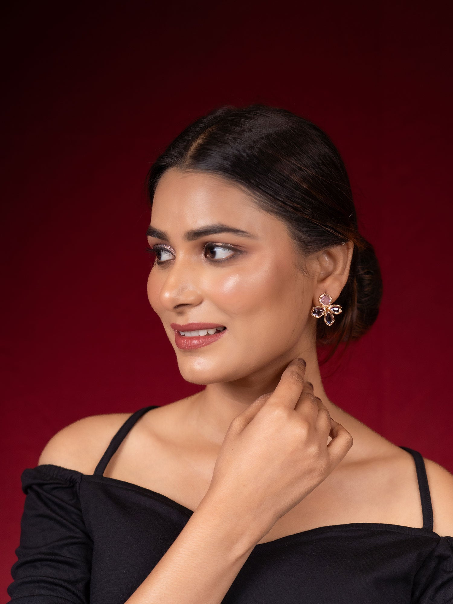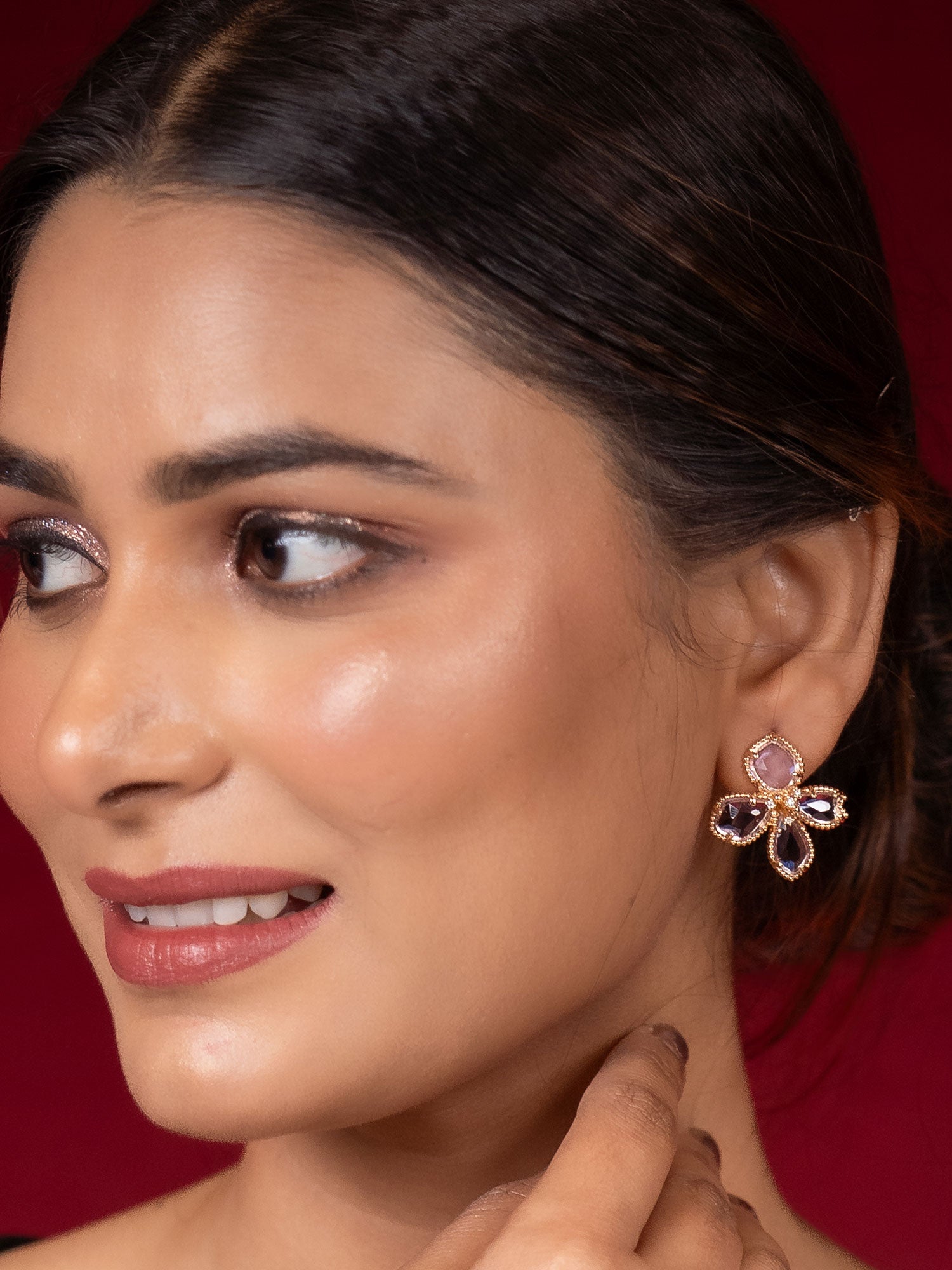 These gold-plated fancy flower earrings are a perfect blend of elegance and nature-inspired beauty. Crafted with intricate details, each earring features a delicate flower design that radiates charm, while the lustrous gold plating adds a warm, sophisticated touch. The unique, eye-catching design makes them the perfect accessory for both special occasions and everyday wear. Whether paired with a simple blouse or a formal dress, these earrings add a beautiful, feminine touch to any outfit. A timeless addition to your jewelry collection, these gold-plated flower earrings effortlessly elevate your style with a refined yet playful flair.