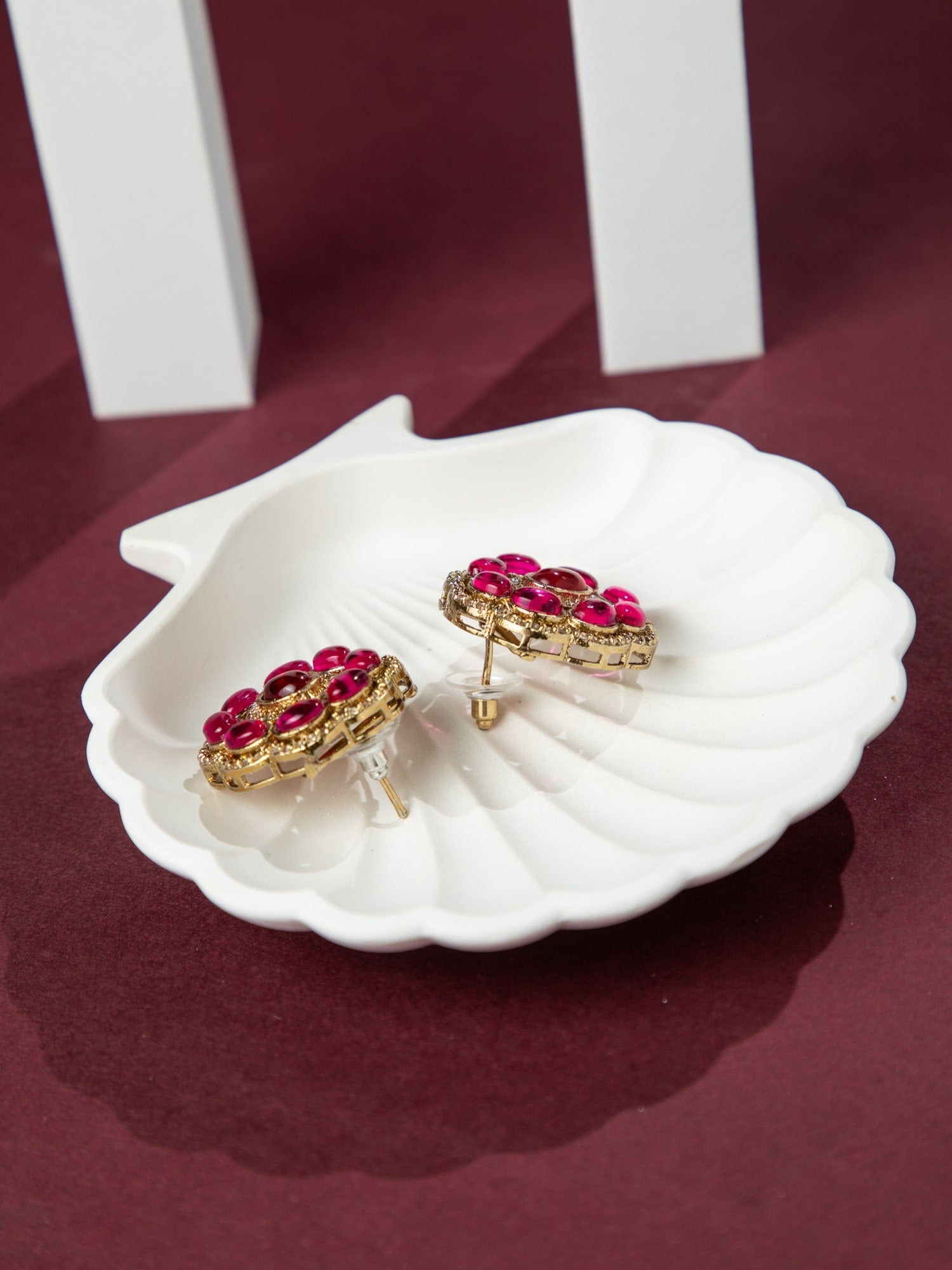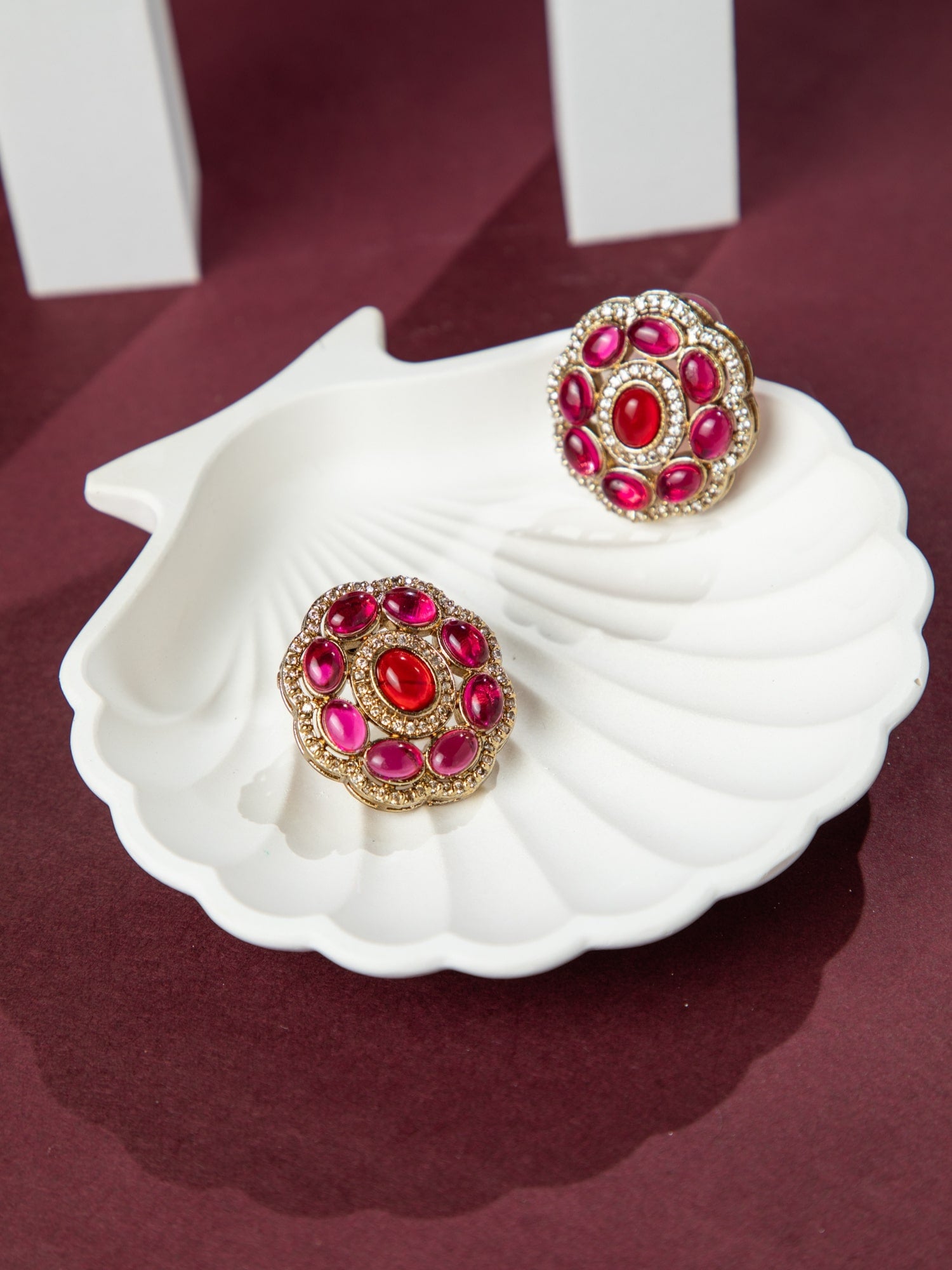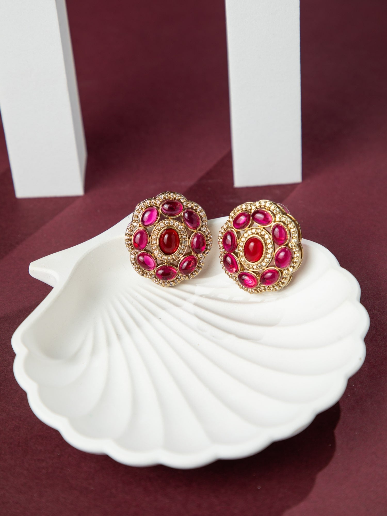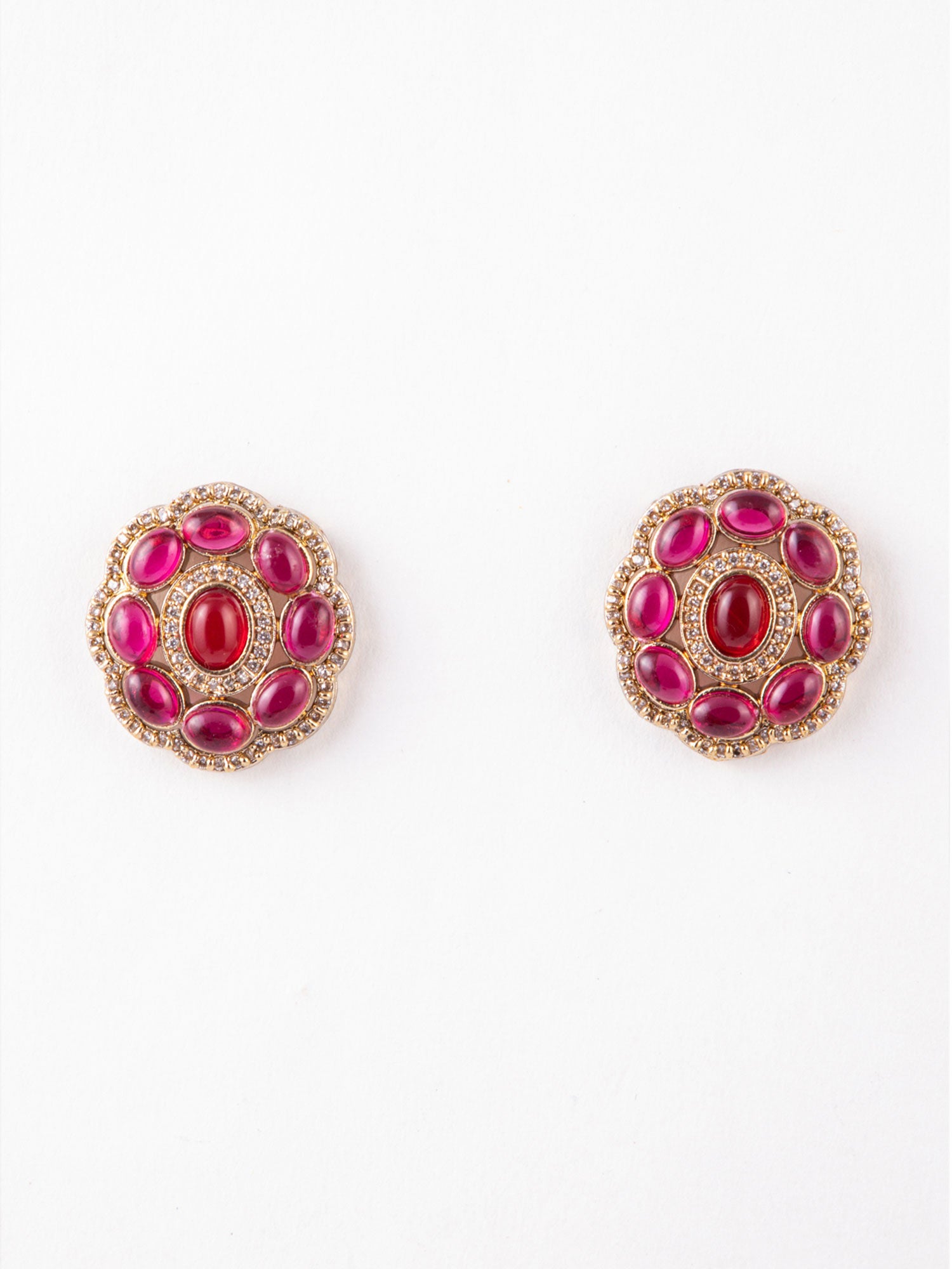 Gold Plated Round Earrings with Pink, Red and White CZ Stones