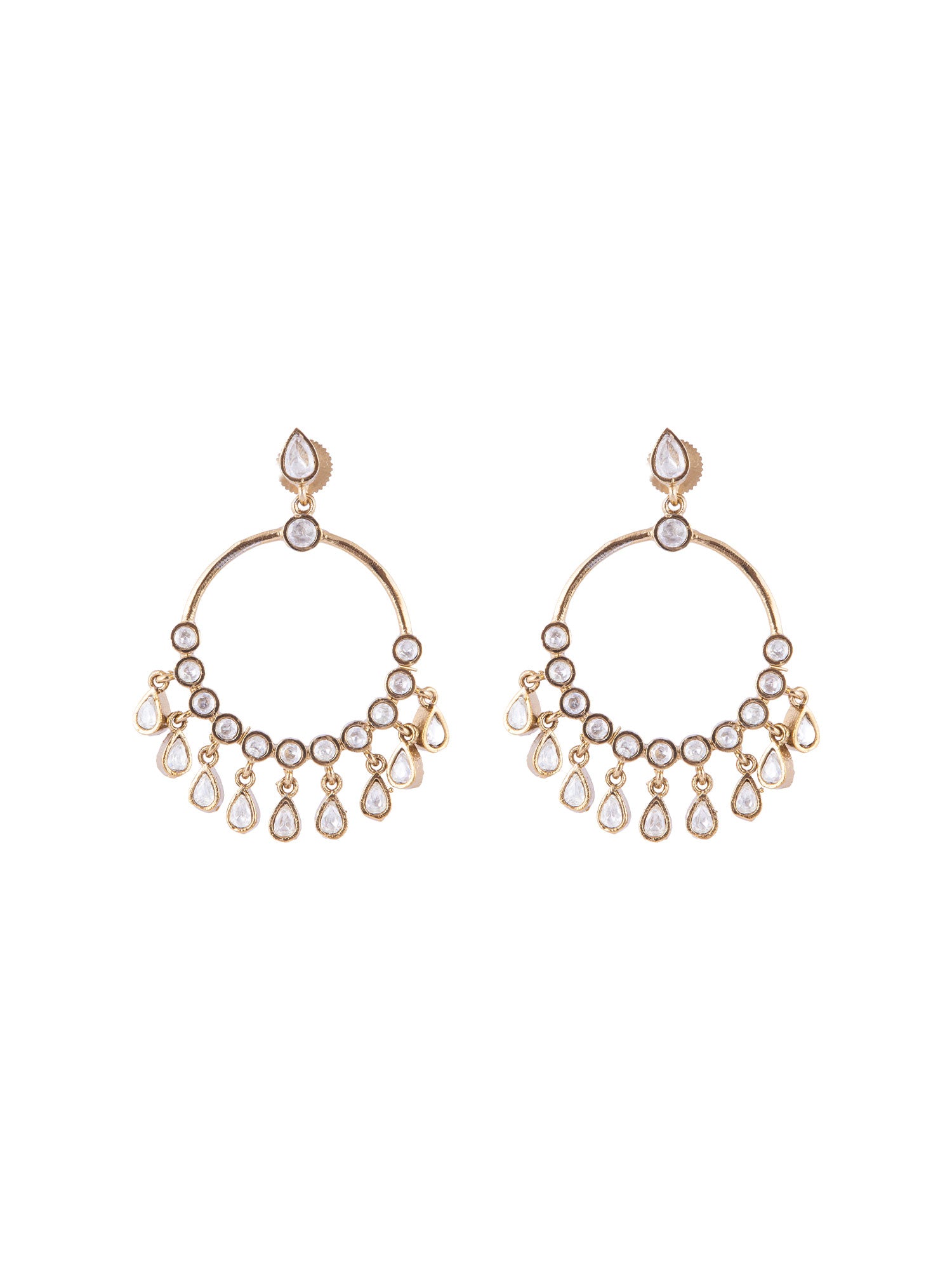 Gold Plated Round Kundan Dangler Earrings