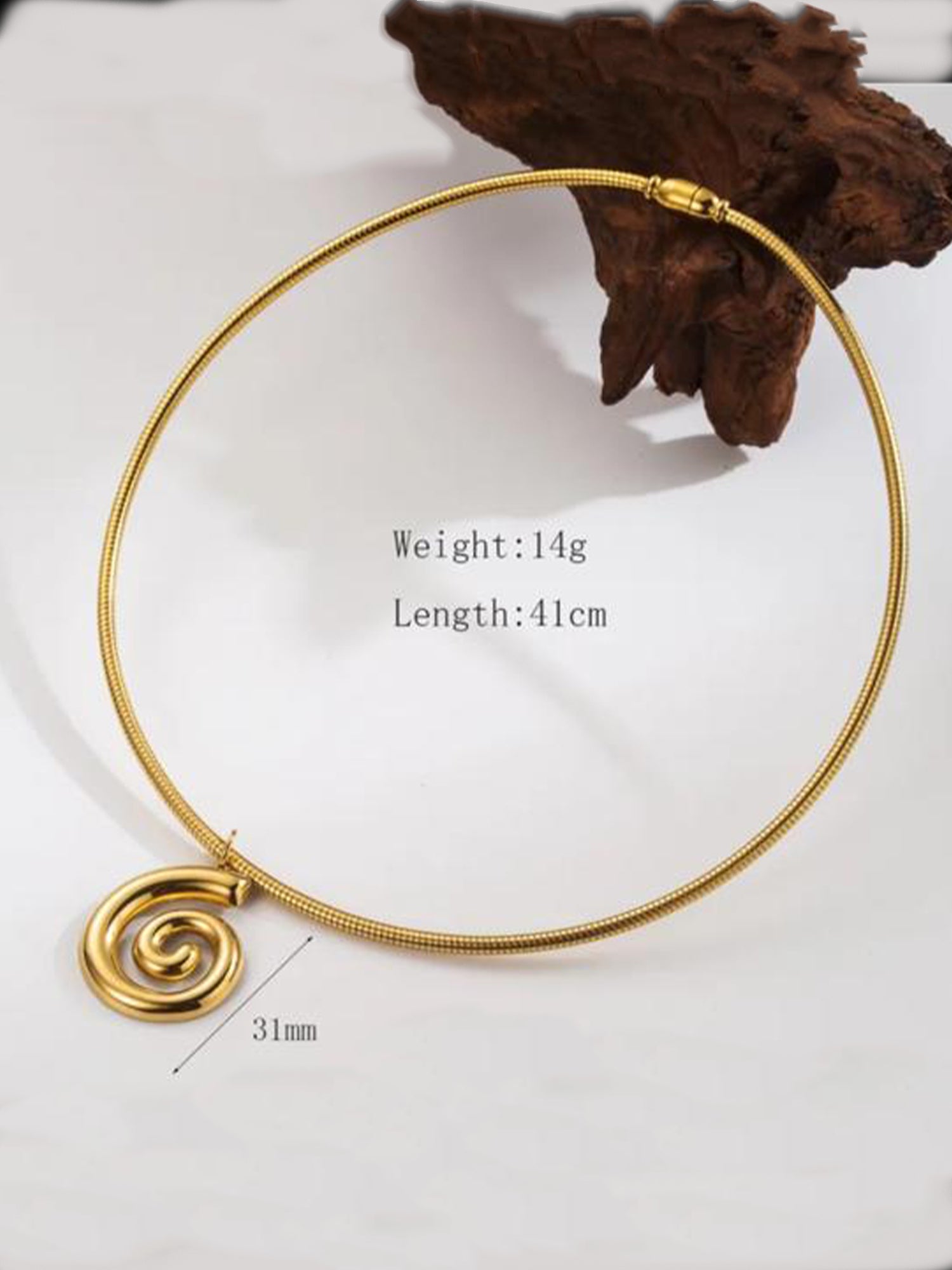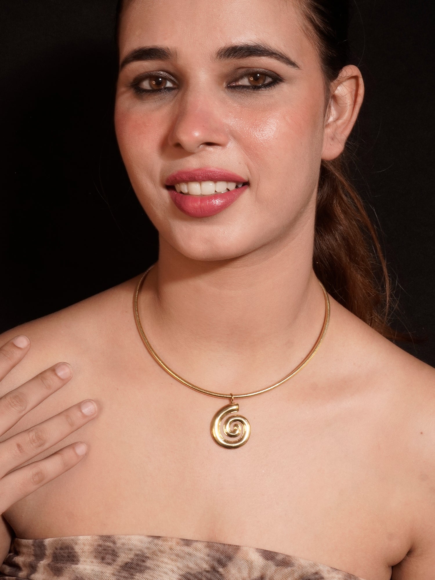 Make a bold statement with this stunning gold-plated choker necklace, featuring an intricate spiral design that adds a touch of elegance and modern flair. Crafted to perfection, this necklace combines the timeless appeal of gold plating with a unique twist, making it a standout piece in your fashion jewellery collection.