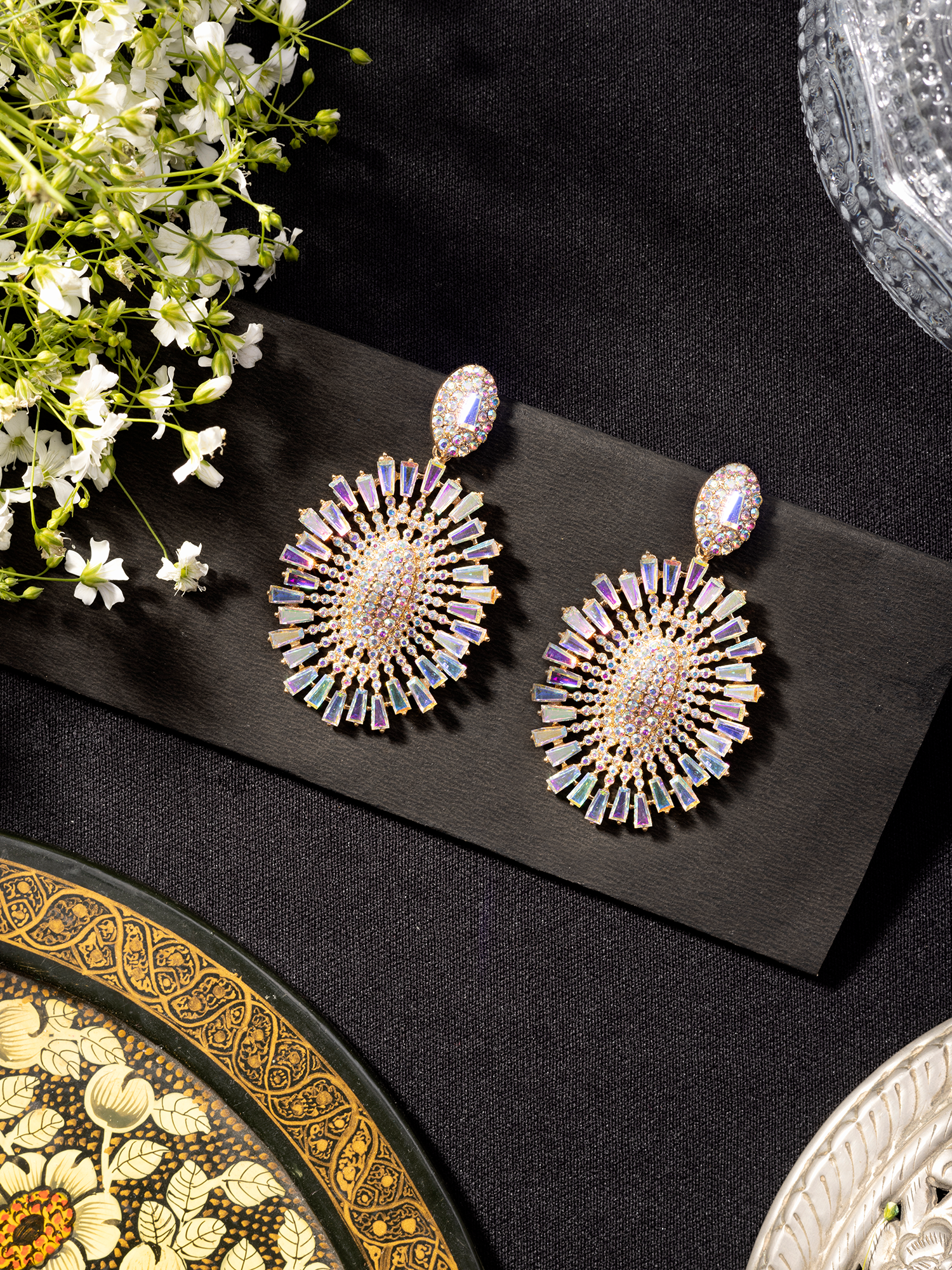 Enhance your outfit by pairing these dazzling starlite earrings with a sleek updo and a cocktail dress for a glamorous evening look. Let their sparkling white design be the focal point of your ensemble.