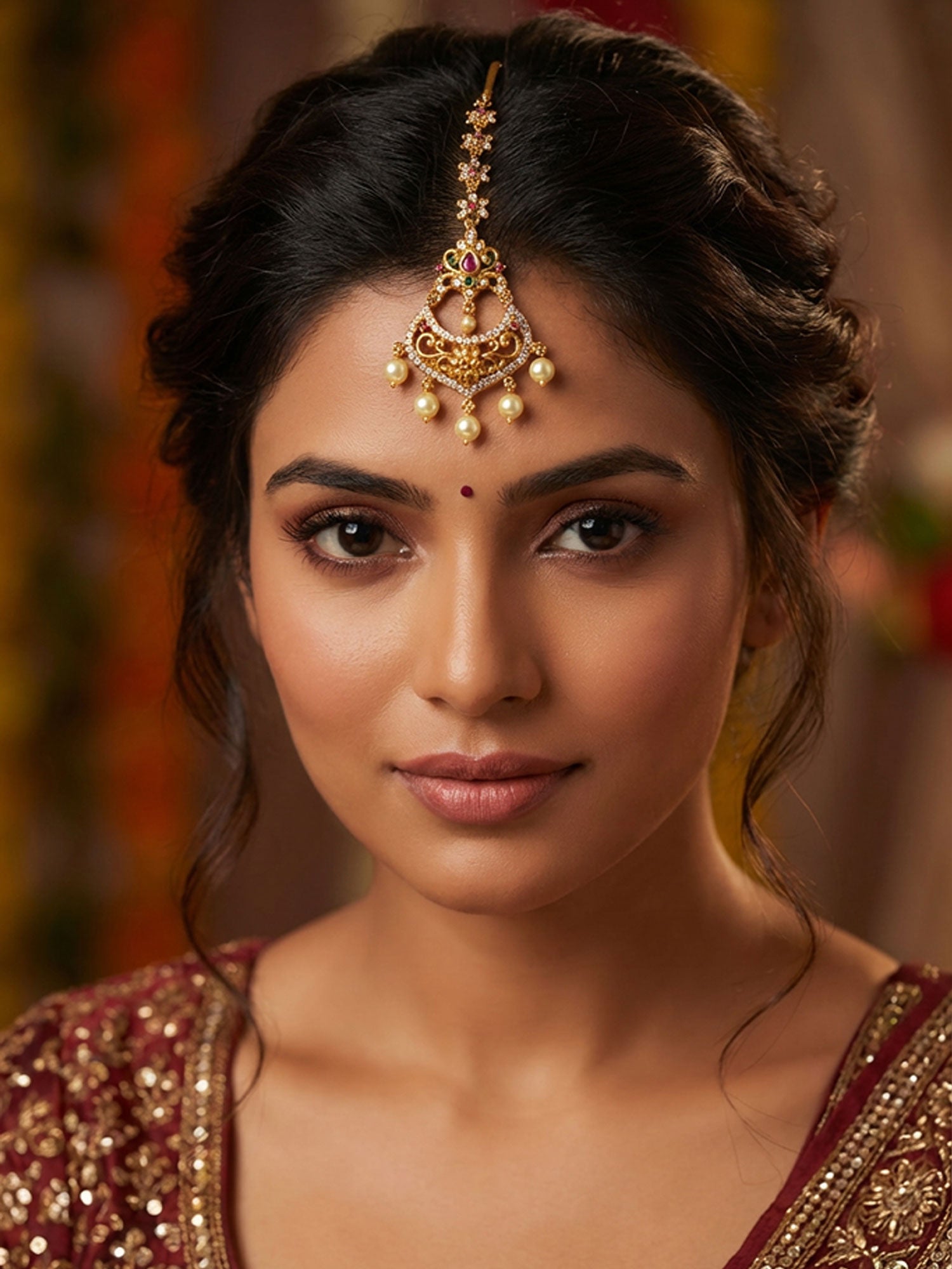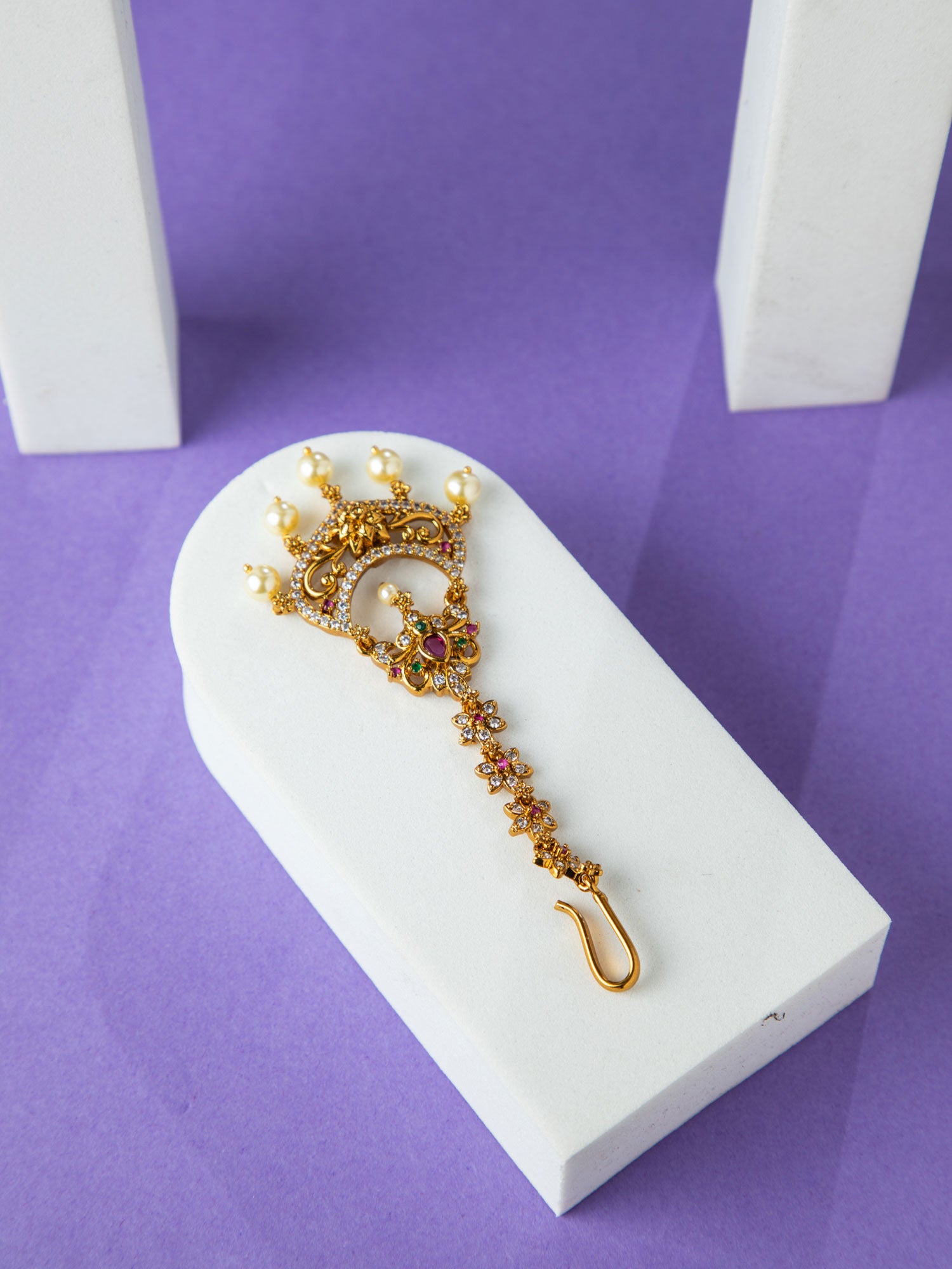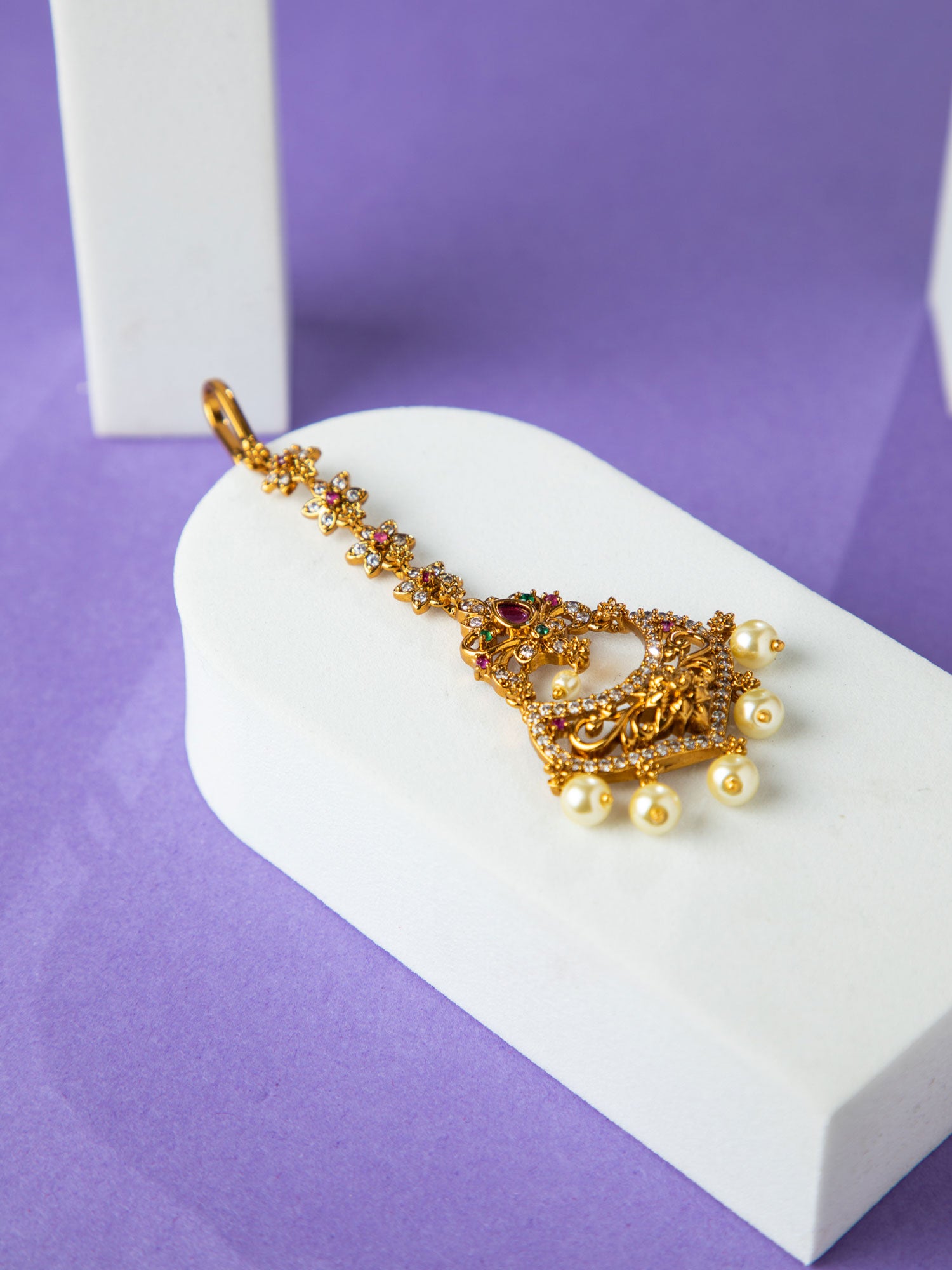 Gold Plated White Green and Red CZ Stones Maang Tika