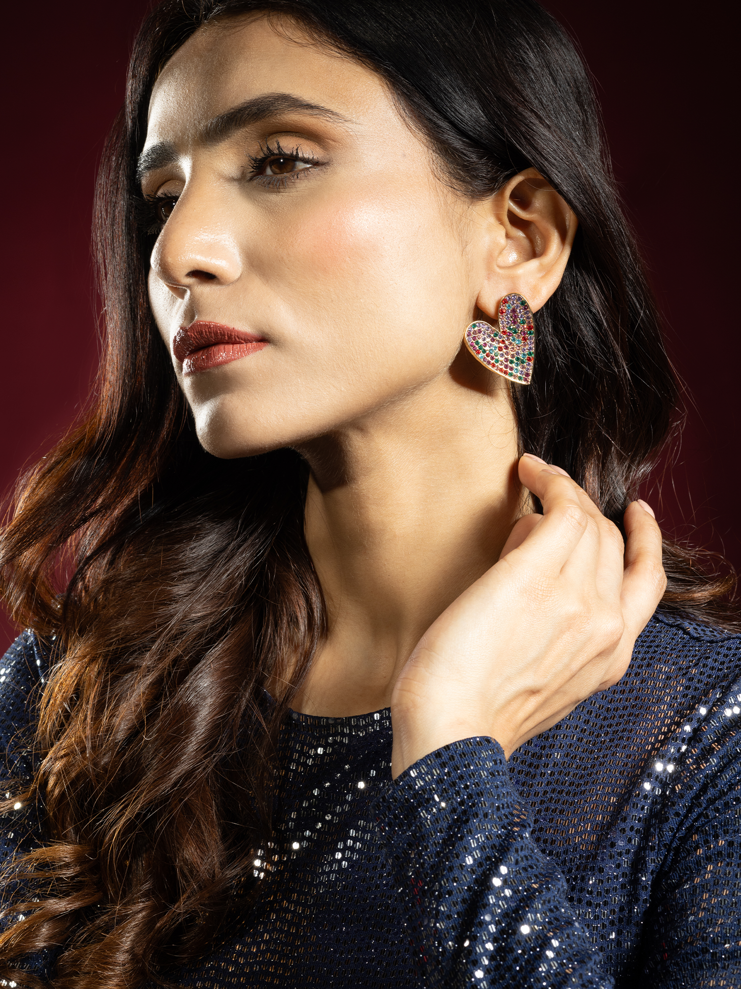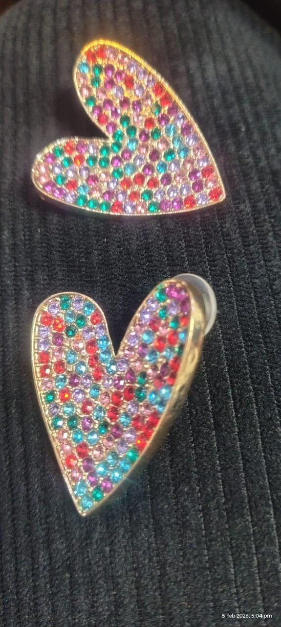 Enhance your ensemble by pairing these dazzling heart-shaped earrings with a chic little black dress for a touch of elegance, or with a casual outfit to add a pop of color and style to your look.