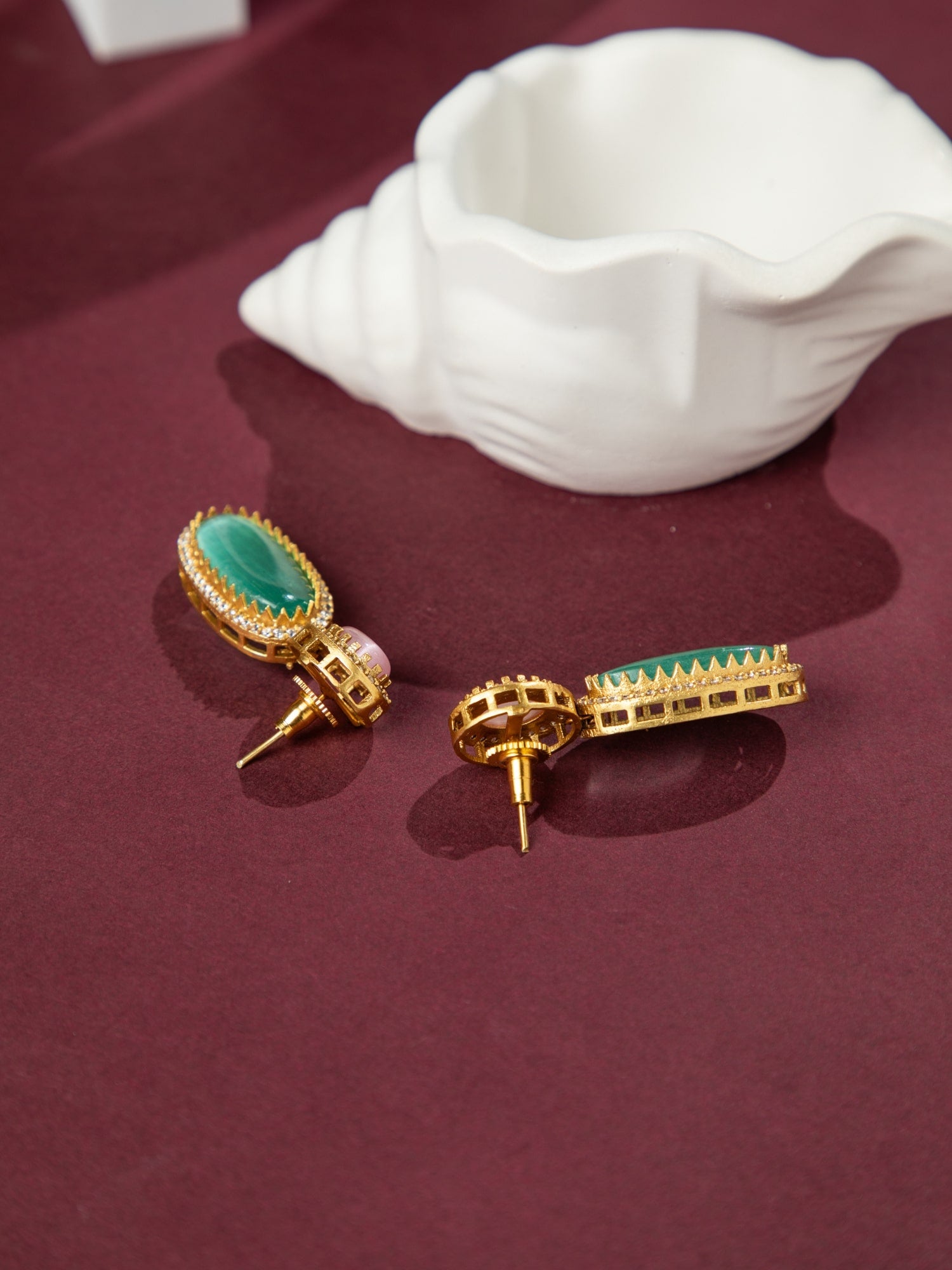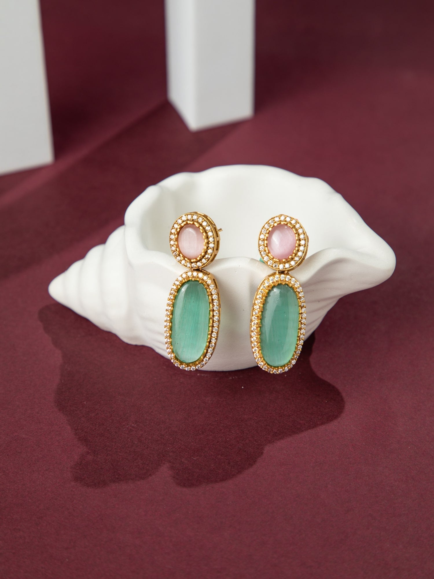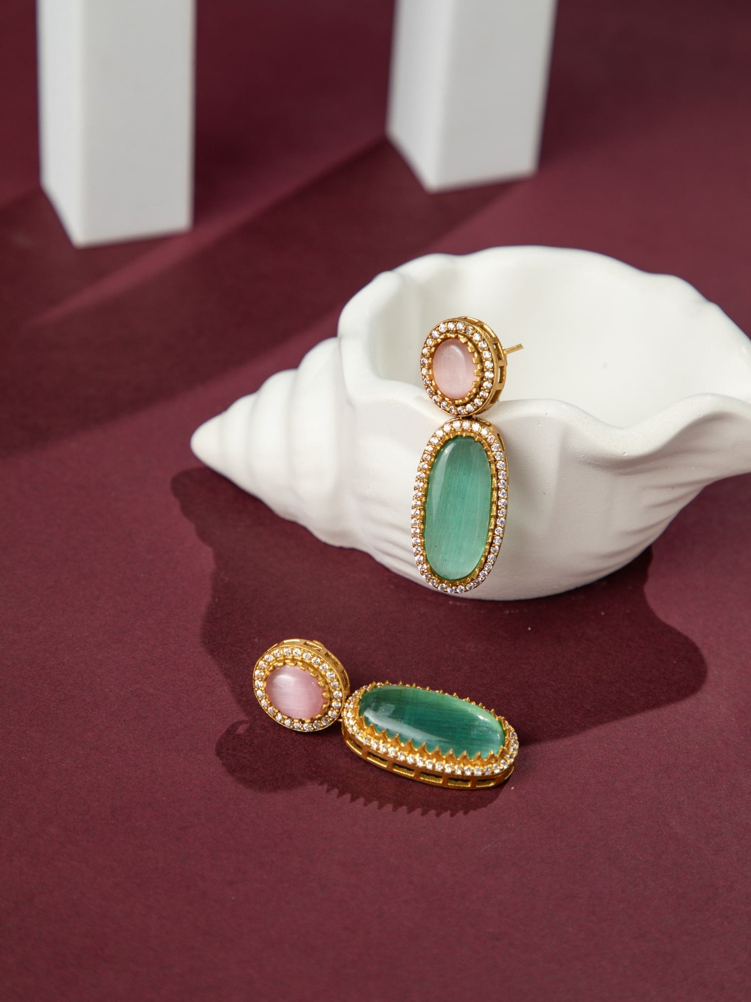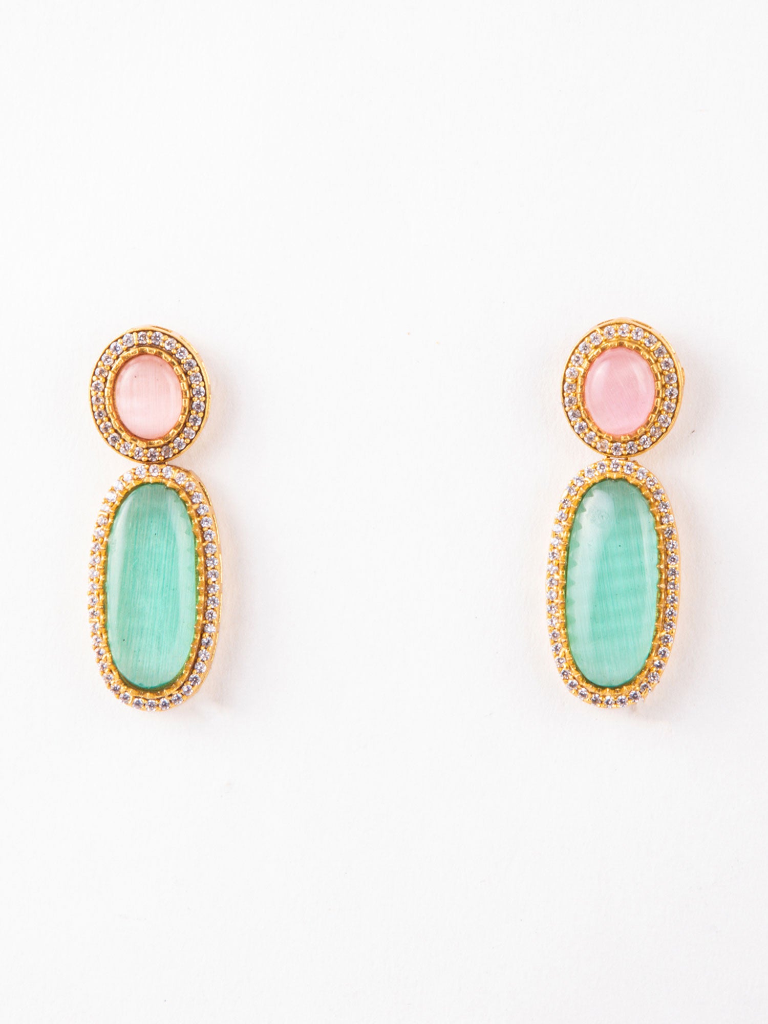 Matte Gold Plated Earrings with Lime Green and Pink Stones and White CZ Accents