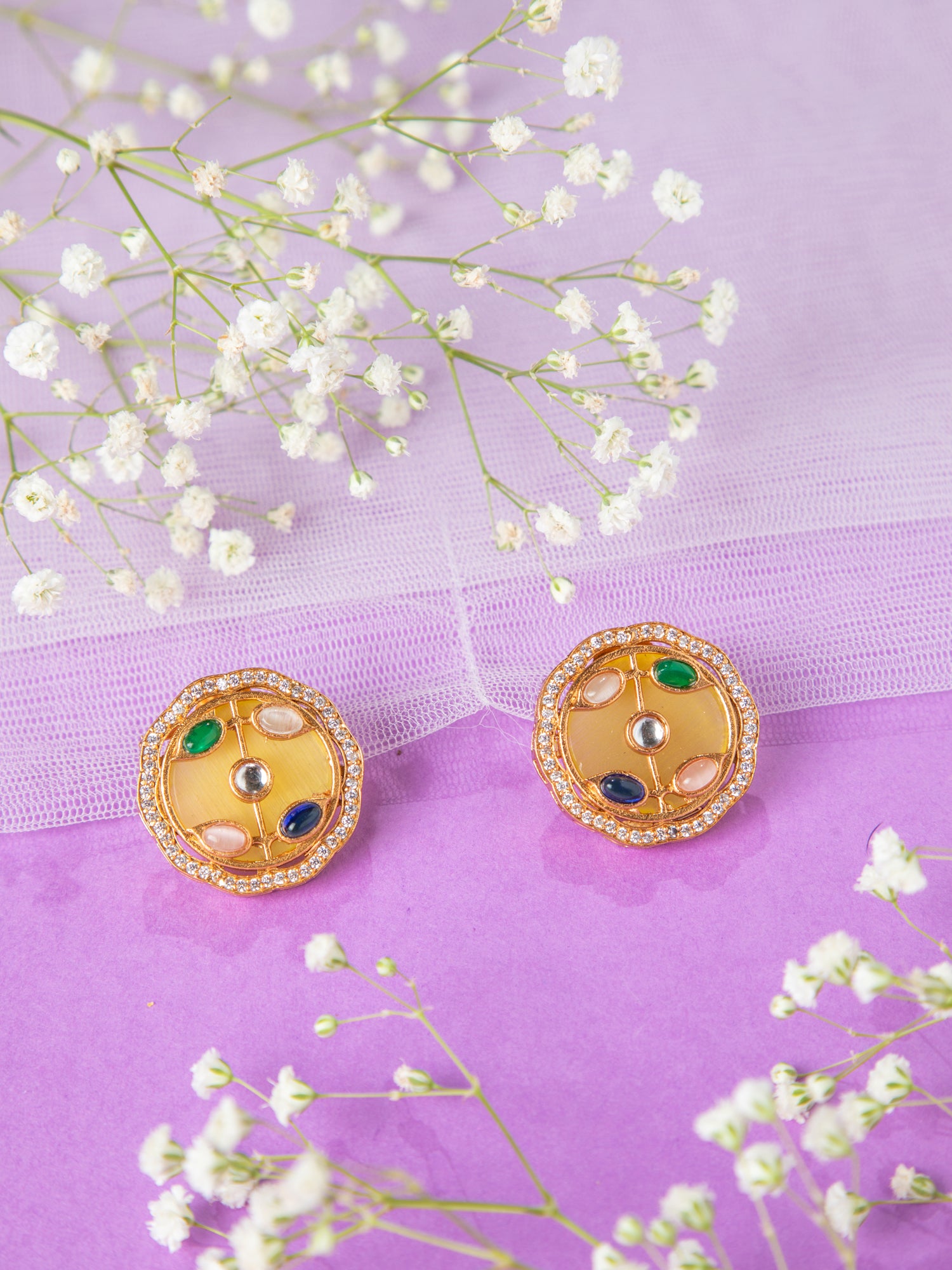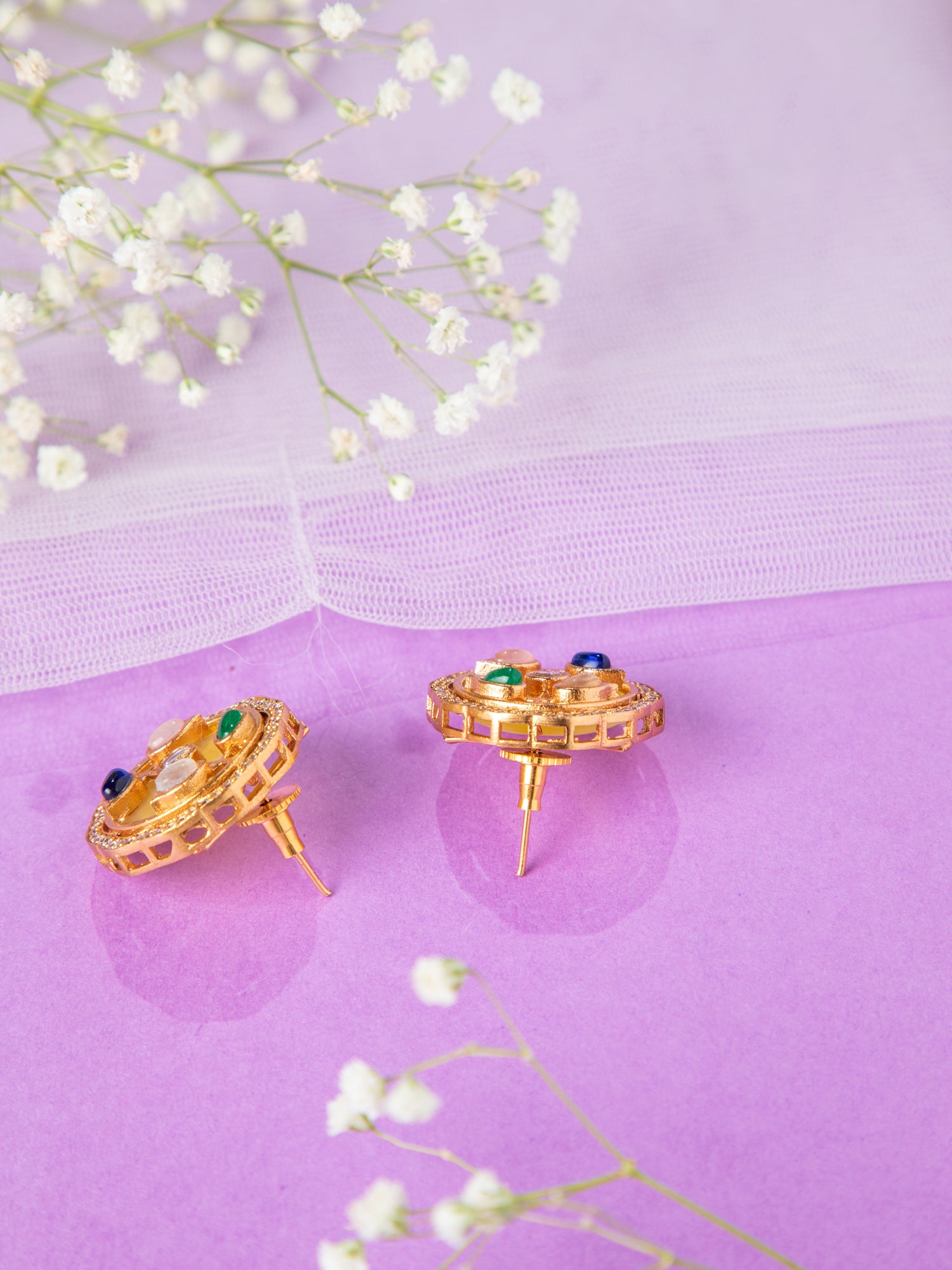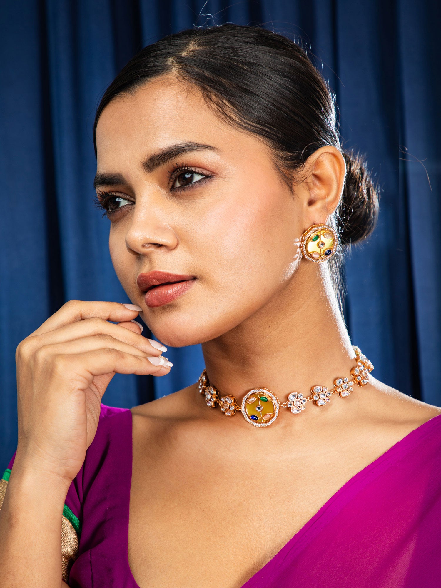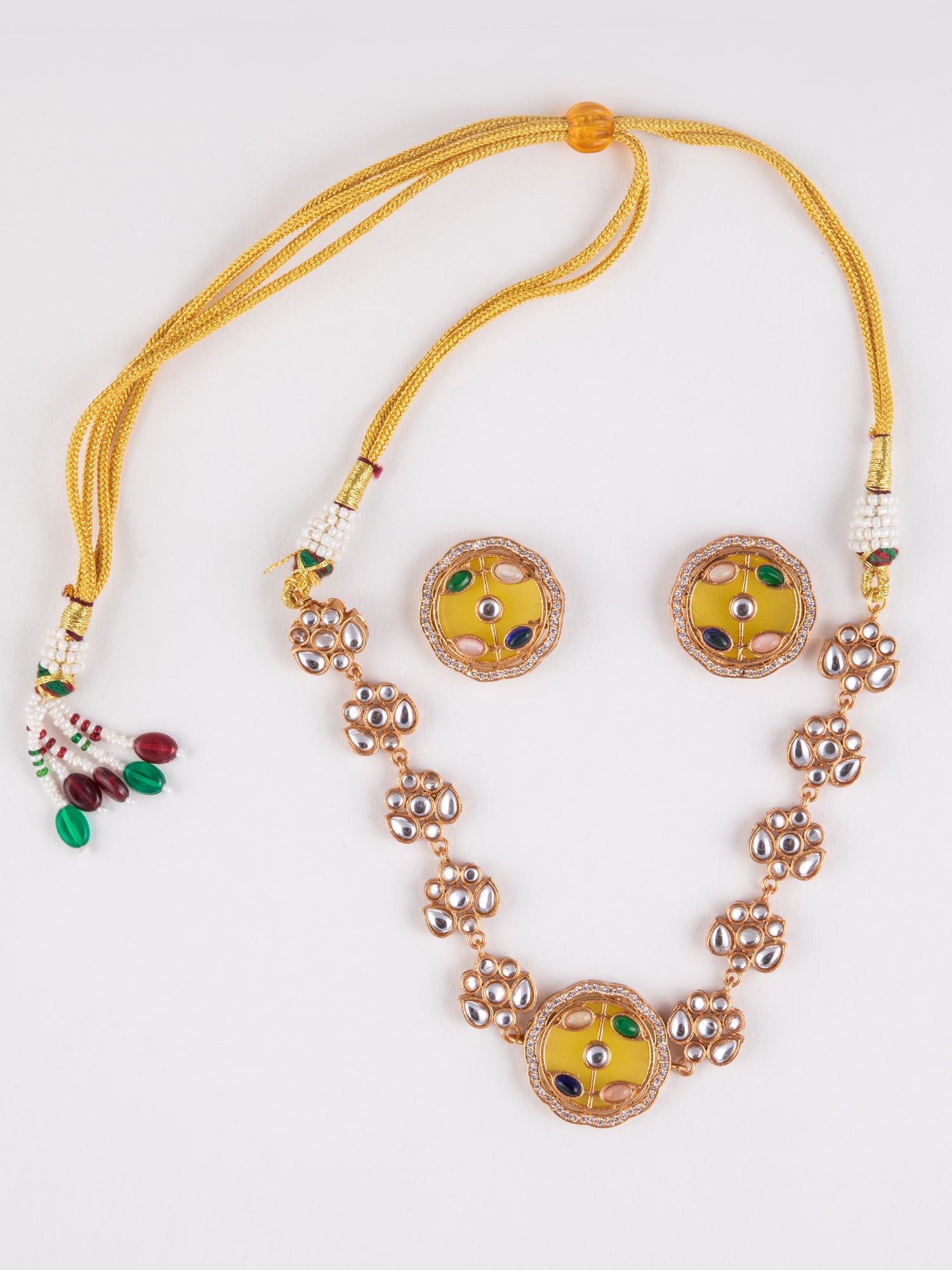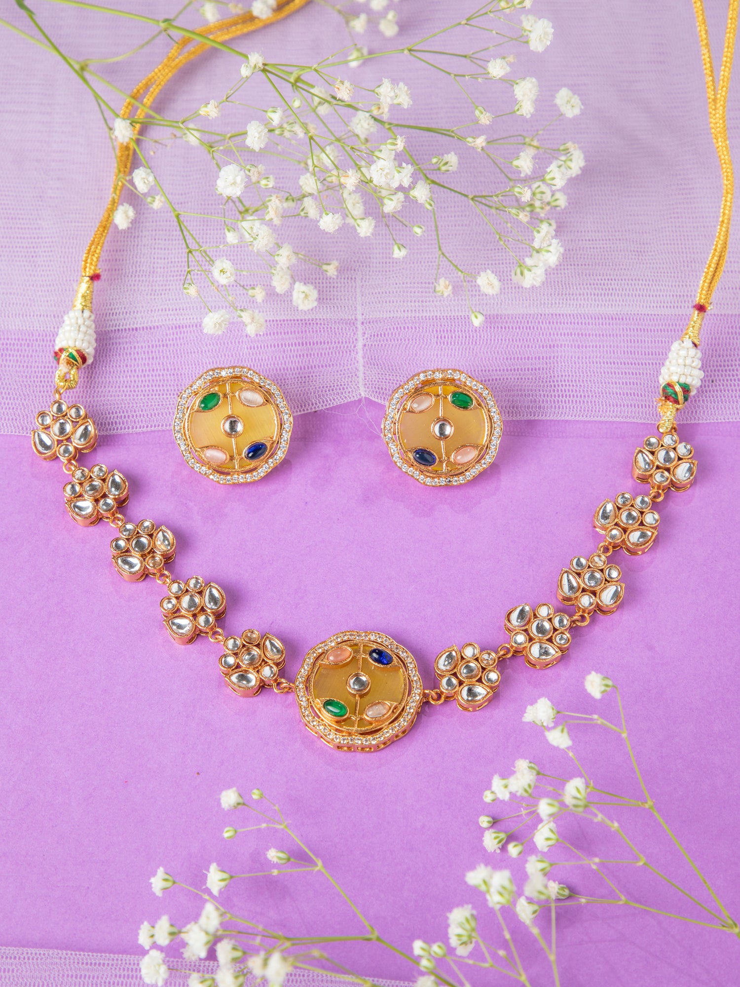 Matte Gold Plated Multistone Kundan and CZ Necklace Set with Earrings