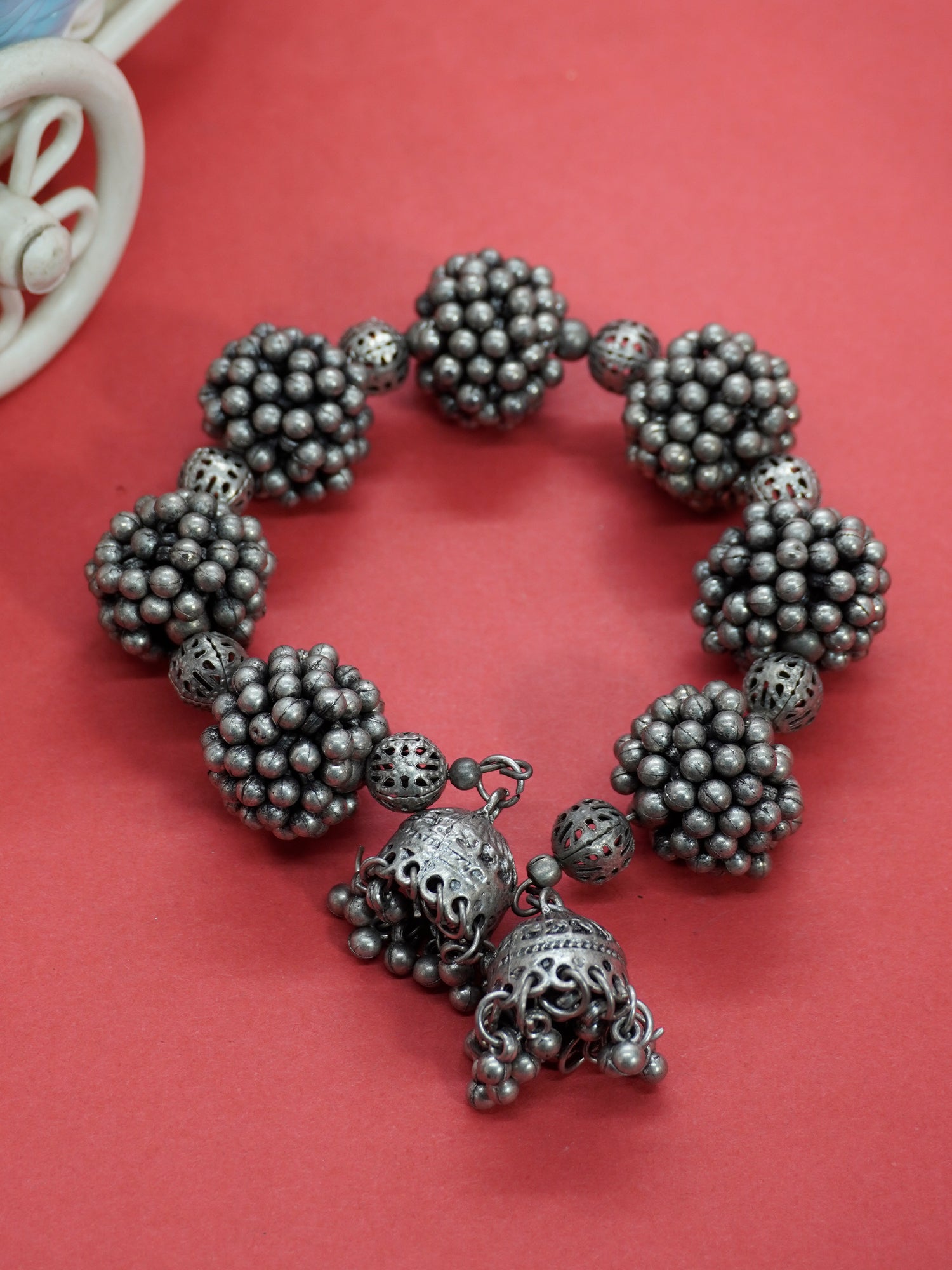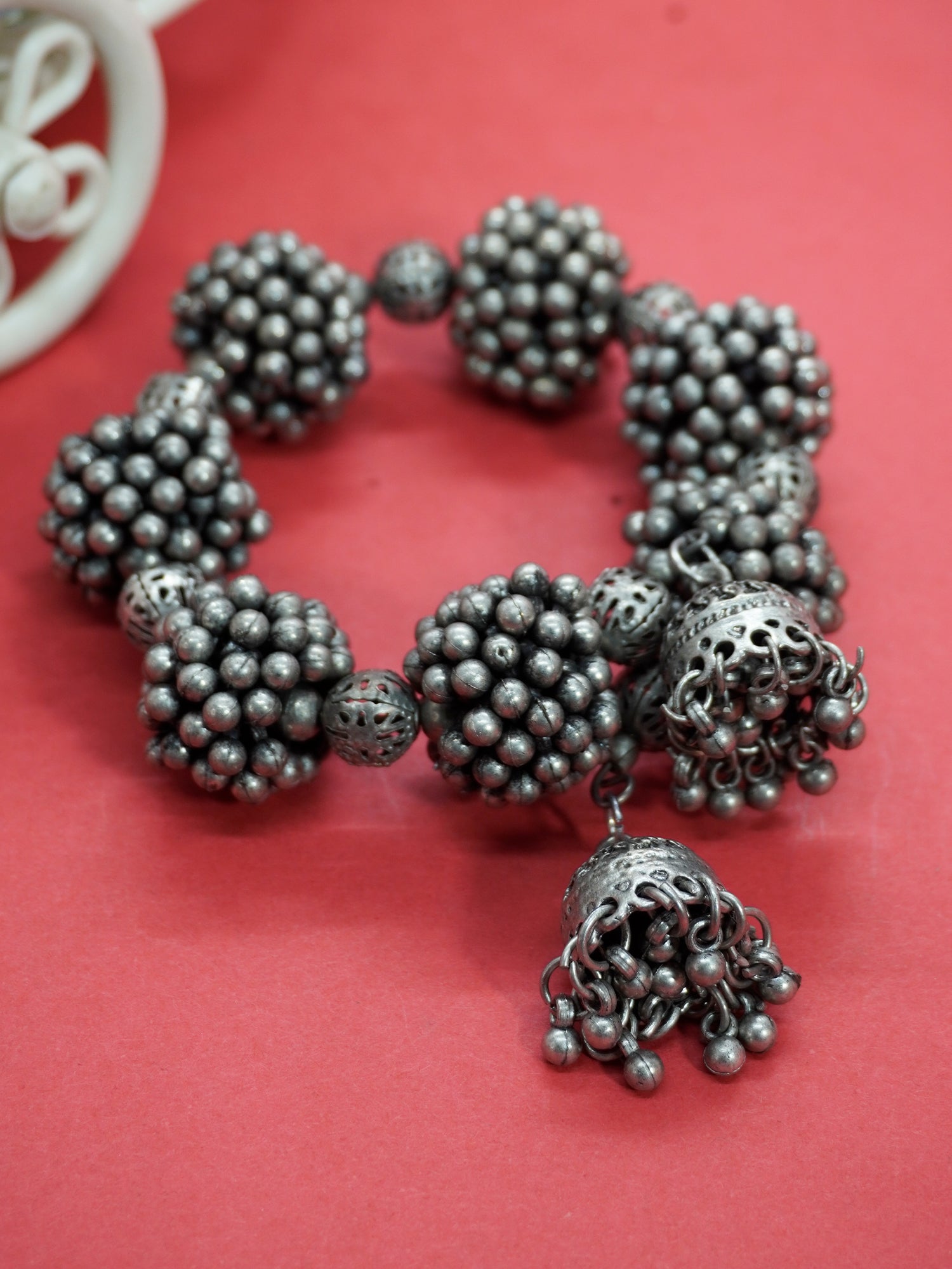 Oxidized Silver Ghungroo-Studded Bracelet with Black Polish
