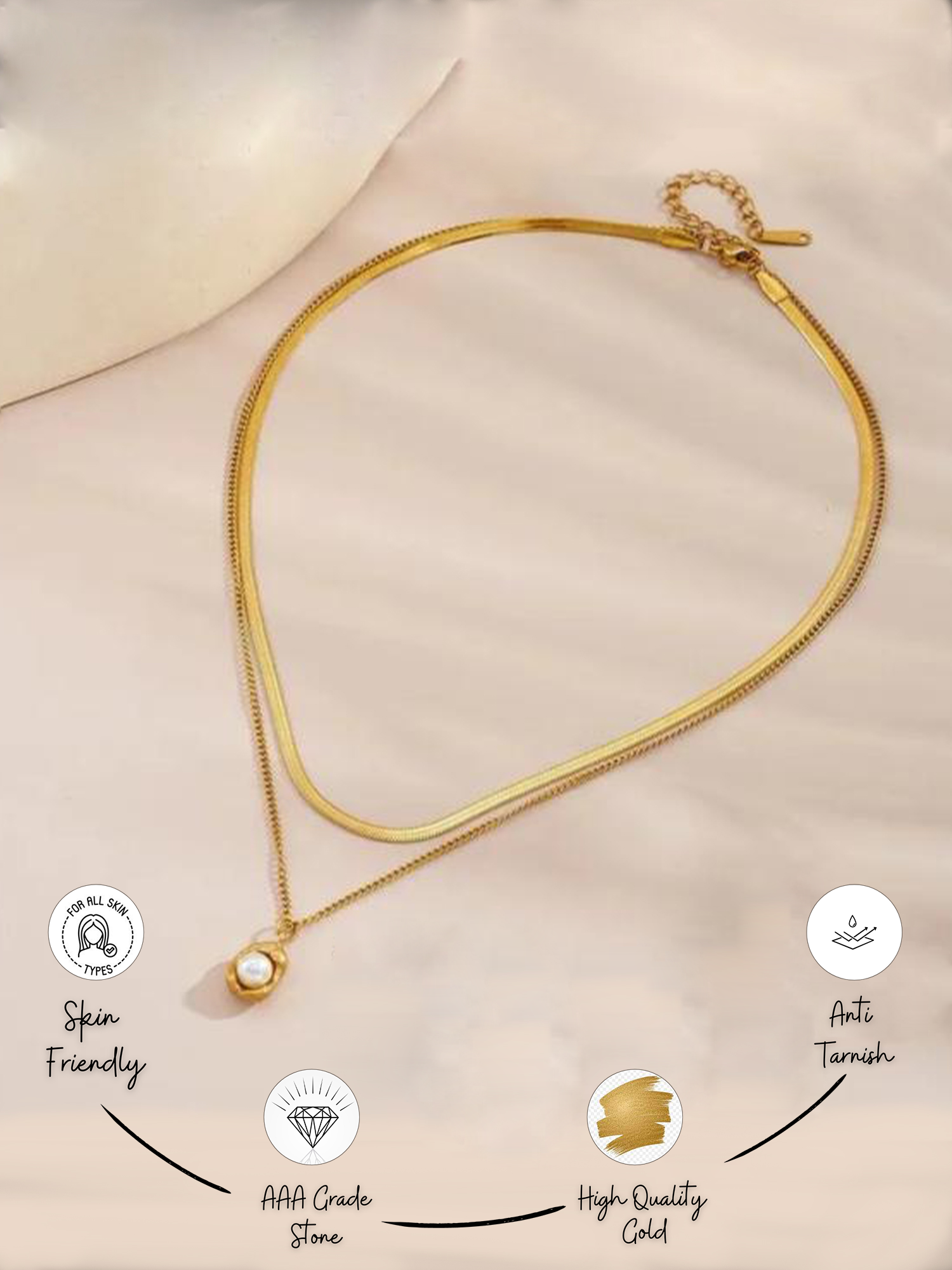 This elegant pendant chain combines timeless sophistication with modern flair. Featuring a delicate pearl pendant, it is the perfect addition to any fancy jewelry collection. The sleek chain design complements the lustrous pearl, creating a graceful and refined look. Ideal for special occasions or as an everyday statement piece, this pendant chain brings a touch of luxury to any outfit. A must-have for those who appreciate both classic and contemporary style.