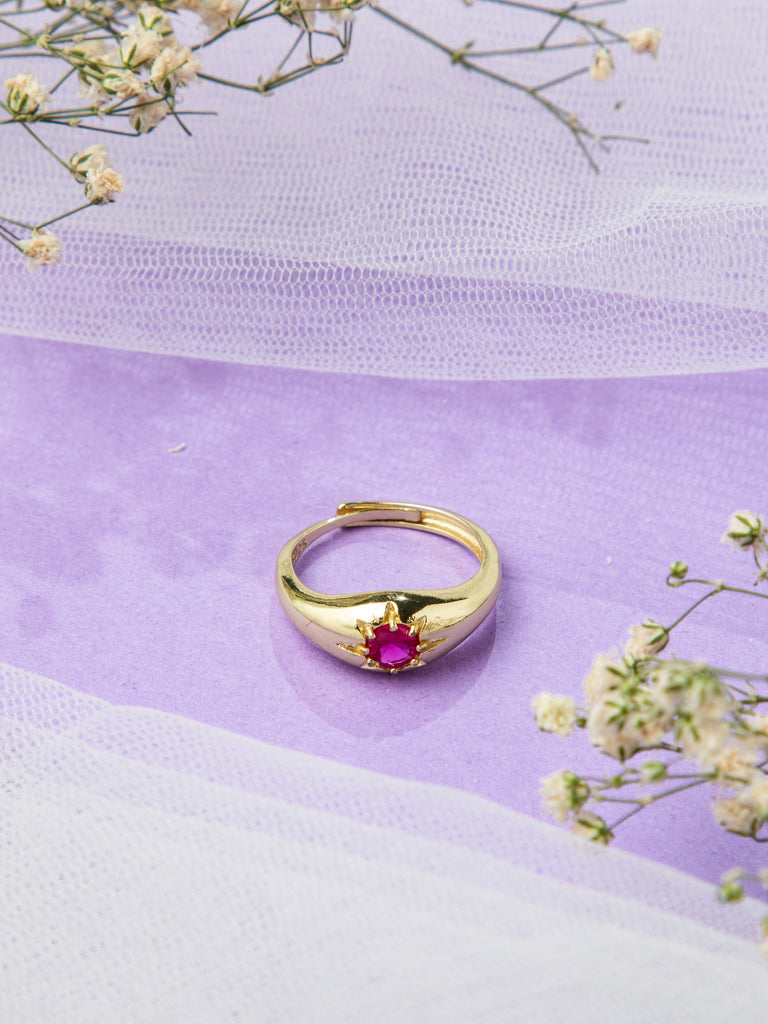 Beautiful ring featuring a pink round stone surrounded by a stunning star design. Its mesmerizing look makes it perfect for both daily wear and special parties, adding a touch of elegance and charm to any outfit.