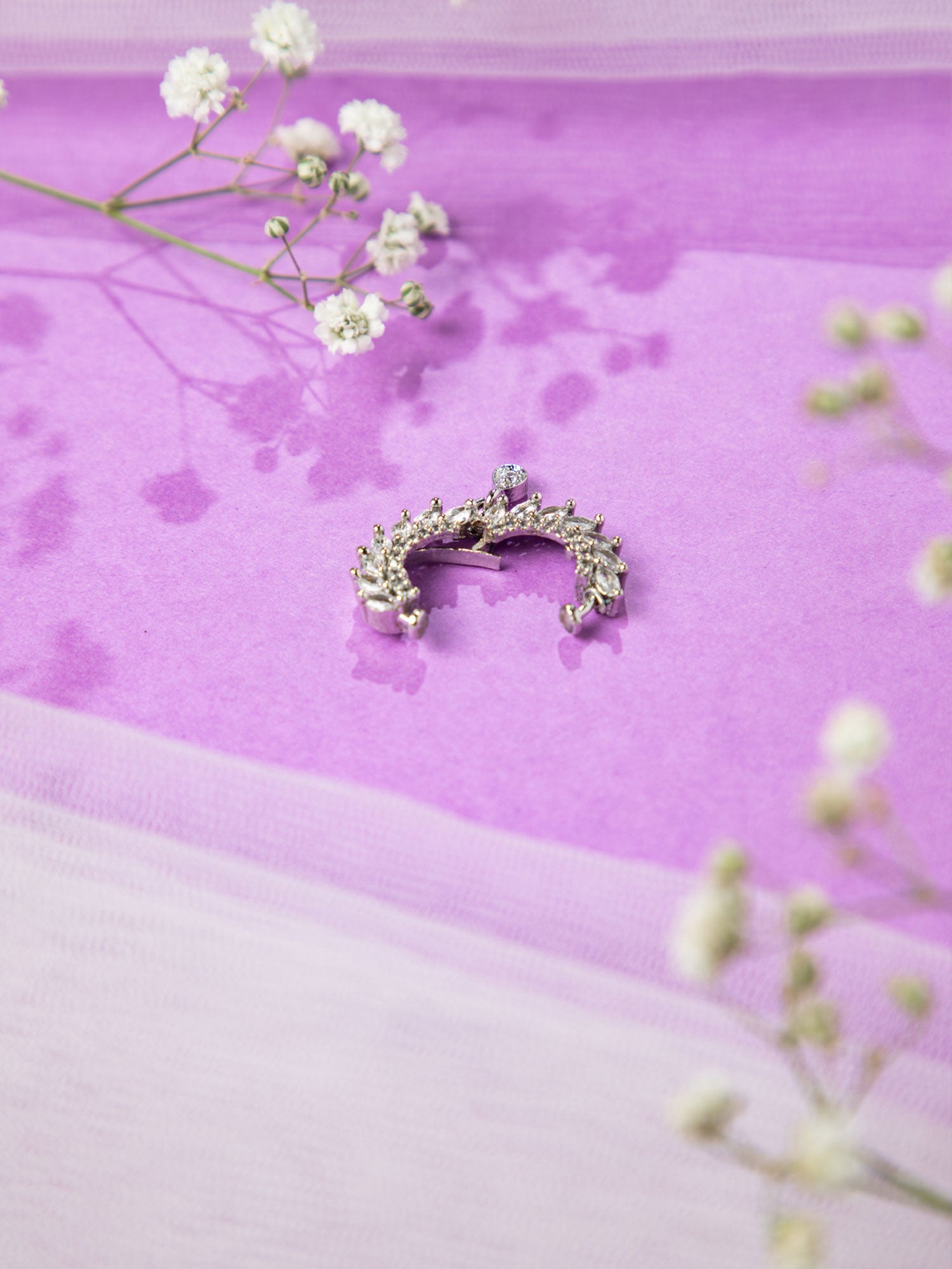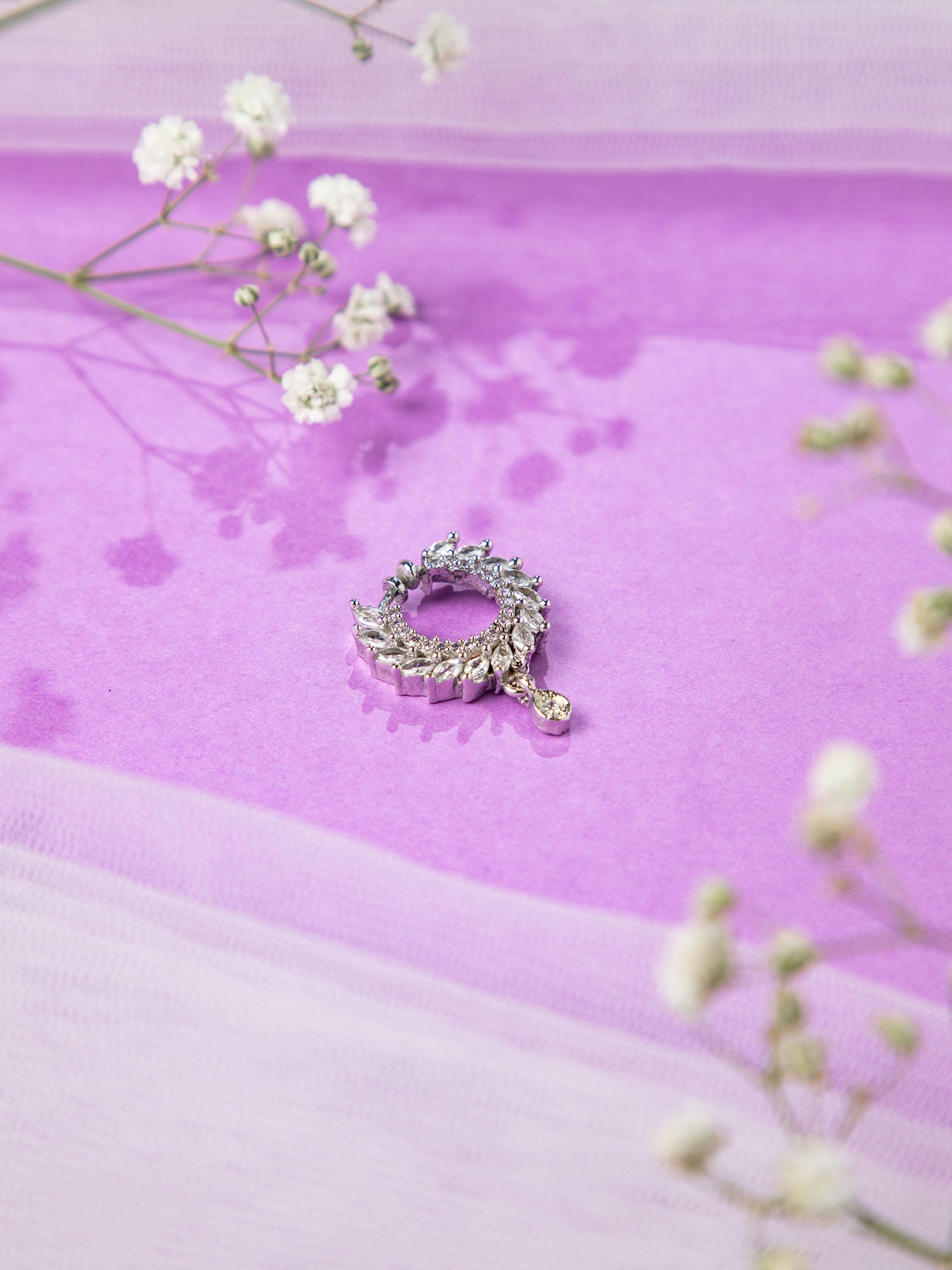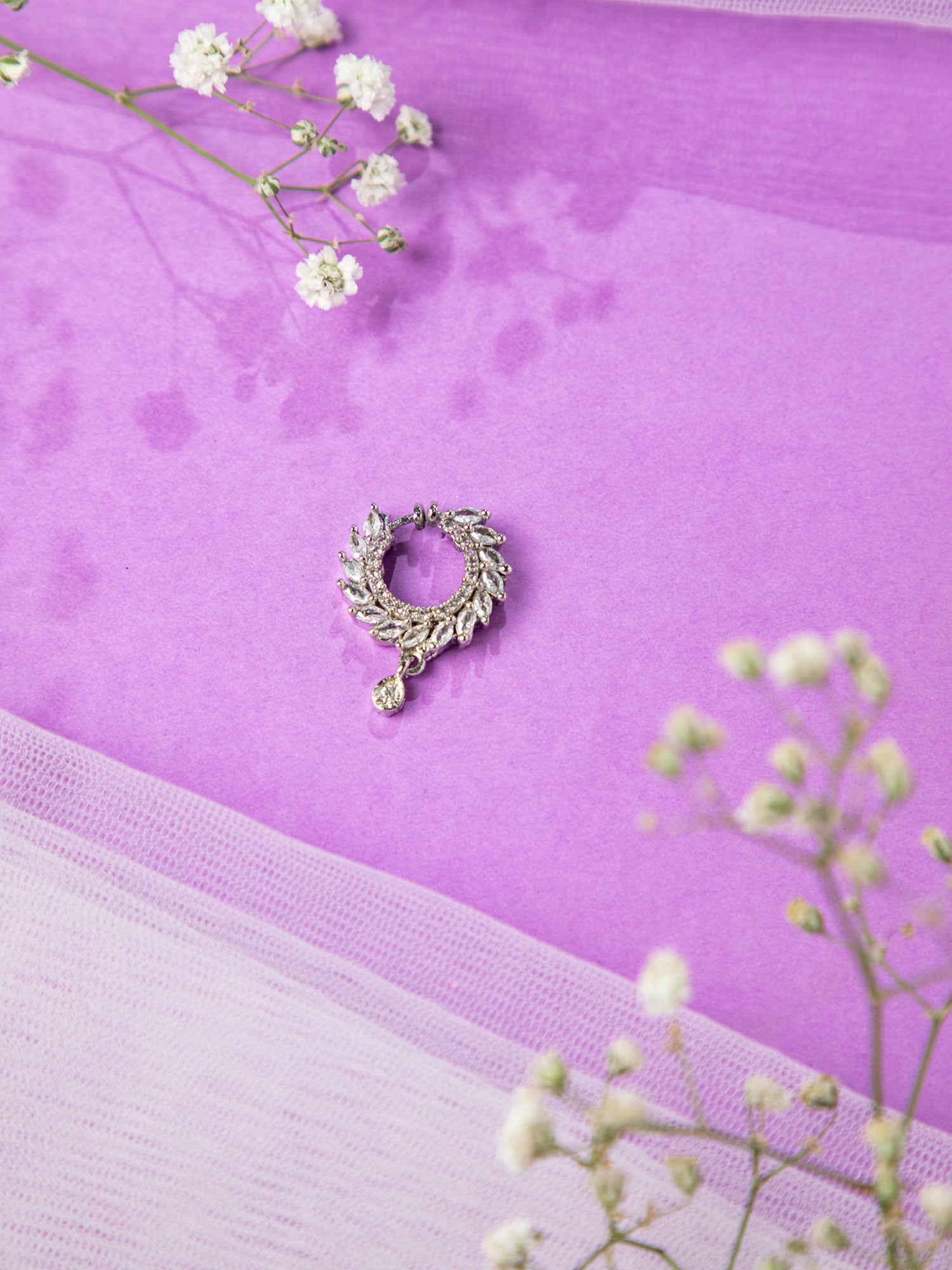 Rhodium Plated American Diamond Modern Nath Nose Ring