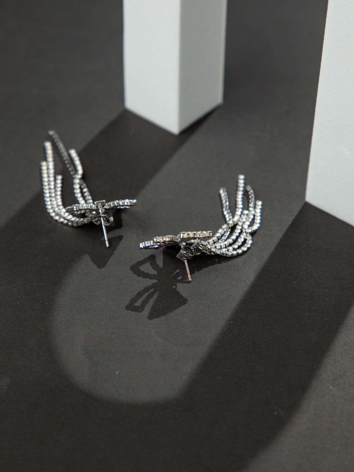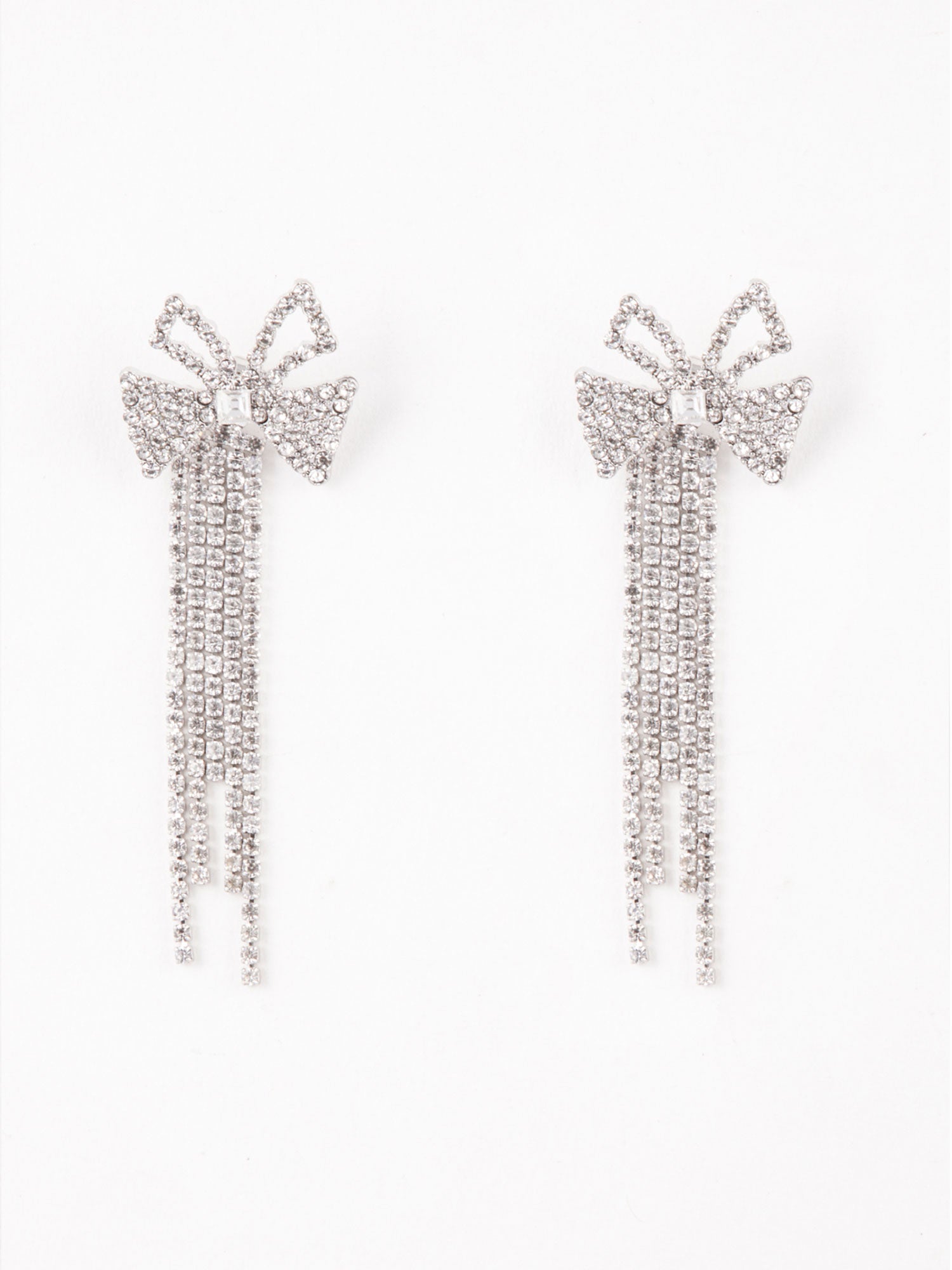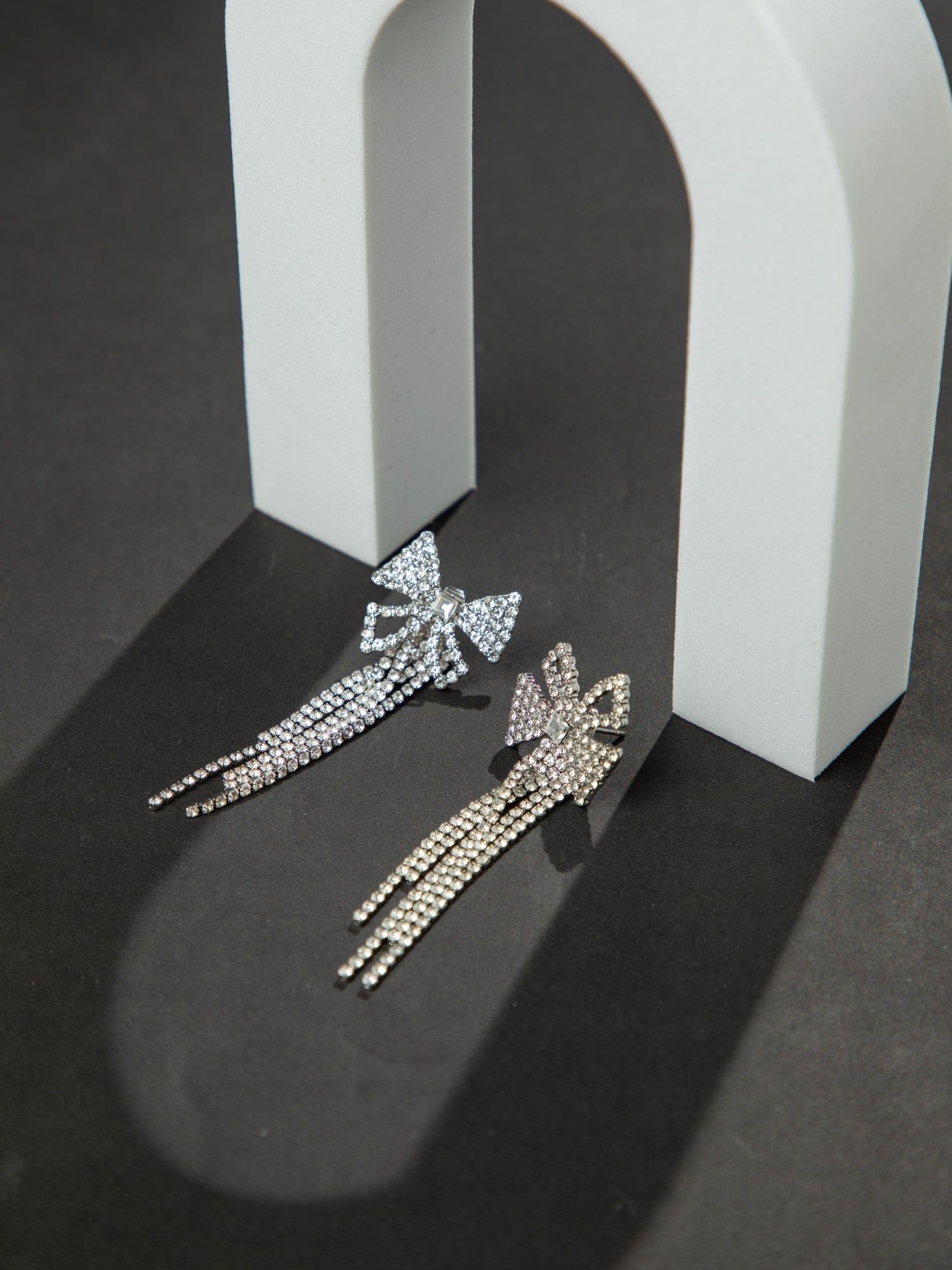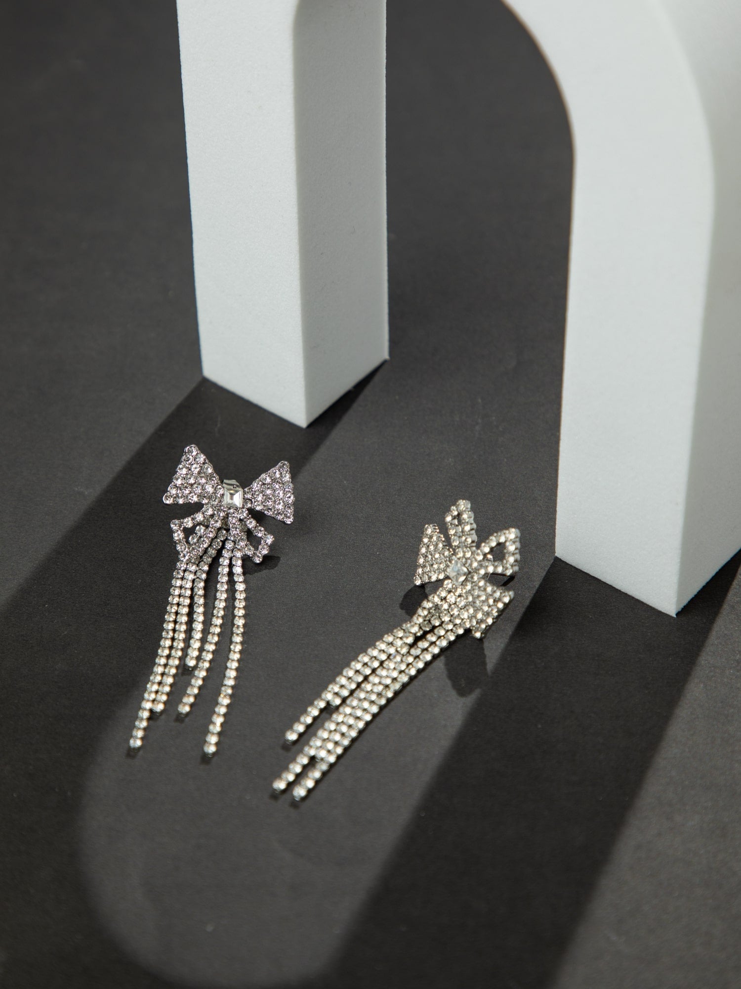 Rhodium Plated Bow Shaped White American Diamond Dangler Earrings