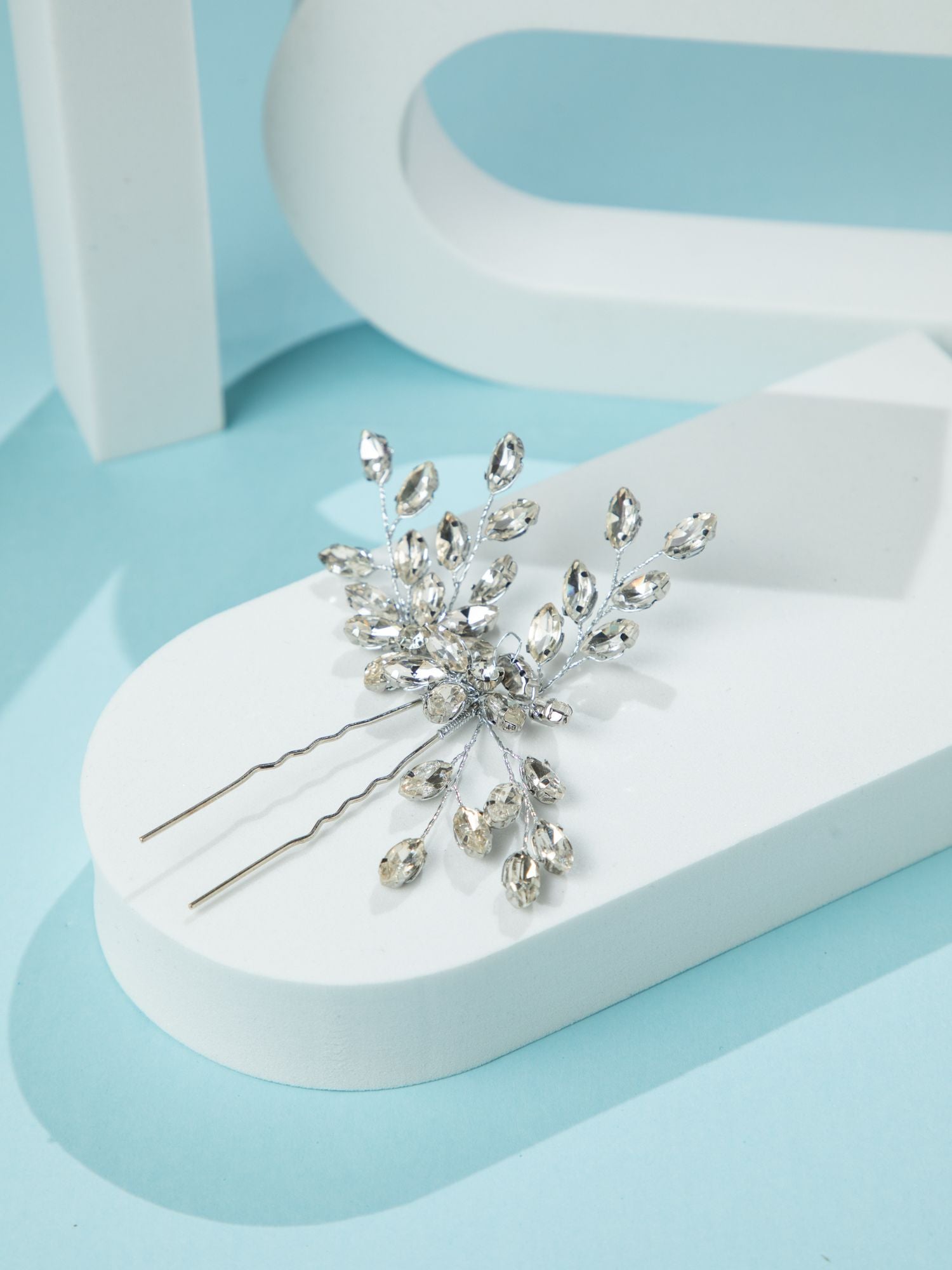 Rhodium Plated Flower Design Hairpin with Sparkling White Stones