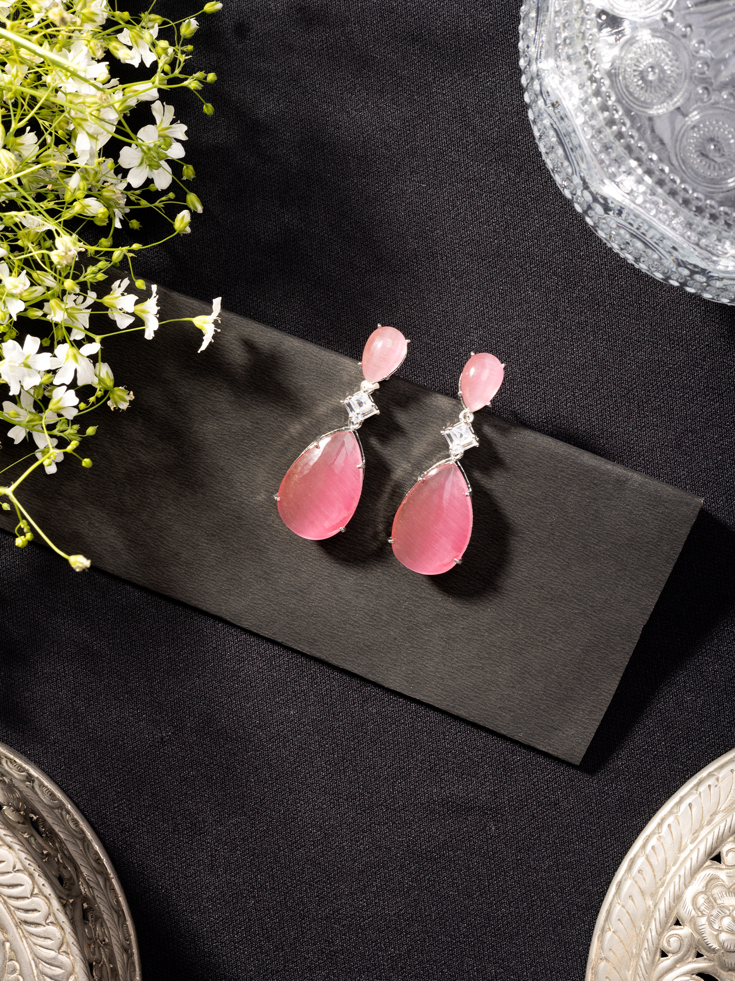 Pair these Rhodium Plated Magenta Water Drop Earrings with a sleek black cocktail dress for a chic evening look. Add a statement clutch and heels to complete the ensemble with glamour and sophistication.