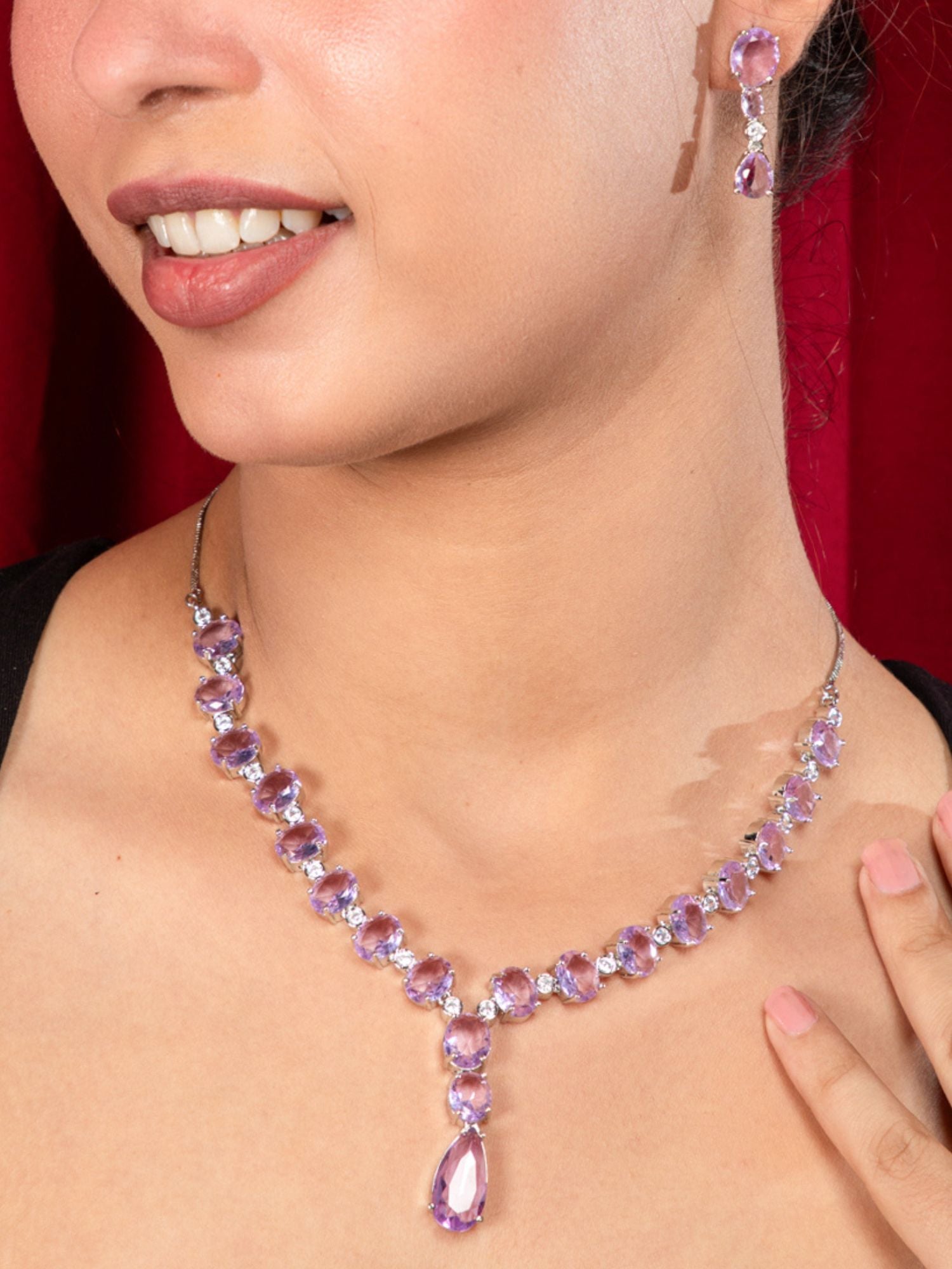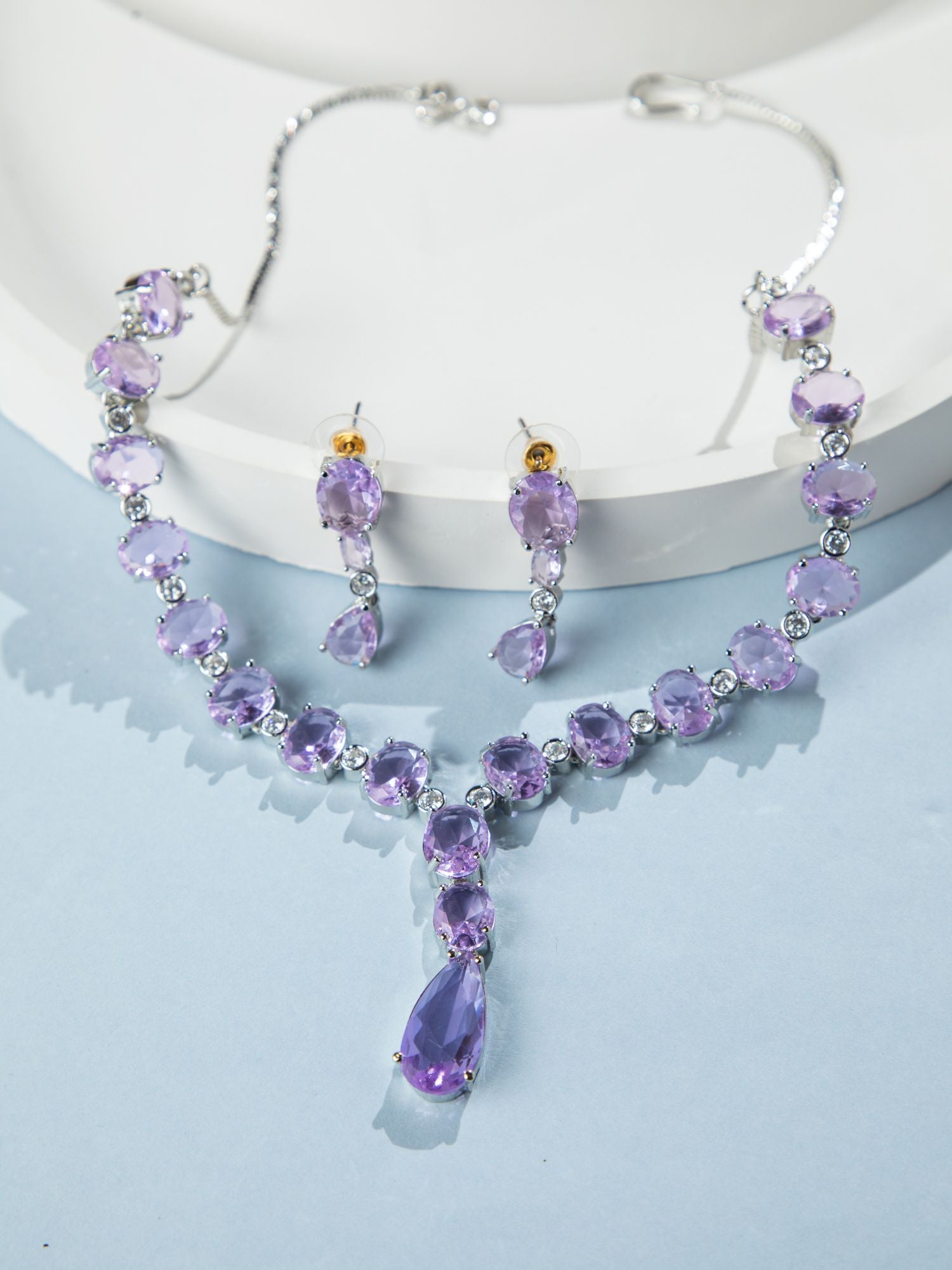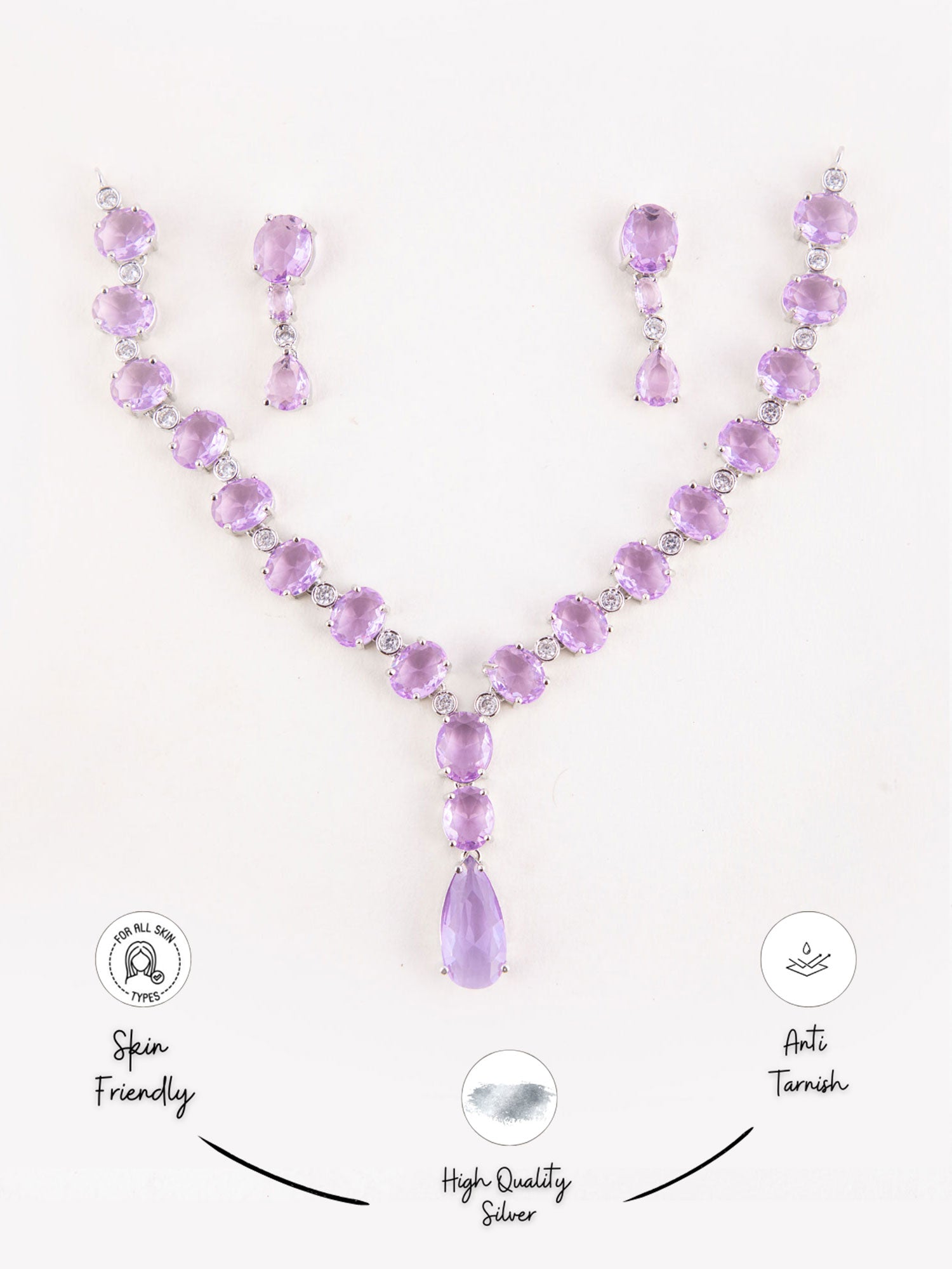 Rhodium Plated Purple American Diamond Necklace