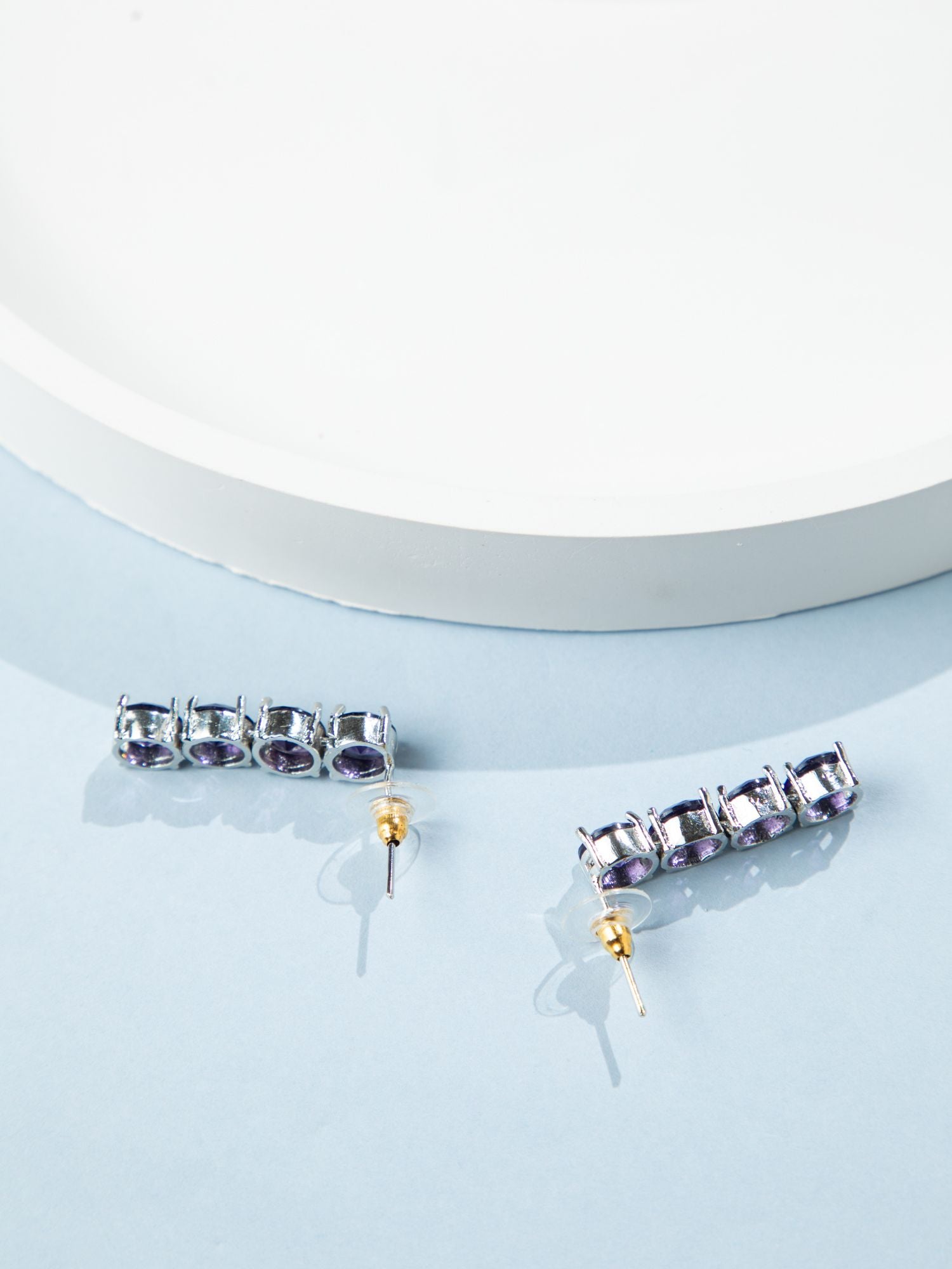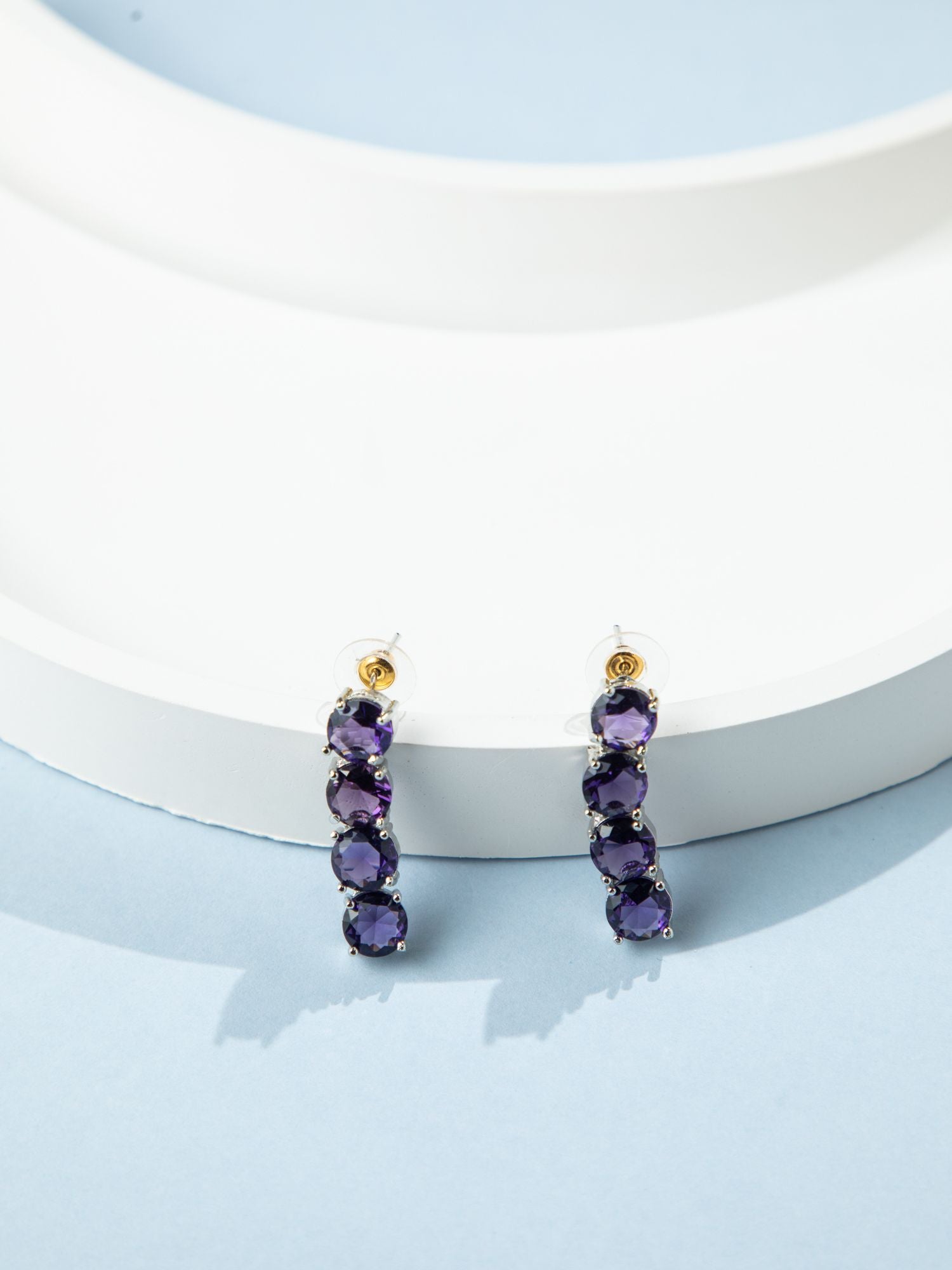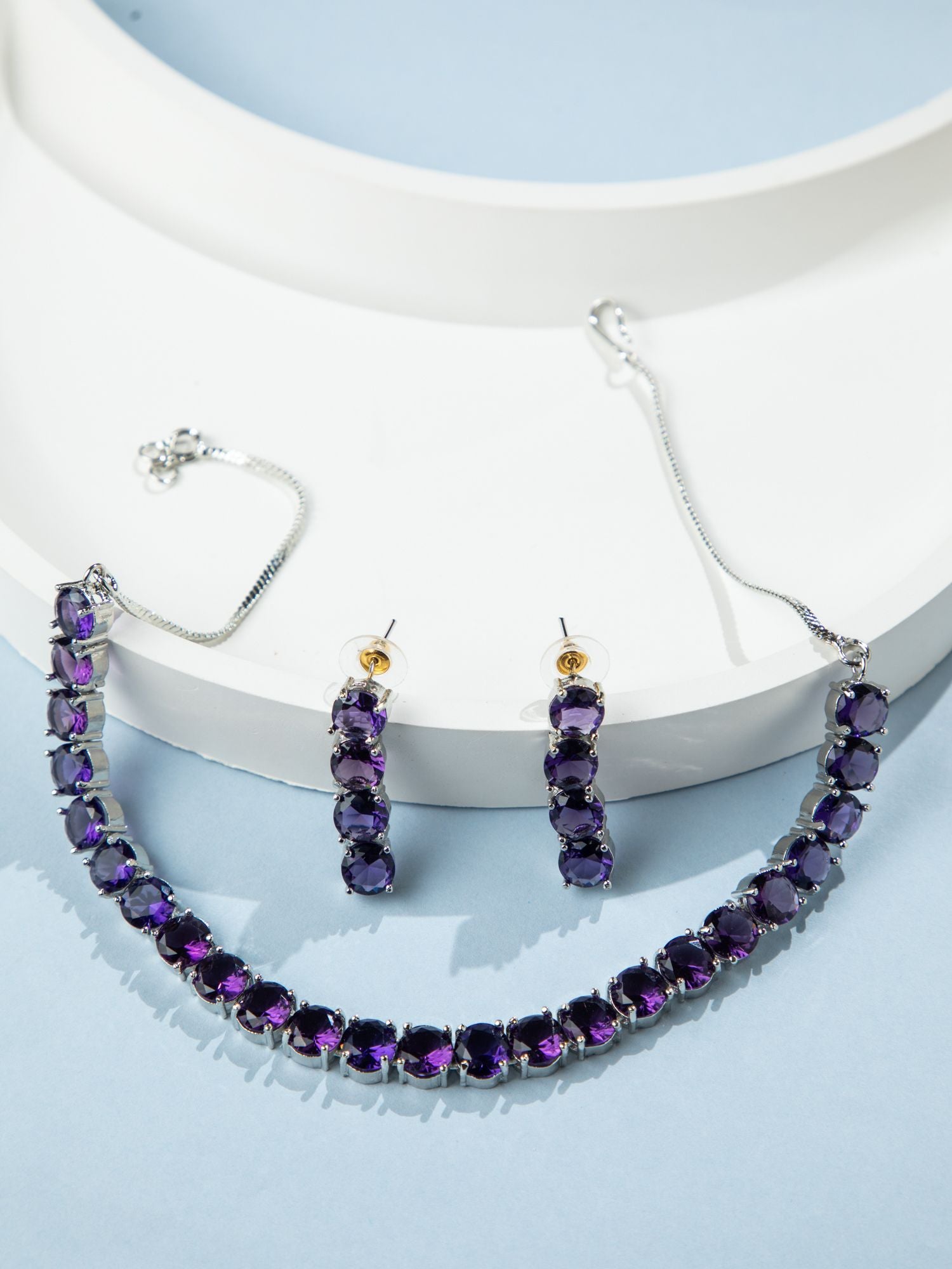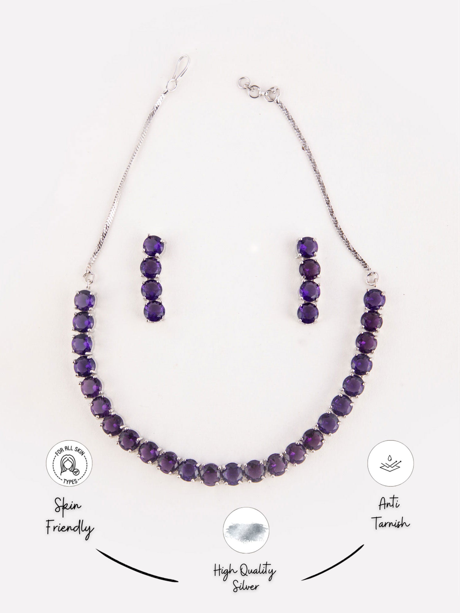 Rhodium Plated Purple American Diamond Necklace and Earrings Set
