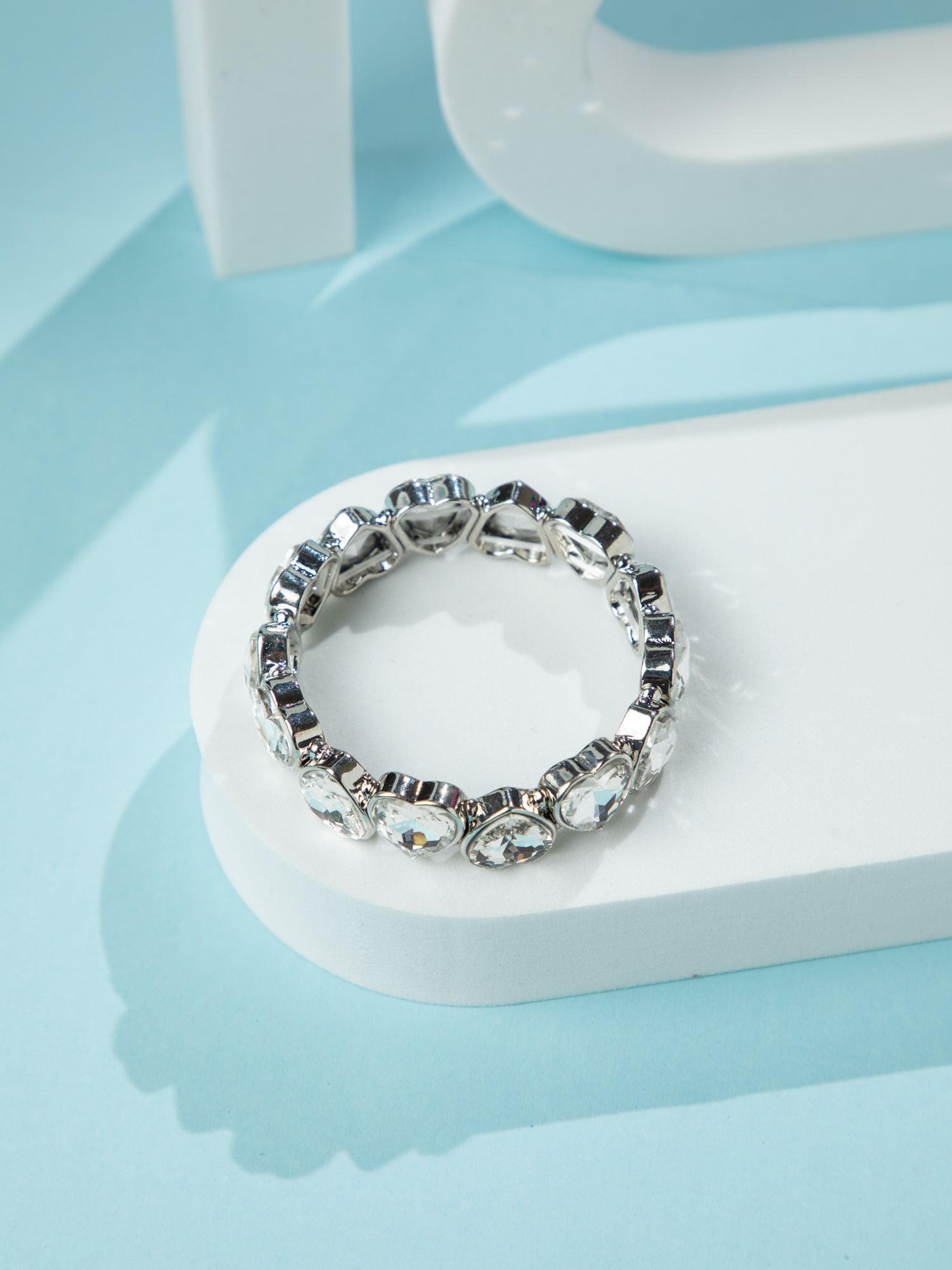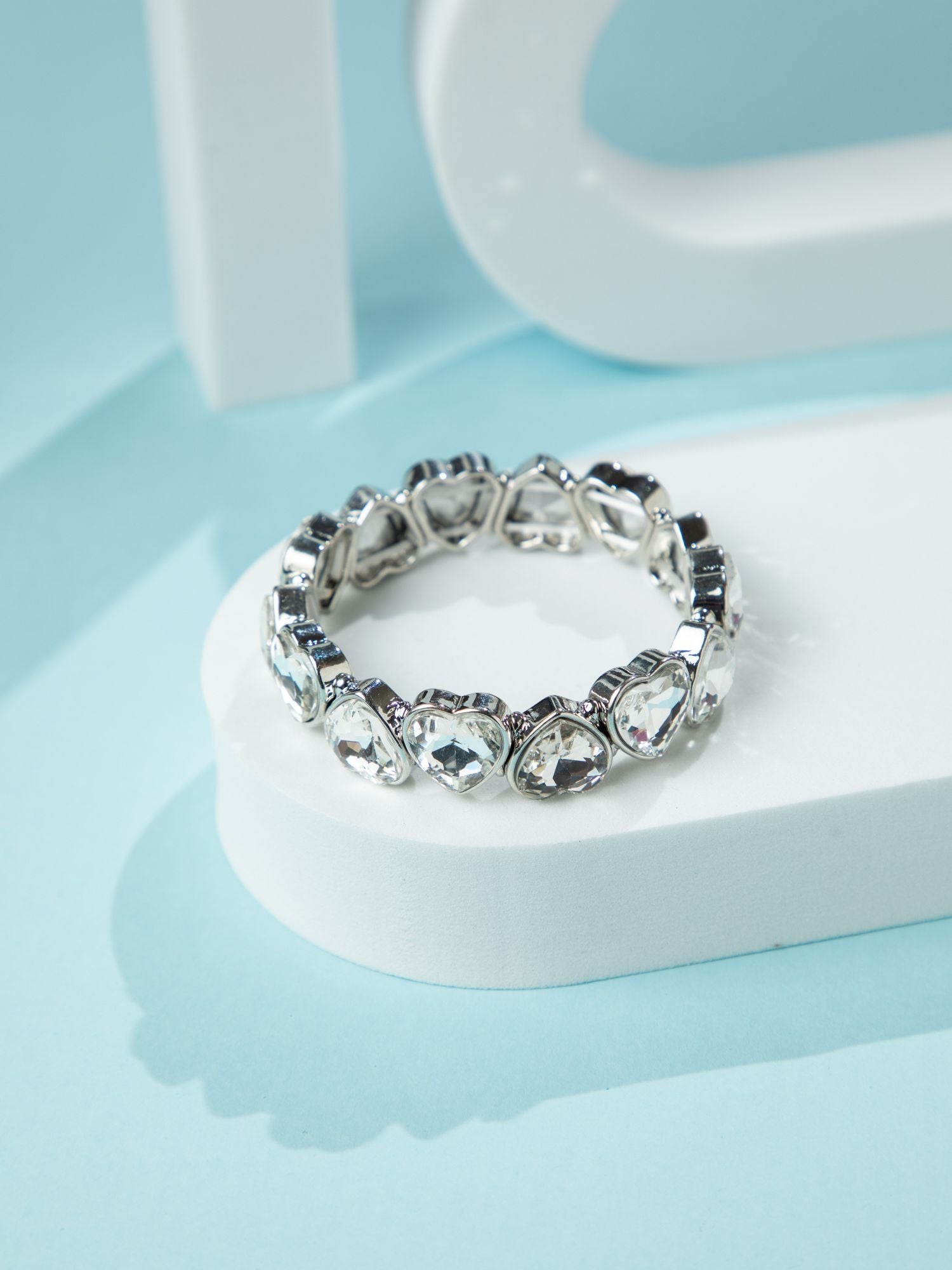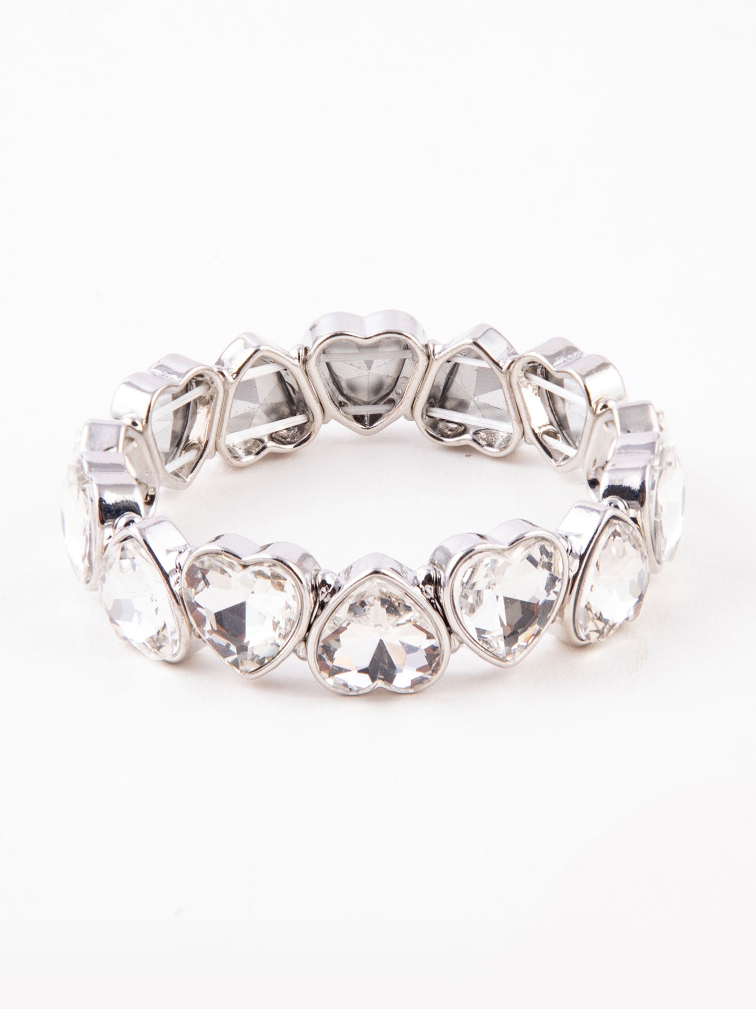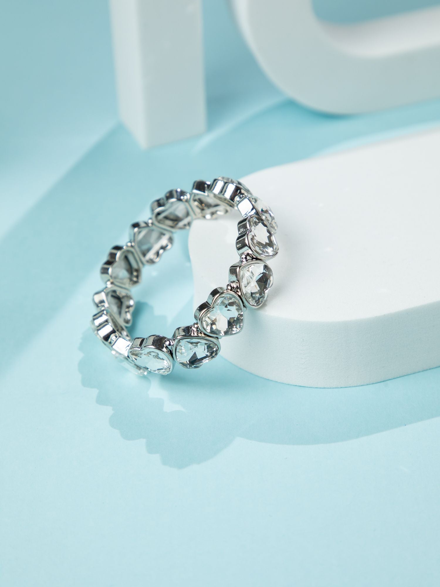 Rhodium Plated Silver Bracelet with Heart Shaped White Stones