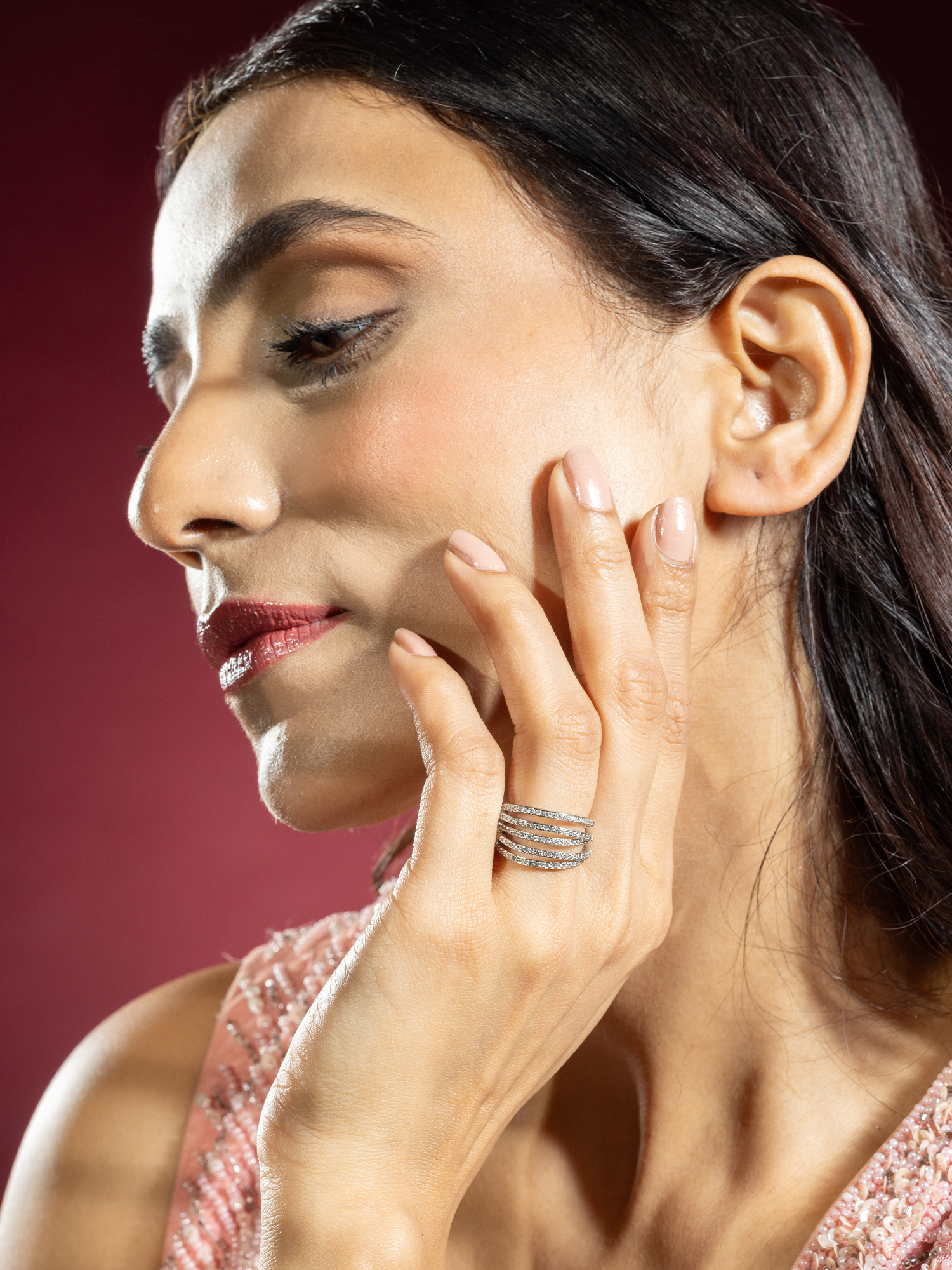 Add a touch of glamour to any outfit by wearing this exquisite ring as a statement piece. Whether paired with casual attire or formal wear, it effortlessly elevates your look with its sparkling allure.
