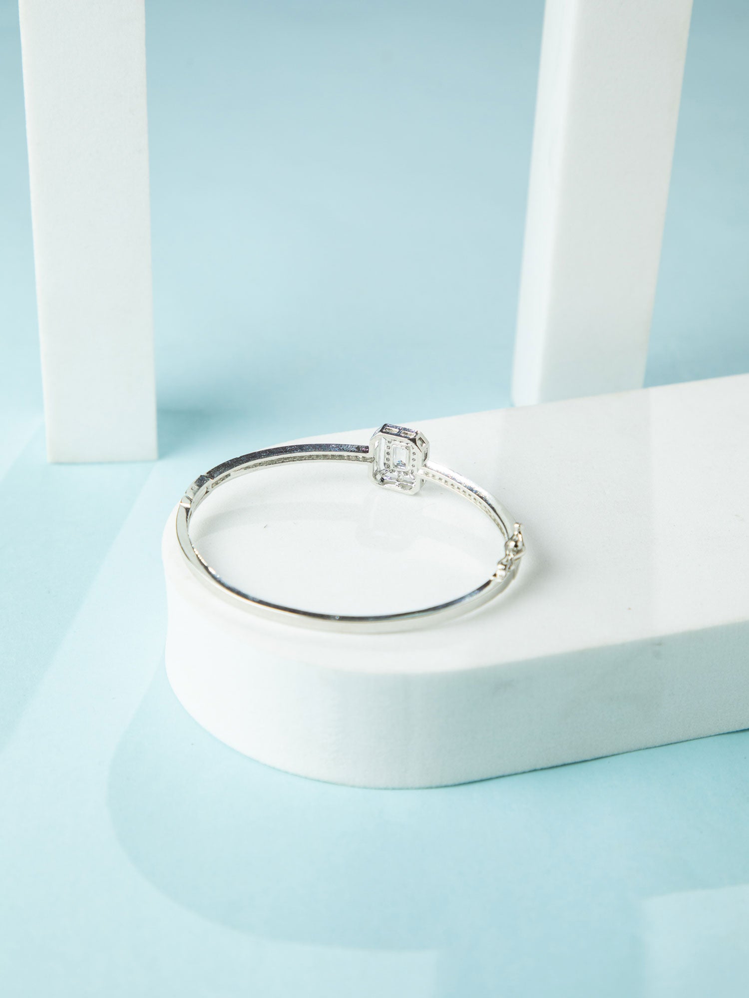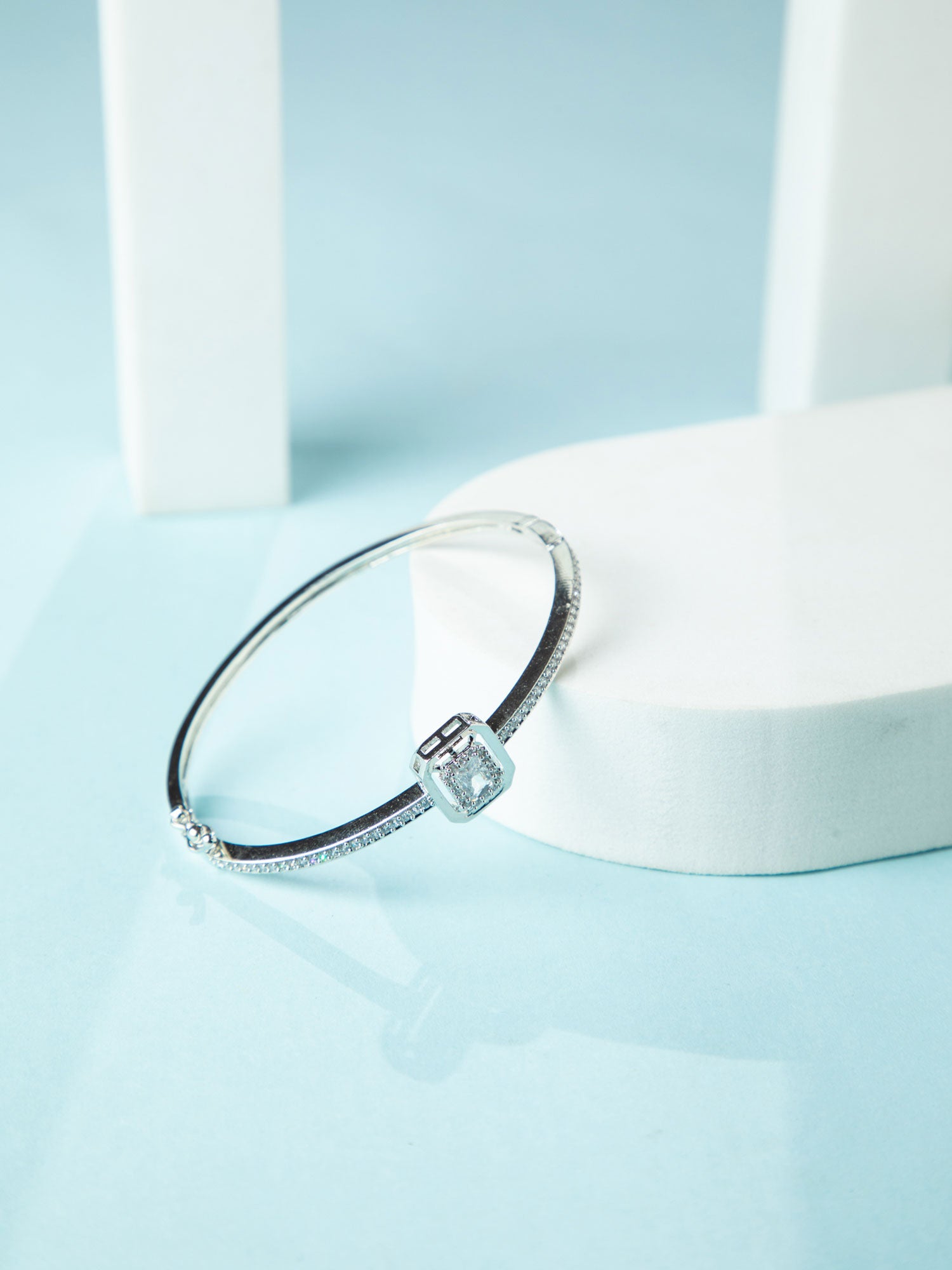 Rhodium Plated White American Diamond Stones Bracelet