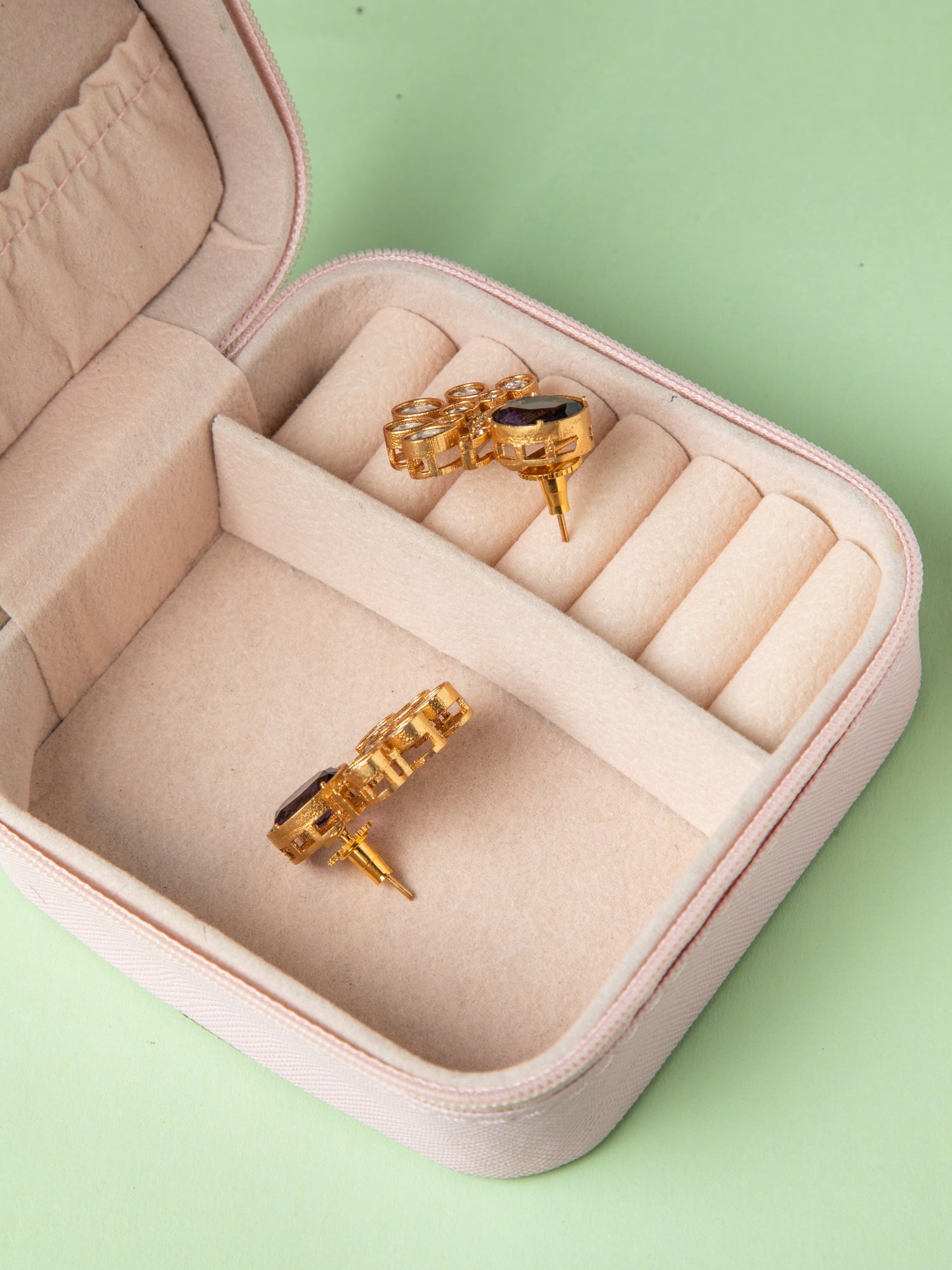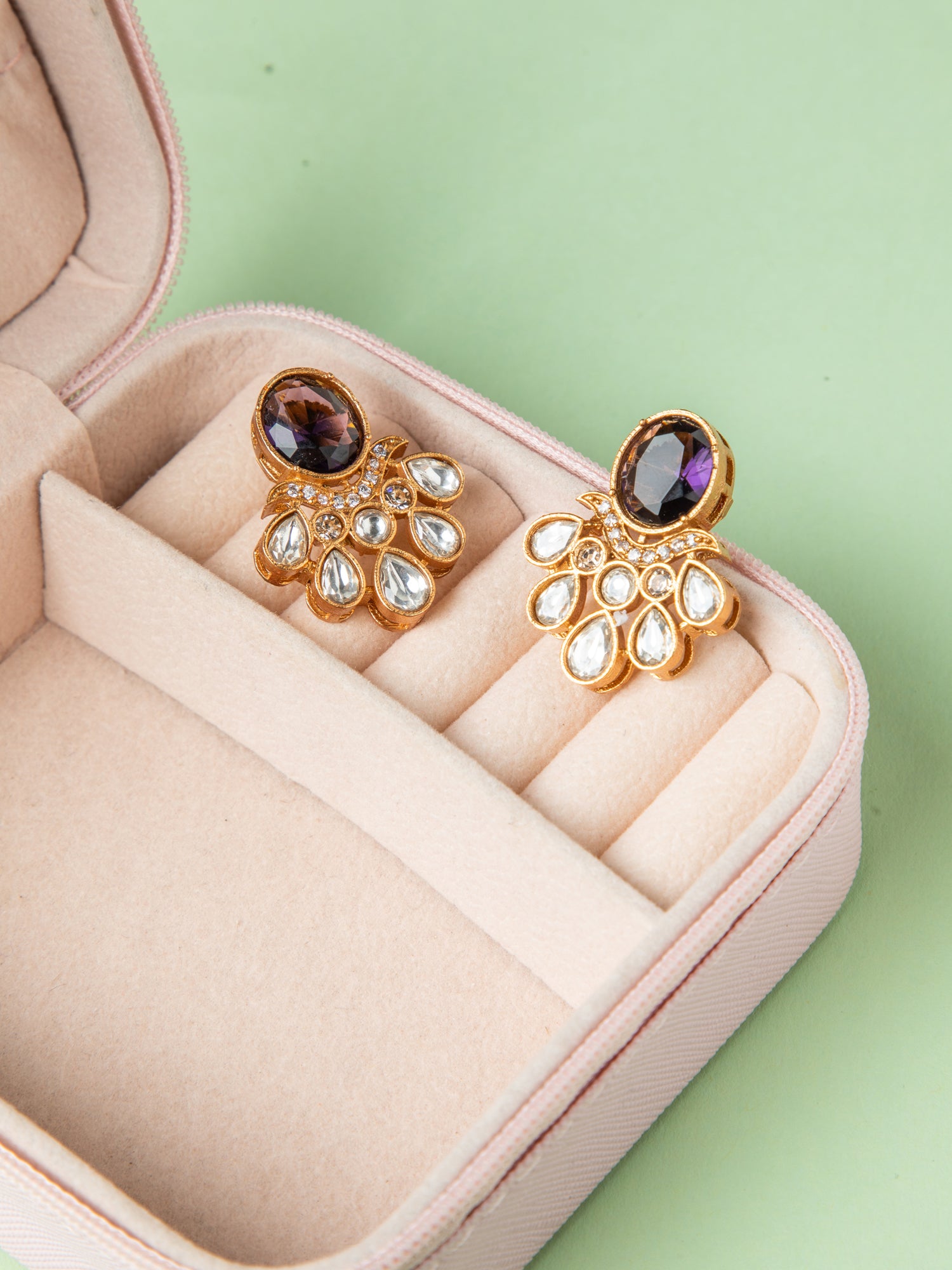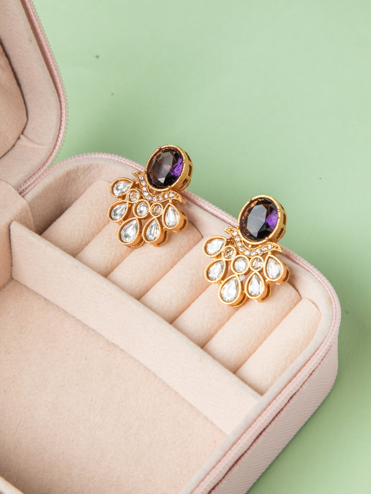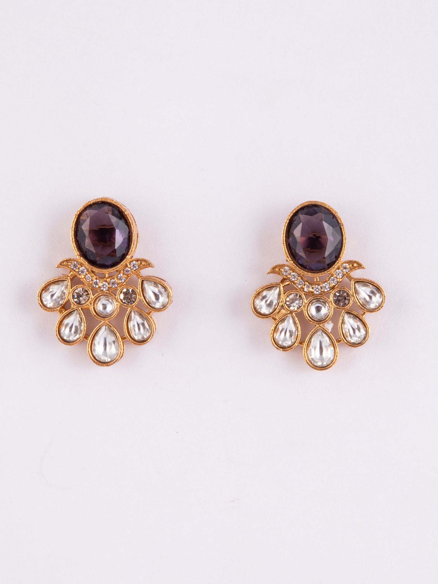 Royal Bloom Kundan Purple Stone Earrings