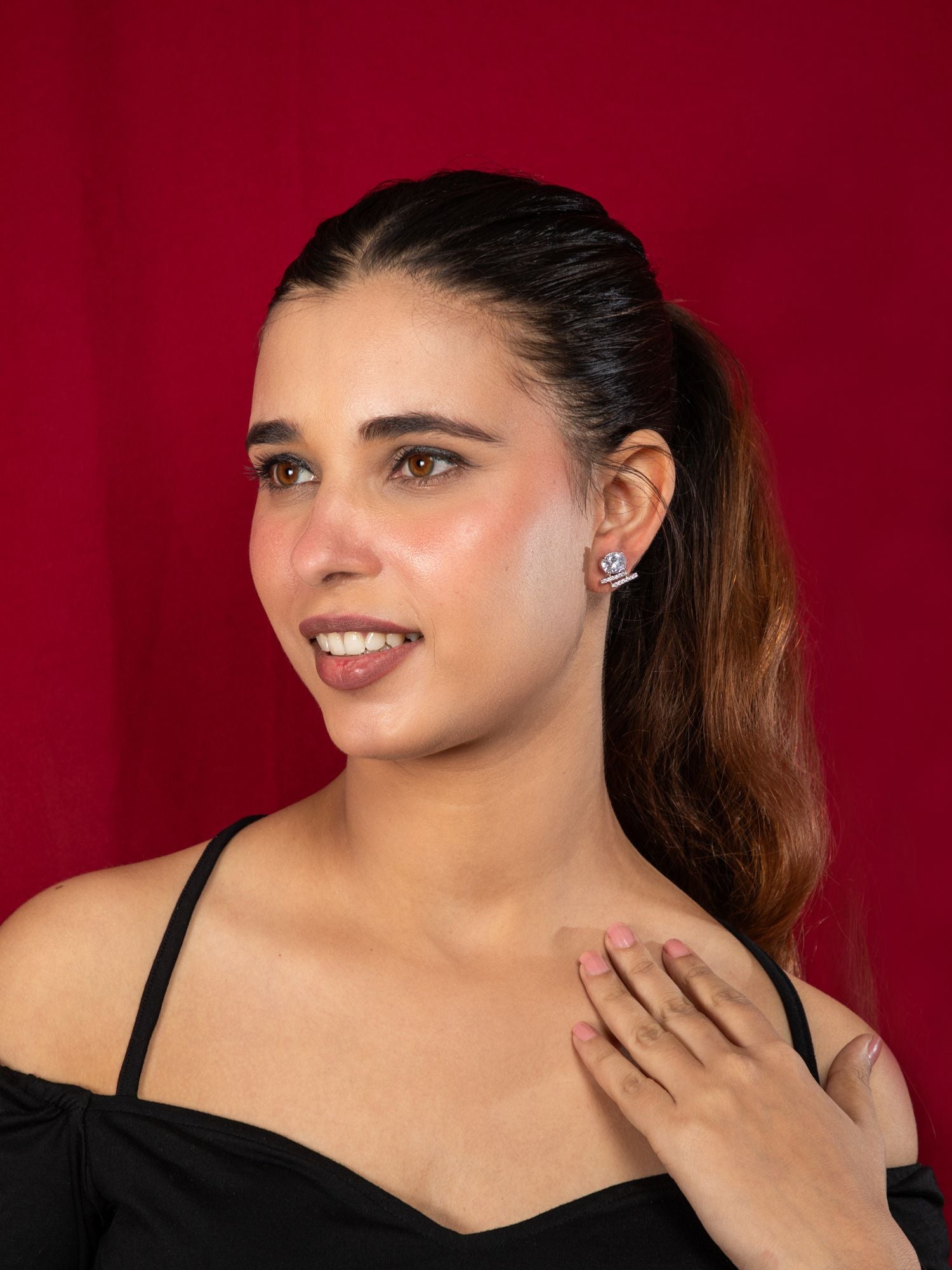 Silver Plated American Diamond Stud Earring