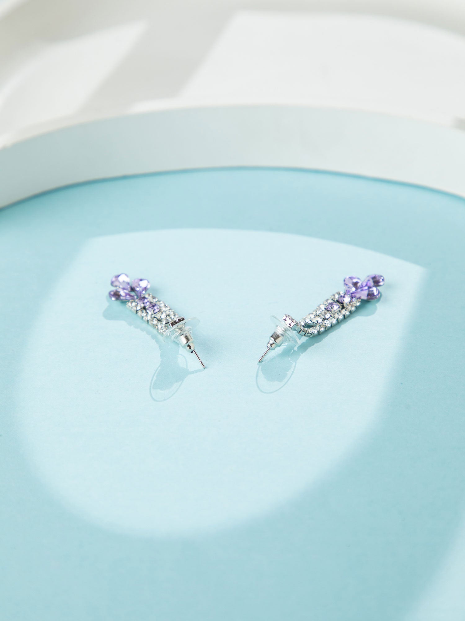 Silver Plated Necklace Set with White and Purple American Diamond Stones and Matching Earrings