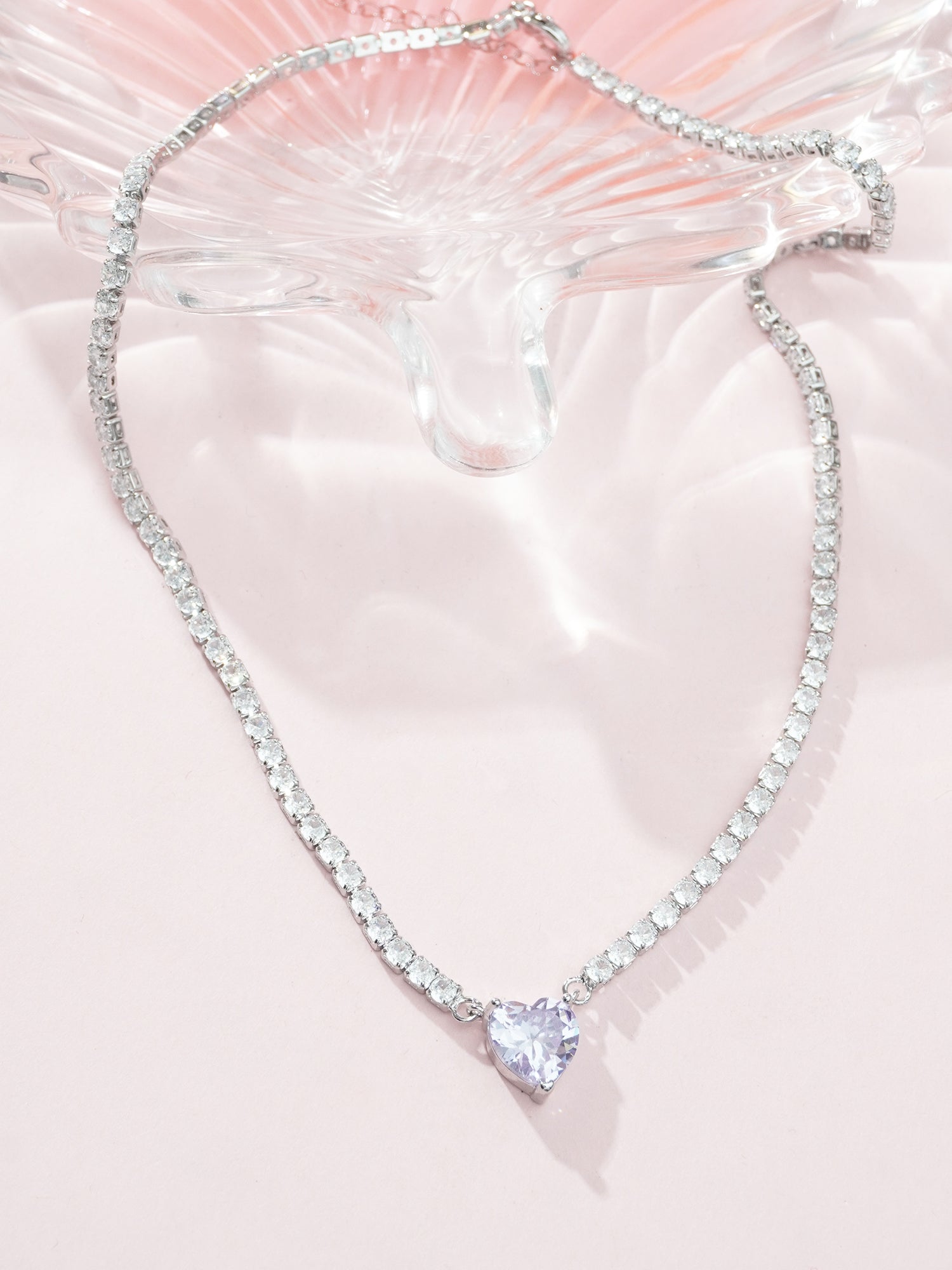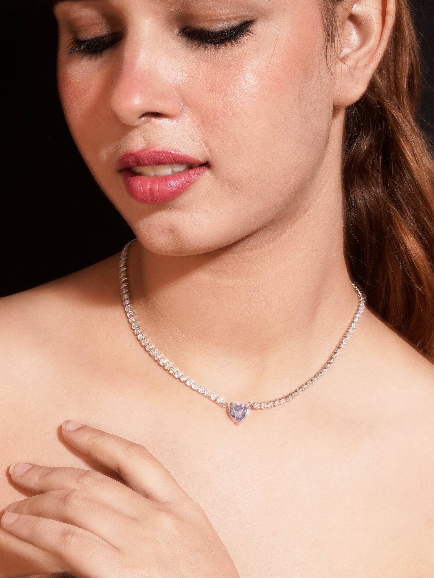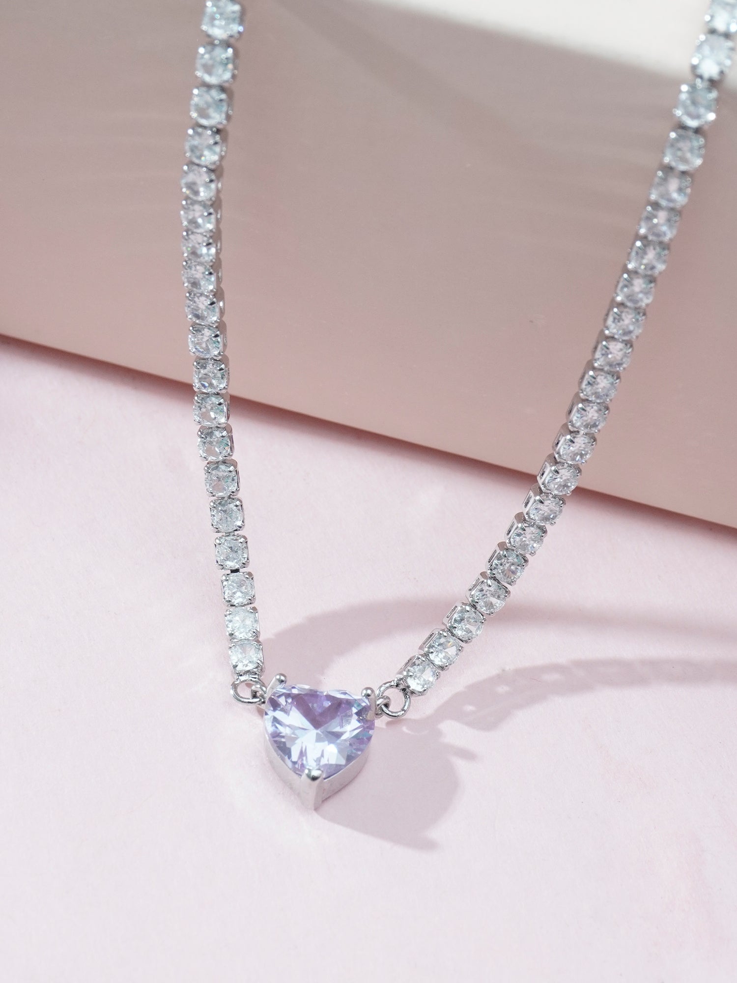 Silver Plated Purple and White AD Zircon Pendant Chain