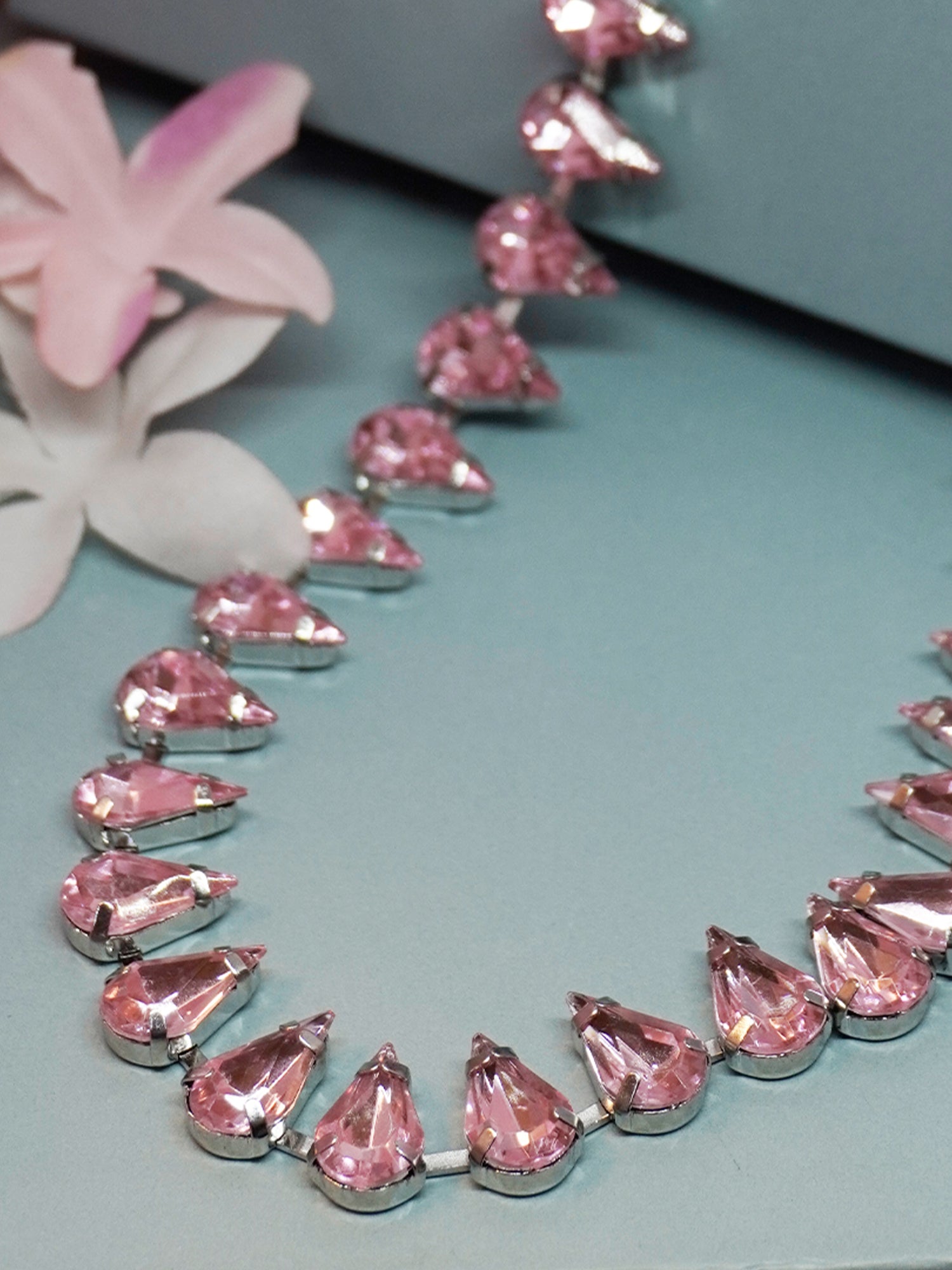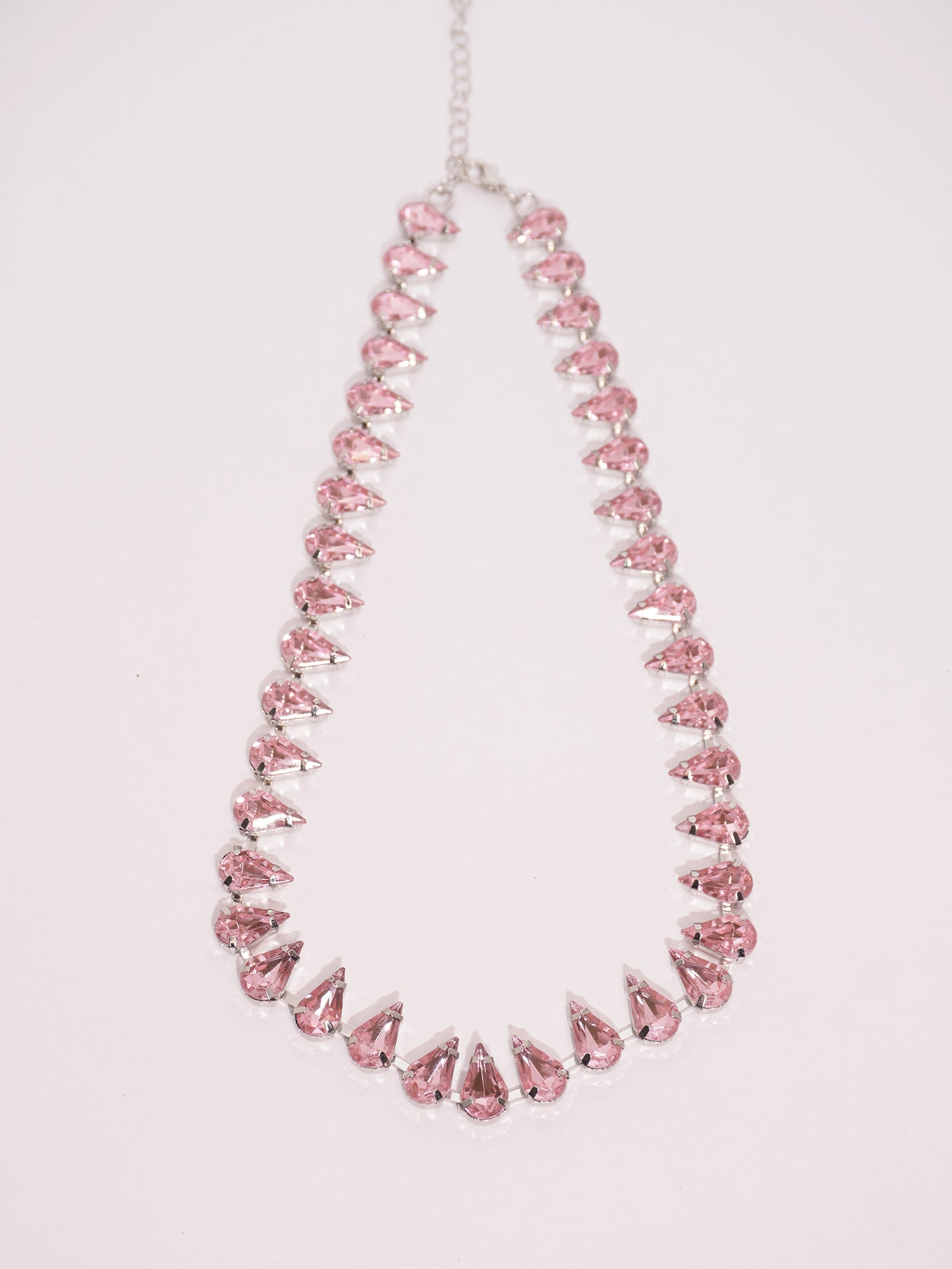 Silver Plated Rose Pink Zircon Crystal Choker Necklace