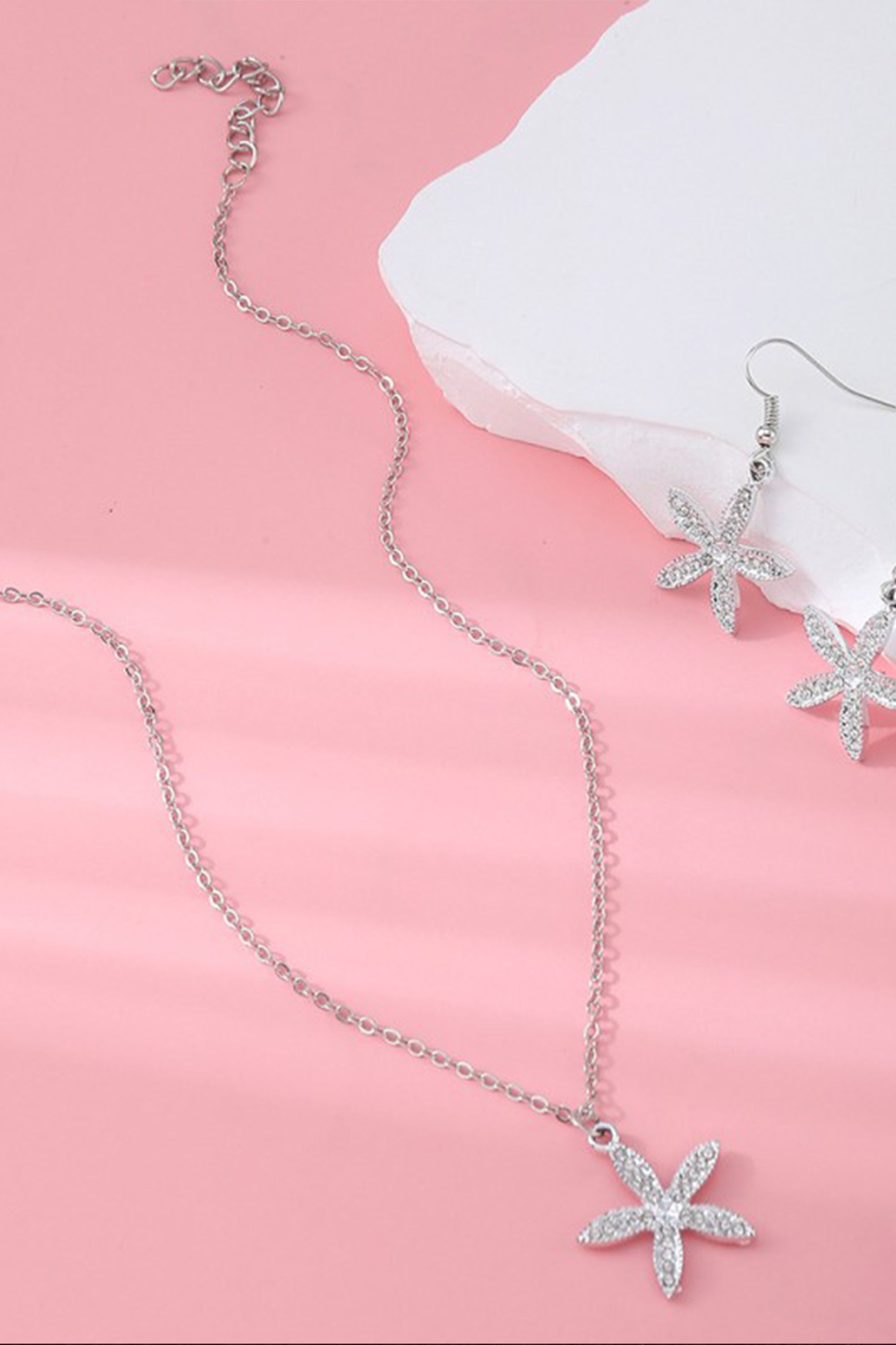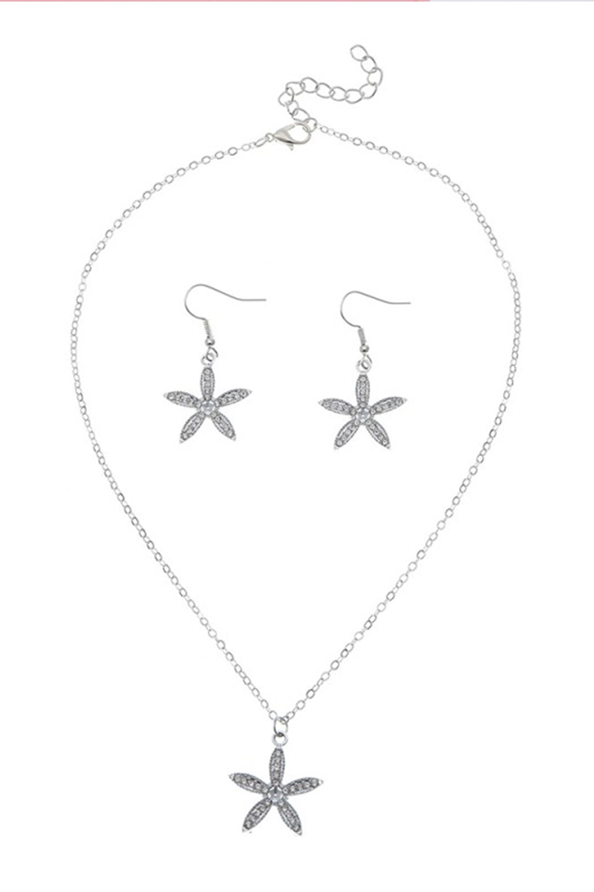 Niscka brings you a wide collection of fancy and traditional jewelry. This is a trendy silver rhodium-plated chain and earring set. The pendant is in a beautiful starfish style which looks very classy and elegant. This lightweight chain set is perfect for casual wear or outing. Avoid direct contact with perfume, sweat, or any other liquid or gaseous, alcoholic, or aerosol items.