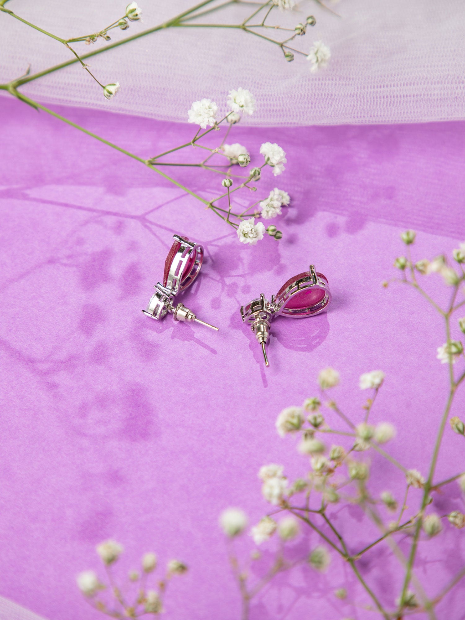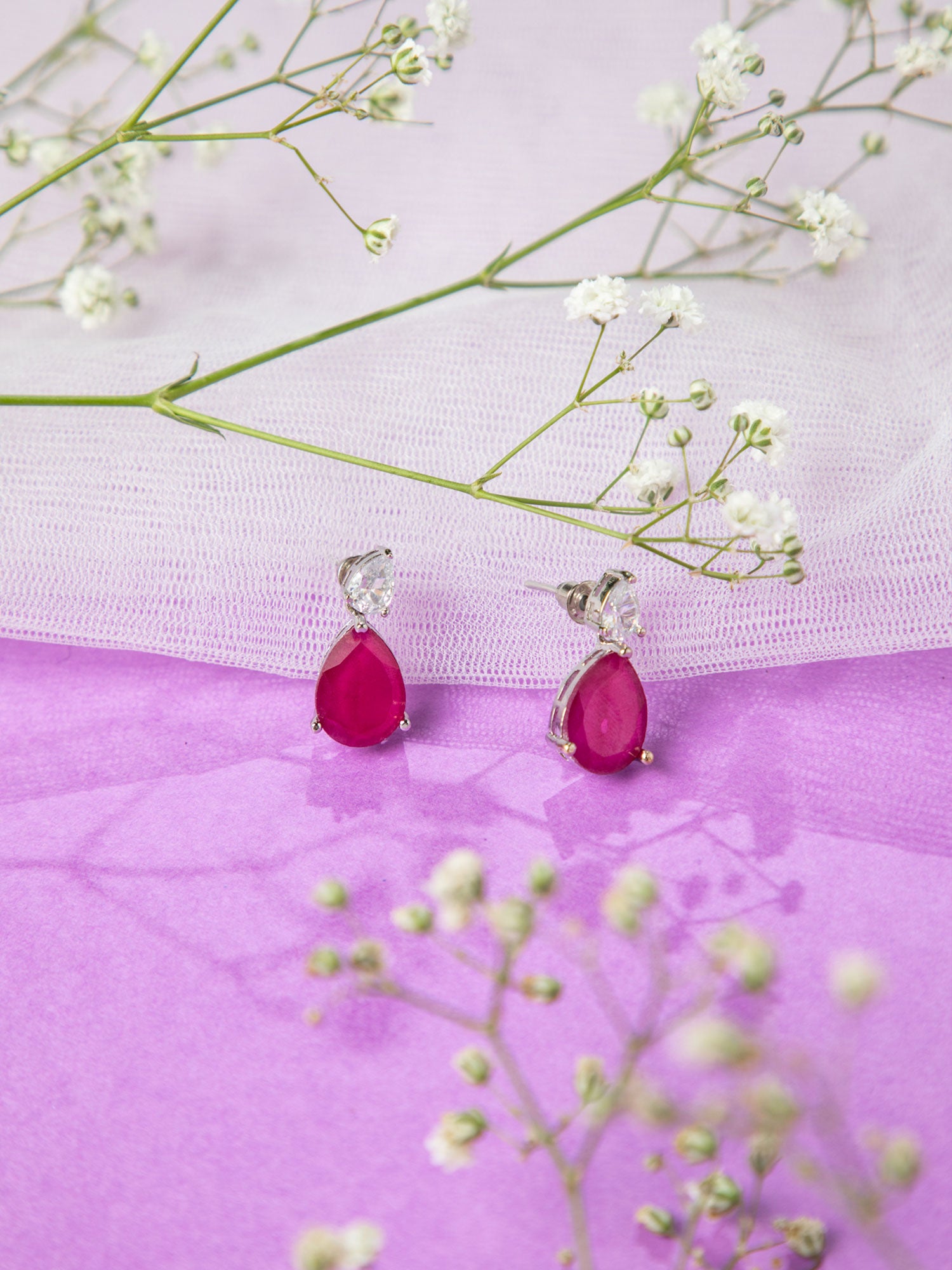 Handcrafted by local artisans, this rhodium-plated necklace set features stunning water drop Rani pink and white AD stones. The matching earrings, adorned with pink water drop stones, make it a must-have for parties, festive occasions, or special functions.