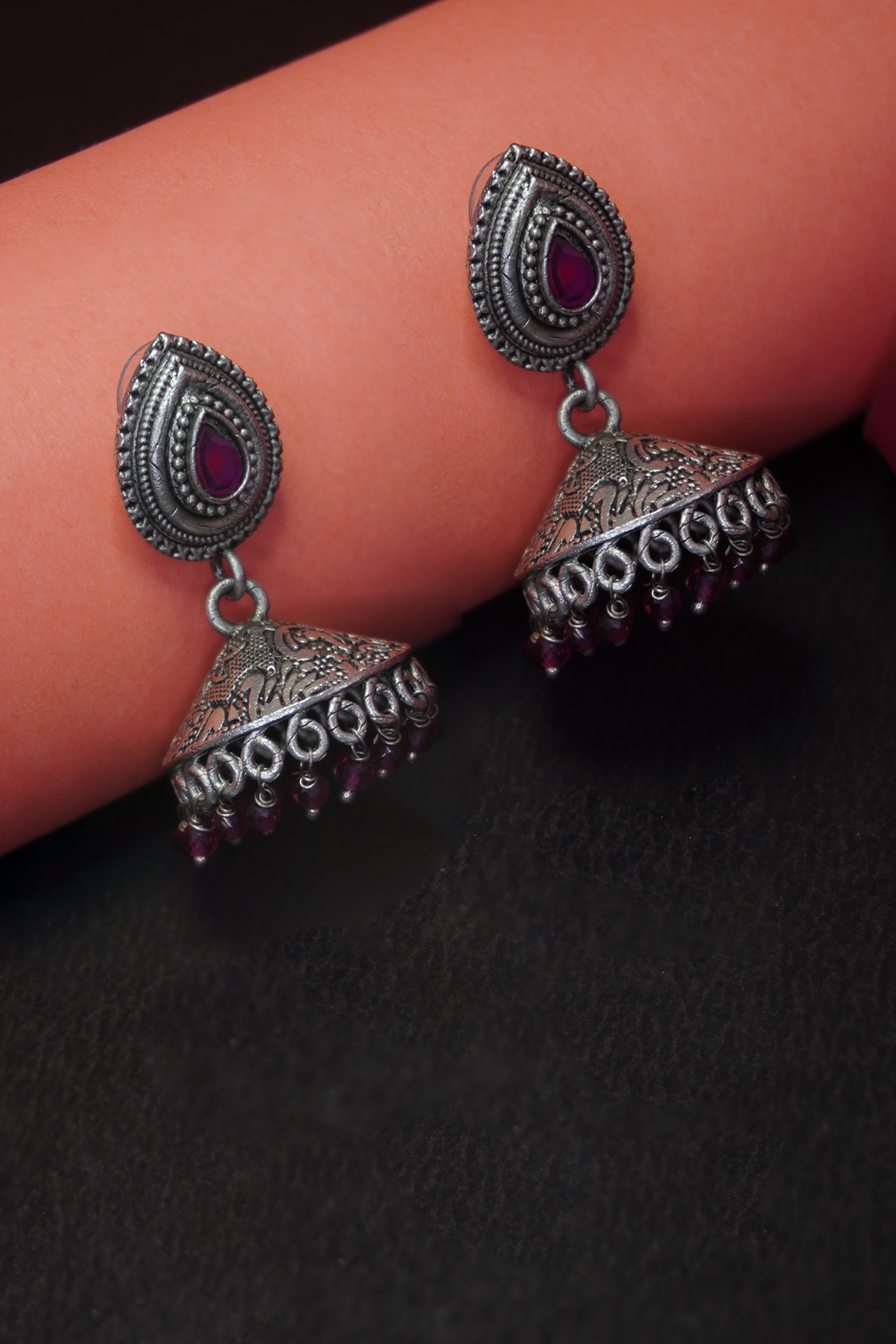 Traditional Pink Silver Oxidized Jhumka Earrings