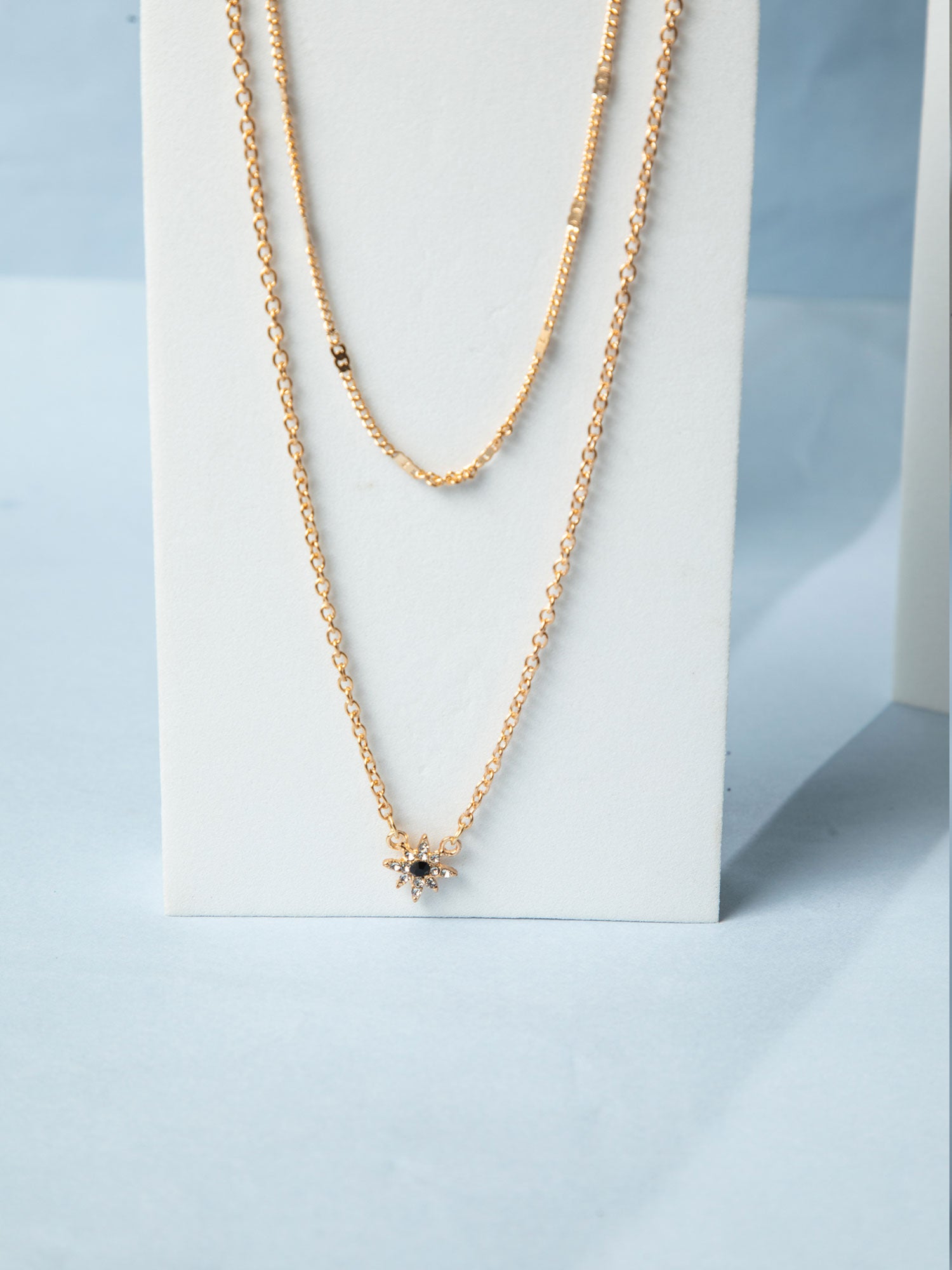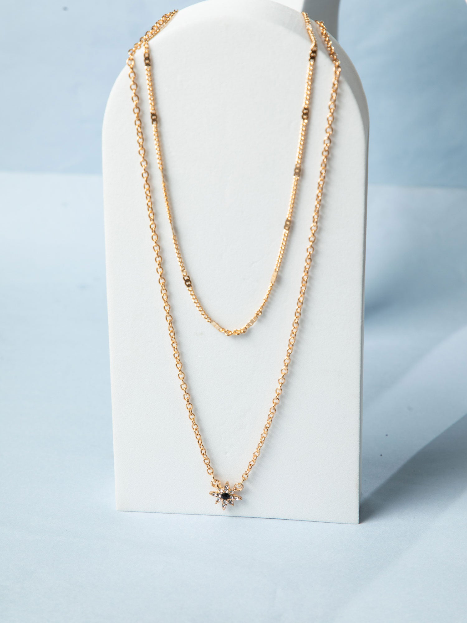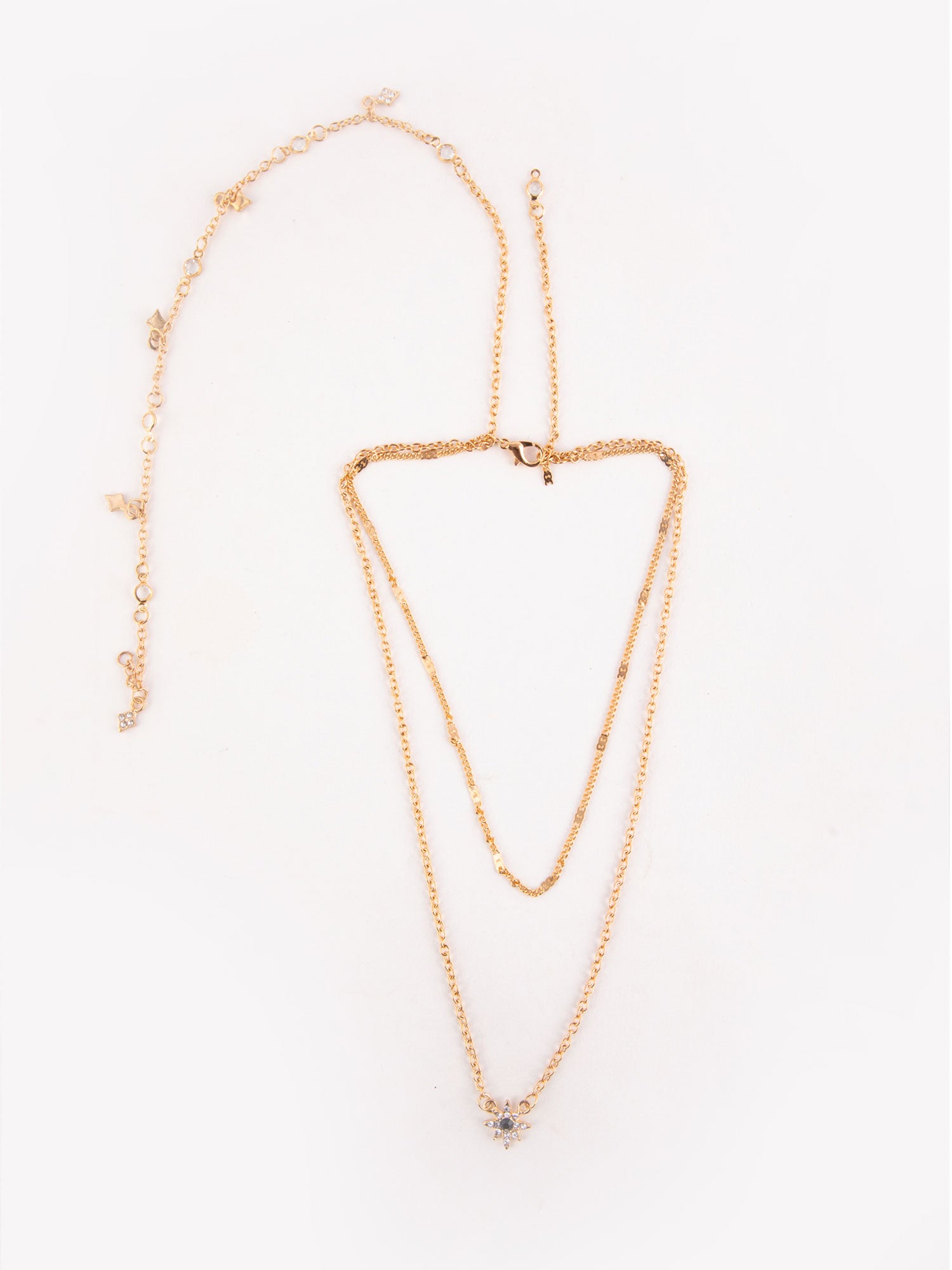 Triple Layered Gold Plated Necklace with White AD Stones