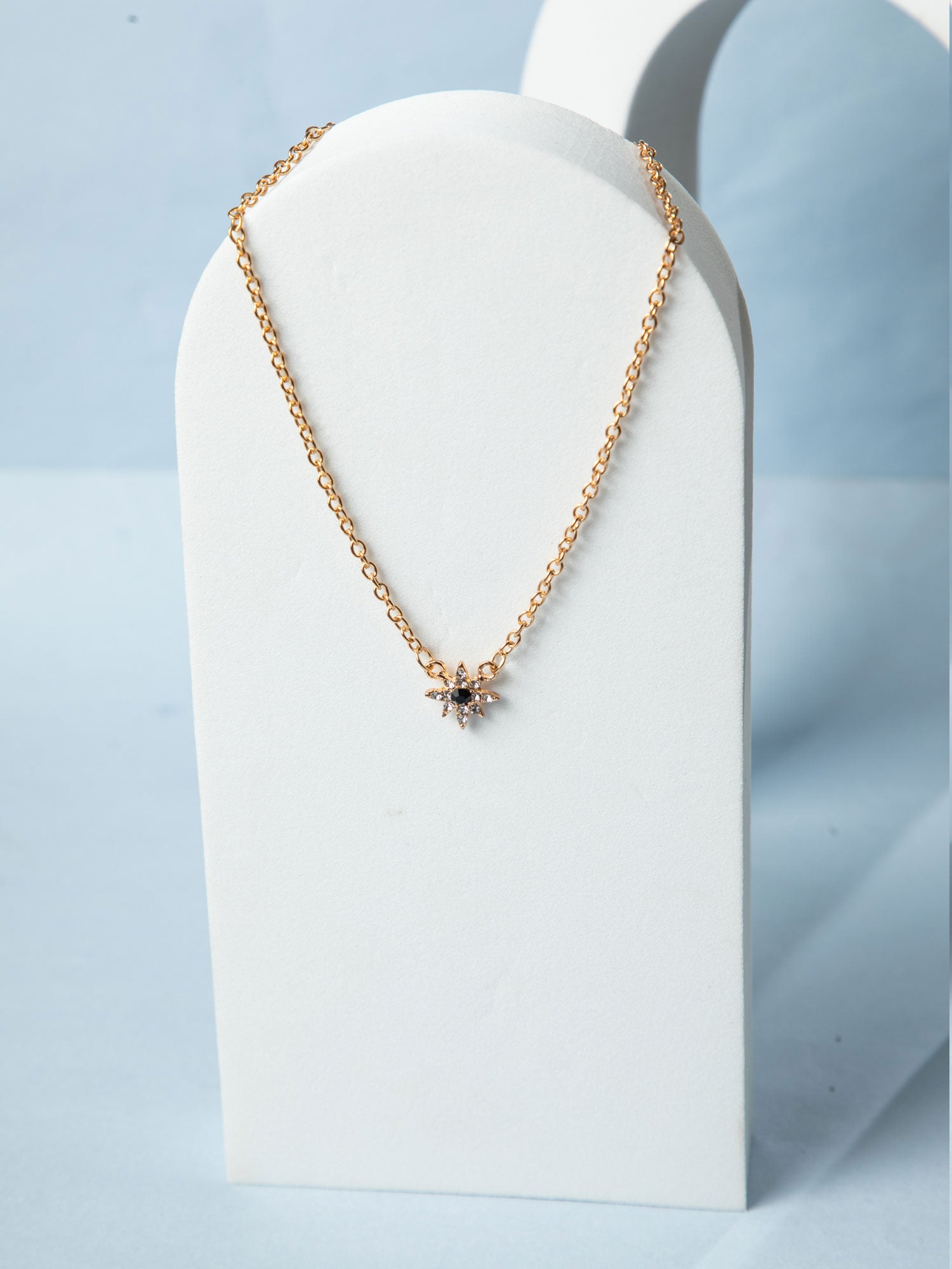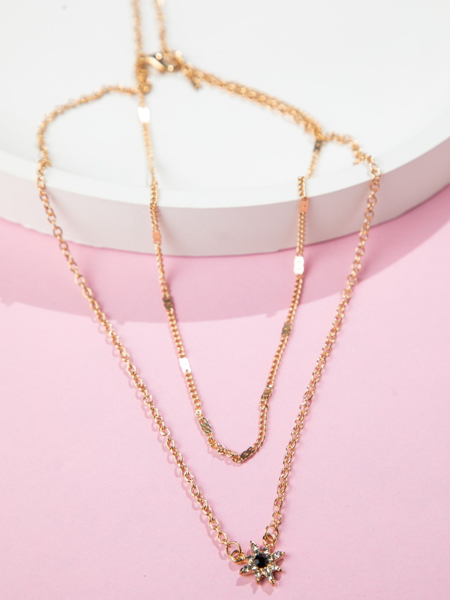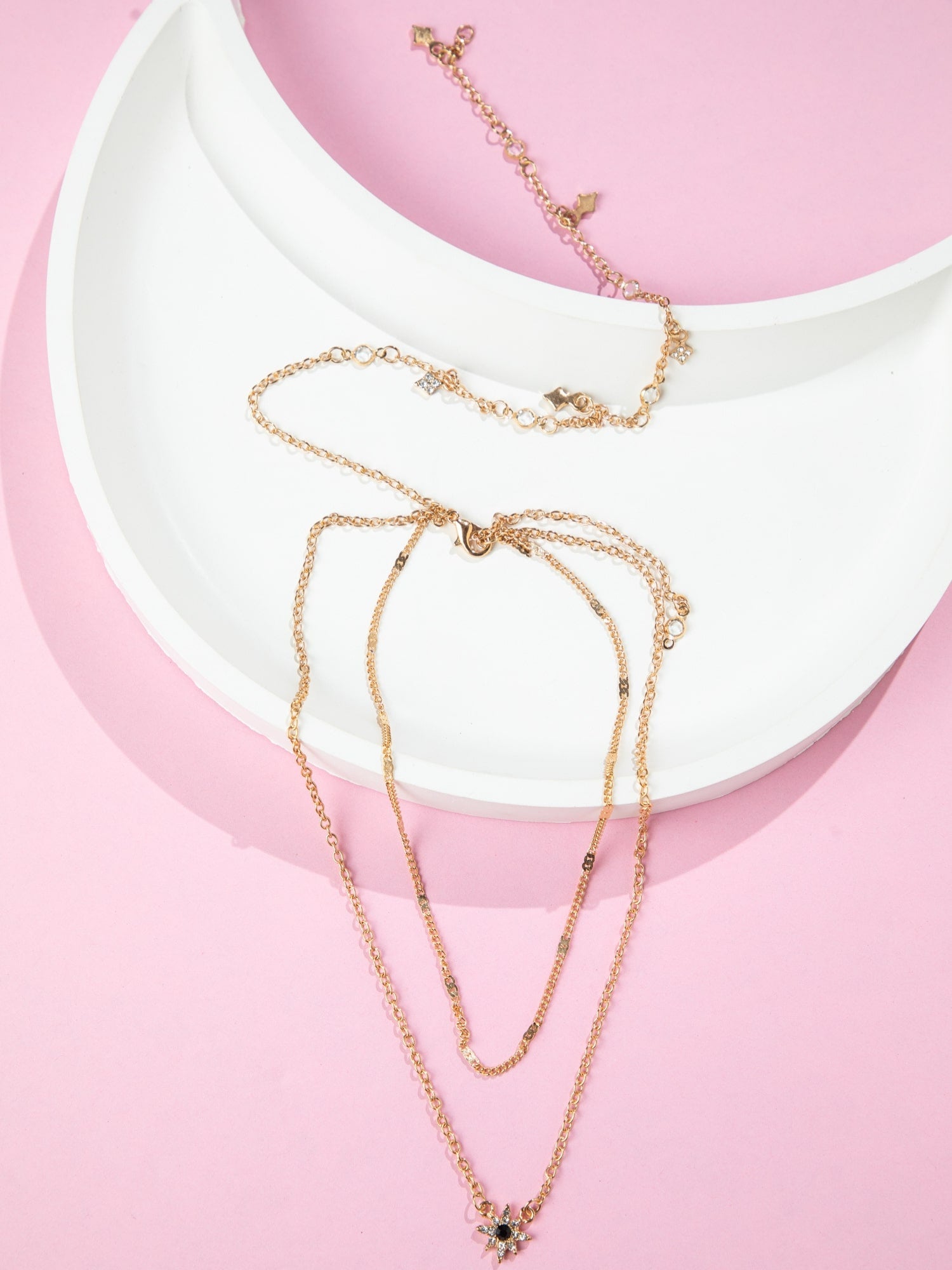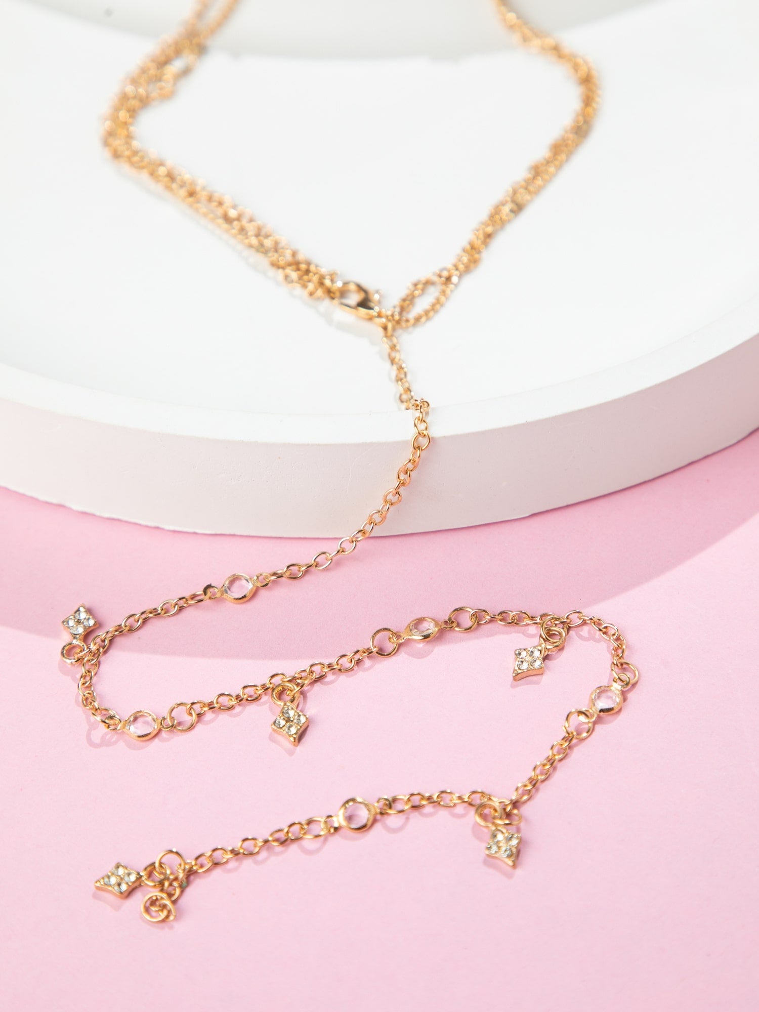 Triple Layered Gold Plated Necklace with White AD Stones