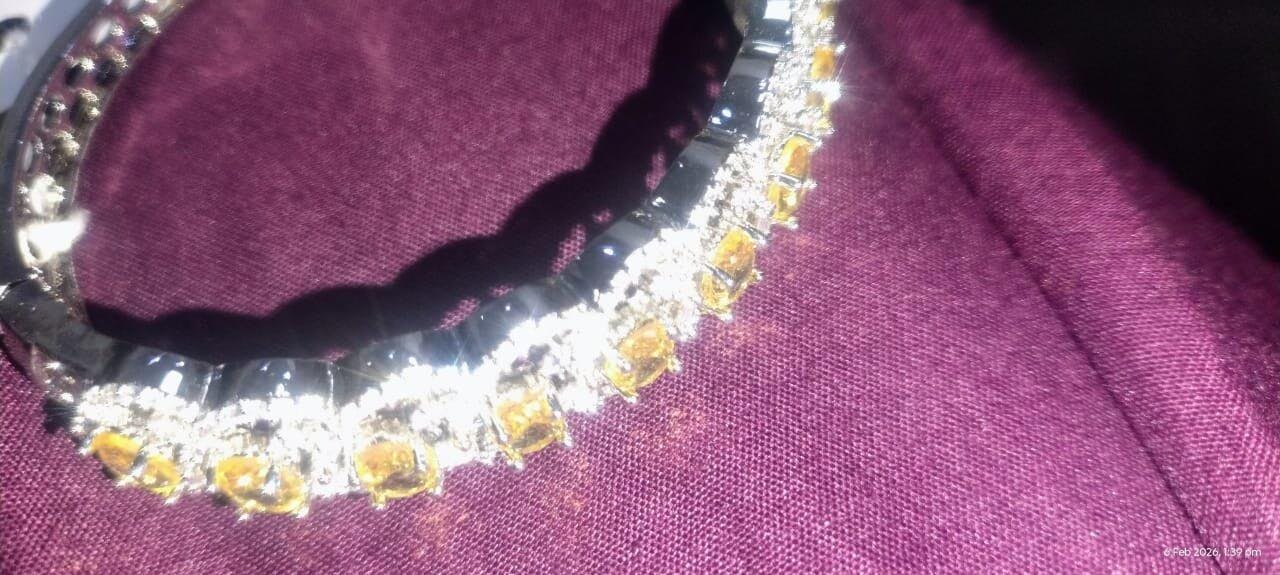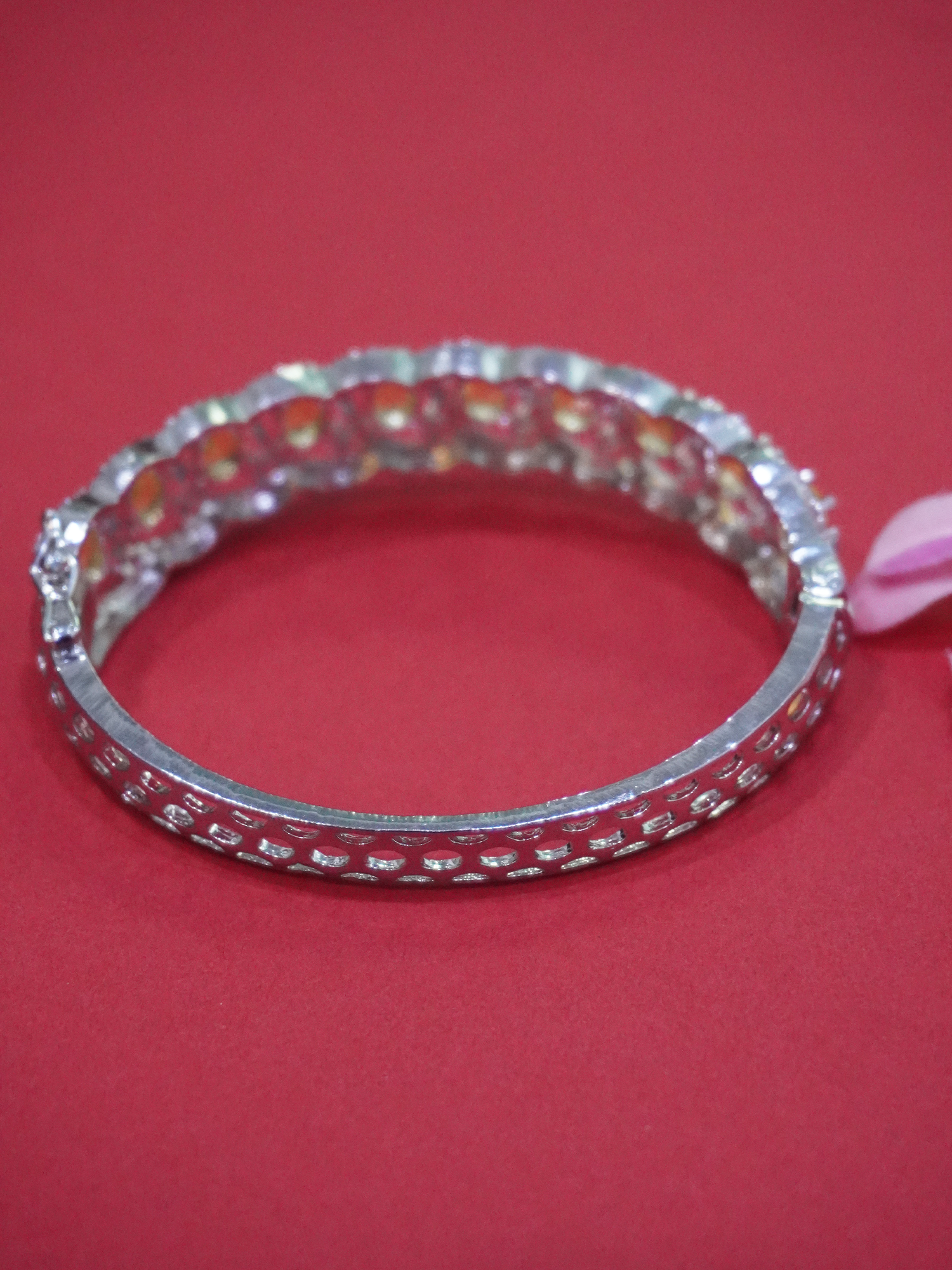 Introducing our exquisite Yellow and White American Diamond Bracelet, a stunning blend of elegance and charm. Adorned with oval-shaped yellow AD stones and smaller white AD stones, this bracelet exudes sophistication. Skillfully designed and handmade by local artisans, it embodies the latest trend in jewelry design. Perfect for functions and parties, this bracelet is both attractive and versatile, adding a touch of glamour to any ensemble. With anti-tarnish and anti-allergic properties, it ensures durability and comfort for everyday wear.